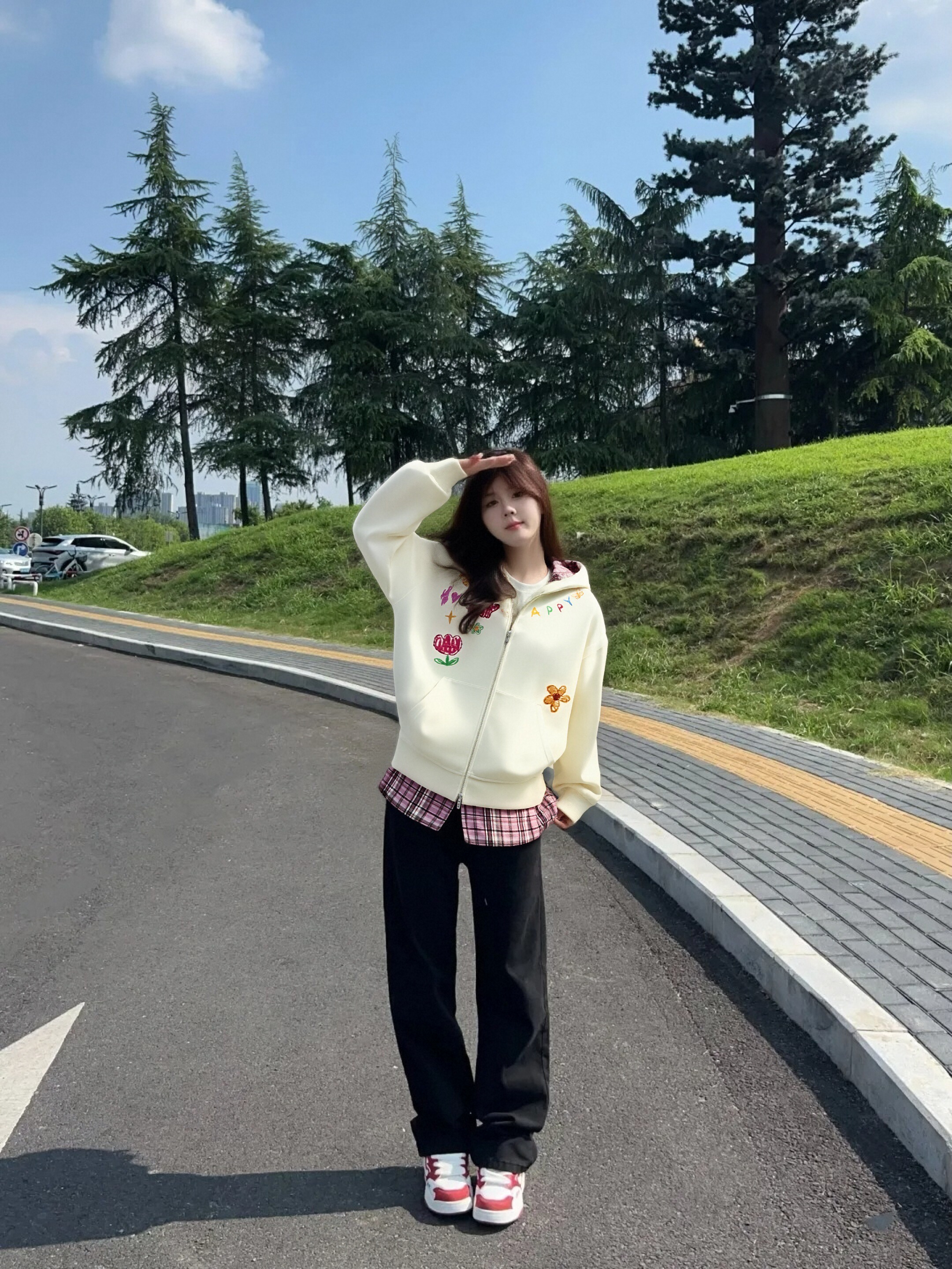 今天穿这件出门被问爆了!奶黄色太温柔啦,假两件格纹拼接超有层次感,彩色涂鸦童趣满分~面料软乎乎的很舒服,初秋单穿、冬天叠穿都好看,小个子穿也完全不压身!