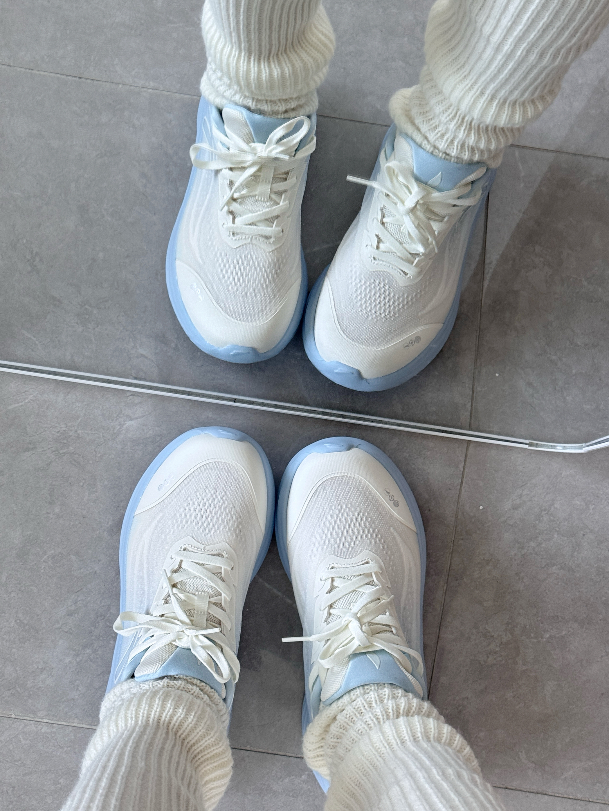 现在的运动鞋颜值都这么高了吗☺️ 白蓝配色好清新干净呀~ 上脚软乎乎的好舒服! 很轻盈轻便 走一天也不累! 太适合日常跑步运动户外穿啦✌️