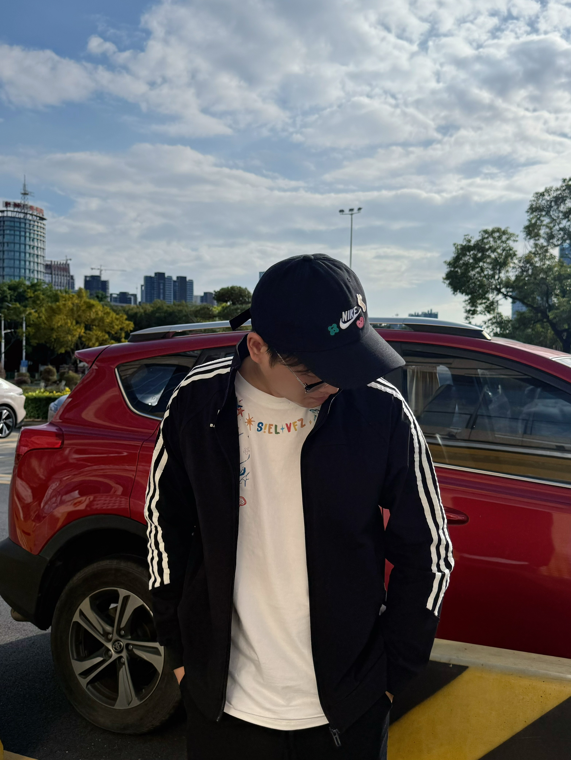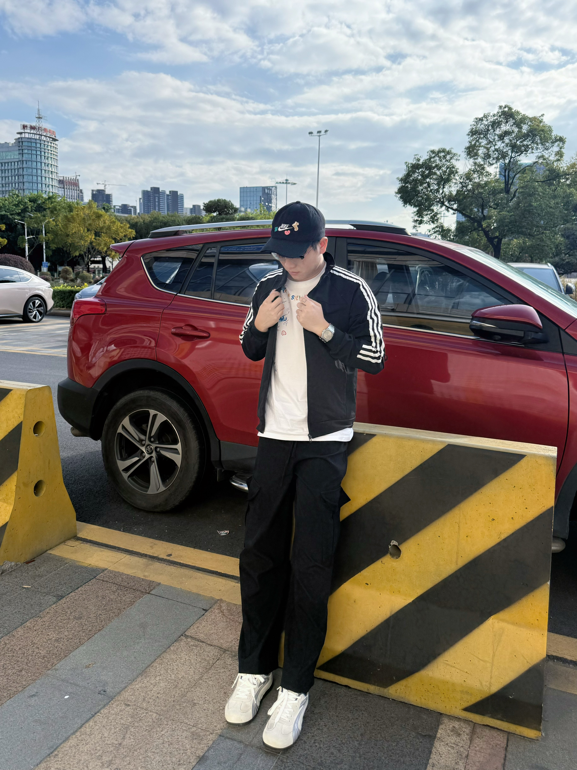 就喜欢在秋冬季里穿松弛感的穿搭,黑色条纹外套搭配着简单白T内搭,再配上这顶棒球帽,简约的风格起来,也是帅的 配着简单的穿搭,在秋日里面简约的搭配,松弛感一下子己经出来,帽子也是搭配点晴之笔
