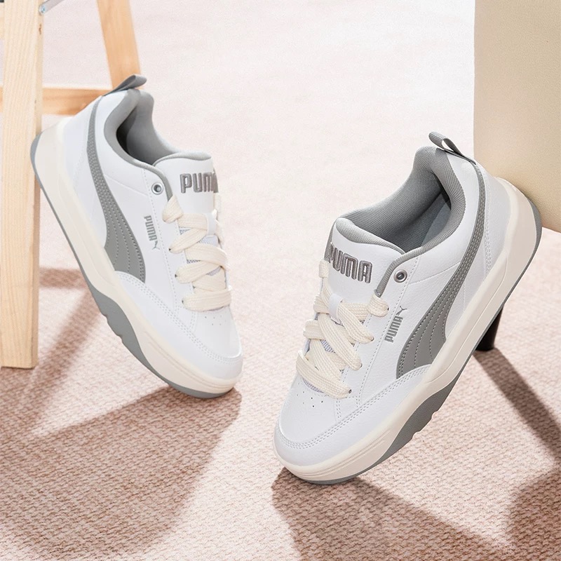 纠结了好久才入的这双Puma小白鞋,说点真实感受。 白灰配色很温柔,配牛仔裤、百褶裙都不违和,出门不用特意想搭配。 鞋型有点小宽,对脚宽的人很友好,不会挤得脚趾疼。 要说“缺点”,就是鞋底偏硬,刚开始穿逛街久了脚底板会有点酸,但穿了大概一周就踩开了,现在走路还挺舒服的。 另外,鞋身是皮革材质,容易沾指纹和小灰尘,不过也正因为这样,我养成了出门前擦一擦的习惯,鞋子一直看起来干干净净的✨