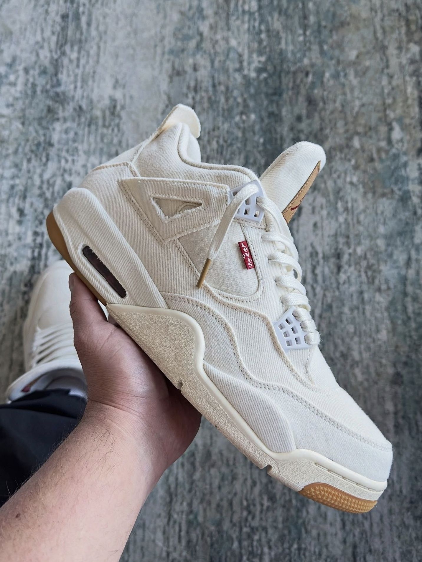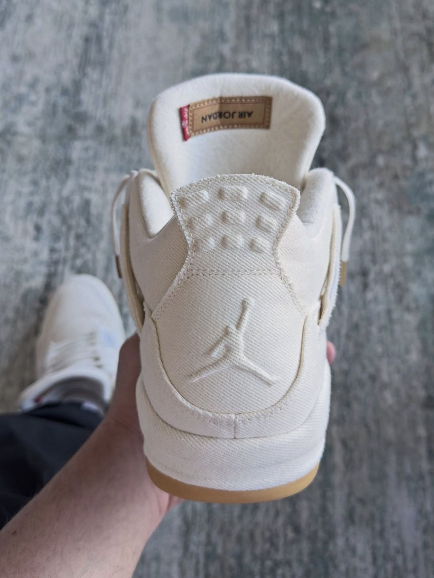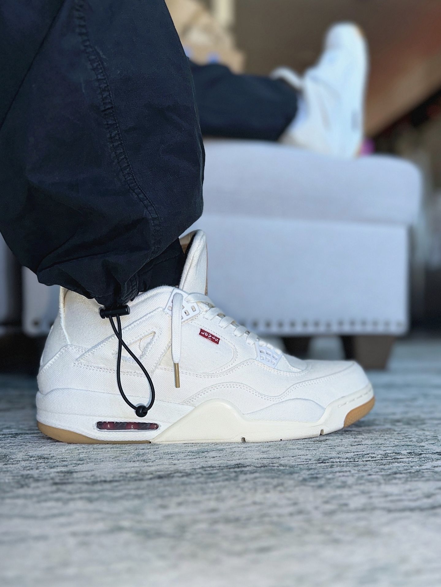 当丹宁的经典纹理遇上AJ4的硬朗线条,这双联名款在我心里就是“白色系”的天花板。 鞋身是质感超好的白色牛仔布,配上标志性的Levi's红色皮牌和双翼鞋带扣,把工装那股子粗犷劲儿处理得特别干净清爽。我最喜欢在春夏季节穿它,全掌Air缓震的脚感依旧舒适,搭配一条简单的浅蓝色水洗牛仔裤,上下呼应的牛仔元素让整体感特别强,出门逛街或者看展都显得很利落。 现在它是我打造Clean Fit风格的“利器”,...