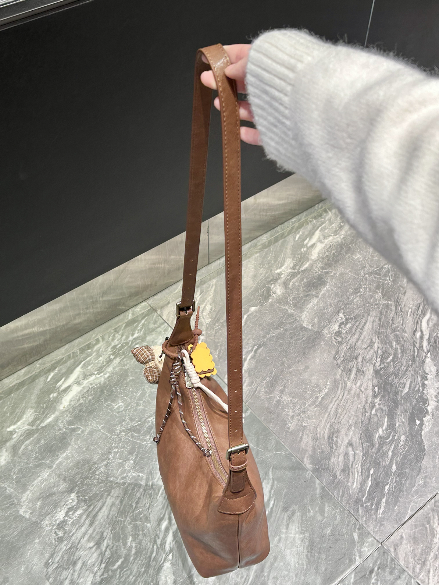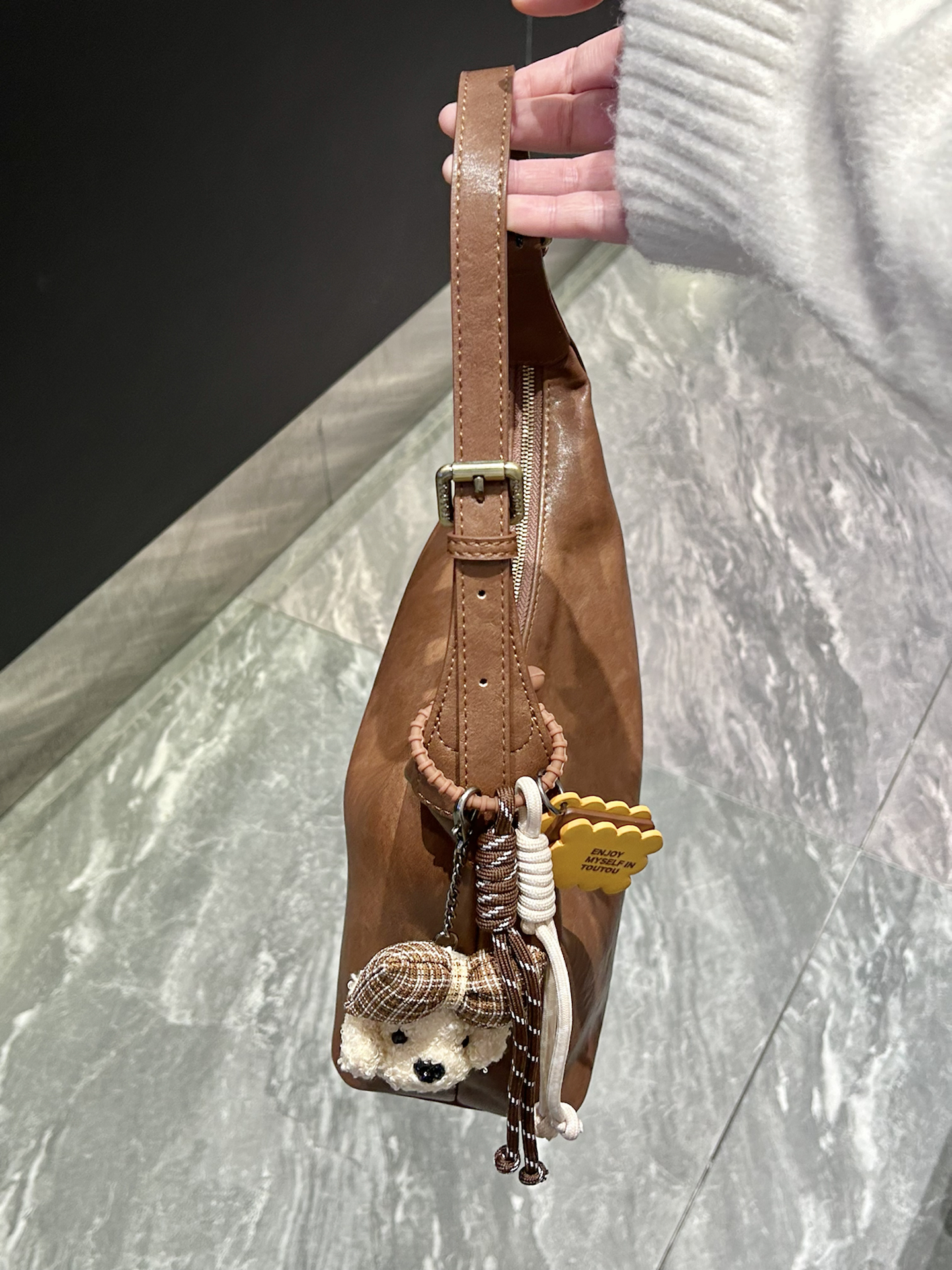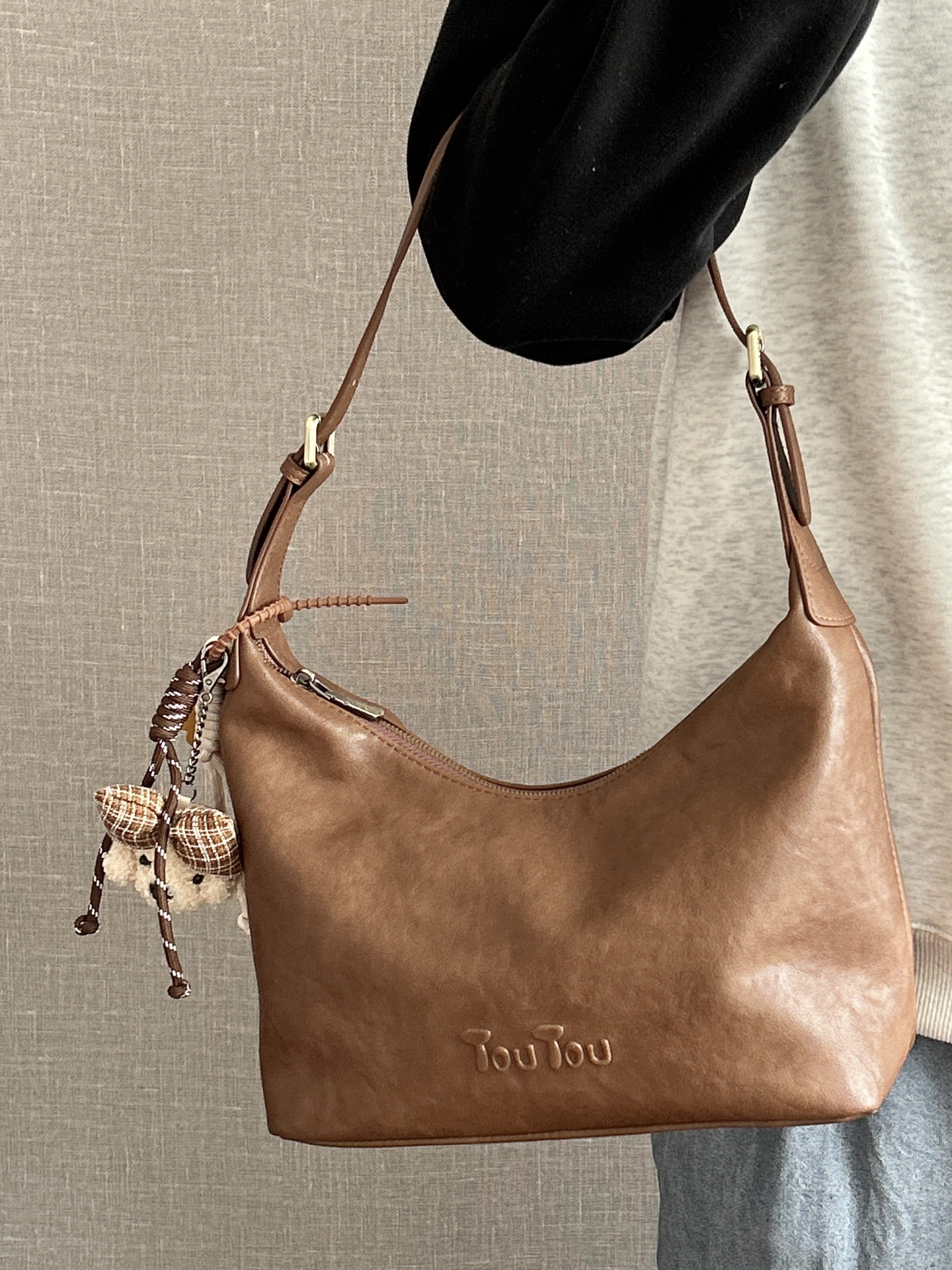 是我挖到的介个巧克力棕包包 软fufu的皮质我觉得跟秋冬蛮适配的 还搭配了一个毛茸茸的挂巧可爱 背起来版型也蛮挺的 一点都不塌 里面容量也蛮大的 雨伞水杯随便塞 可以手提 斜挂 单肩还蛮方便 我觉得平时搭配衣服也蛮好看的 最近背它出门拍照都好出片呢 #包是你的心头爱 #选包尽头是长期主义 #分享我的百搭神包 #通勤包包的天花板 #我的包包是座博物馆