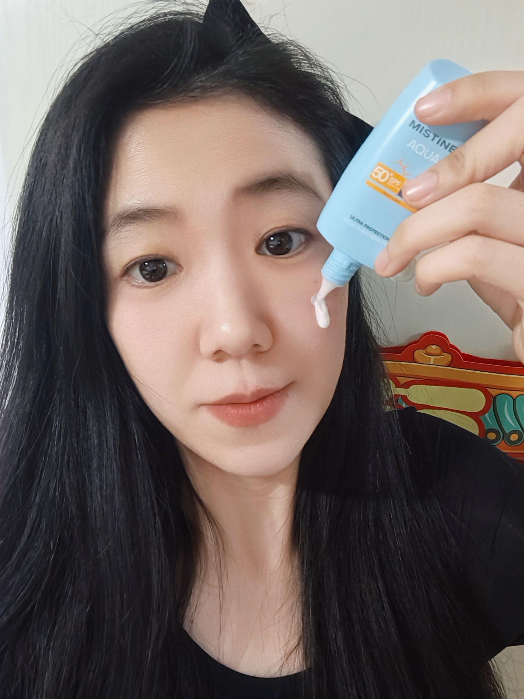 我一直坚信最简单粗暴的抗老之法 还是护肤之上防晒当家😂😂 我这副30+的皮囊真是屡试不爽! mistine小黄帽防晒这种高流动性的水润质地 就像为我肤质量身定做的一样 混油皮用起来感觉还挺清爽的~ 不会黏糊糊地搓泥脱妆🤗🤗 就这一小瓶儿随包揣着走哪补哪儿! 补涂没多久就素颜成膜了! 感觉还🈶点微微提亮肤色的赶脚~ 这几十块随晒都不黑的快乐谁懂阿⁉️
