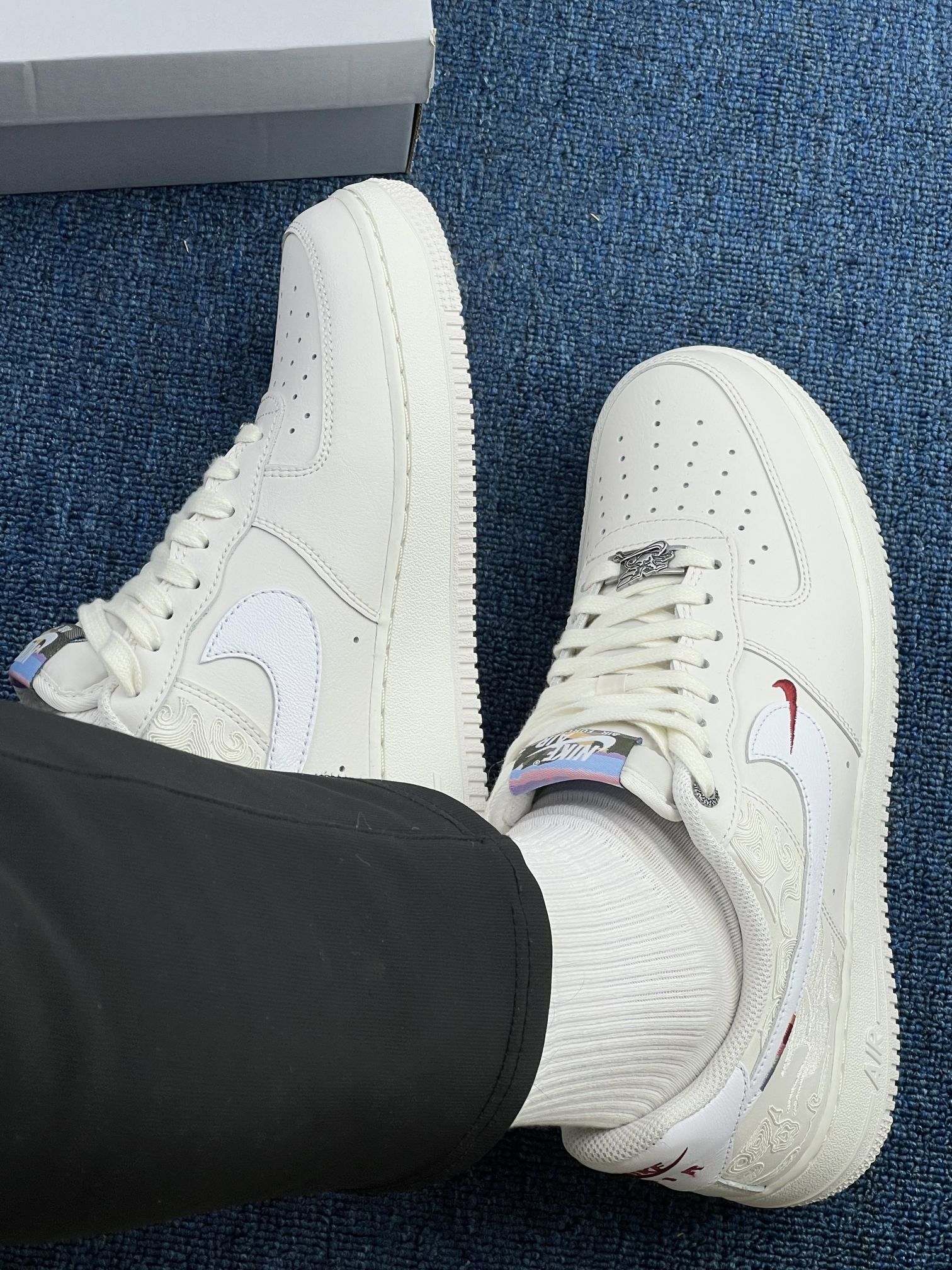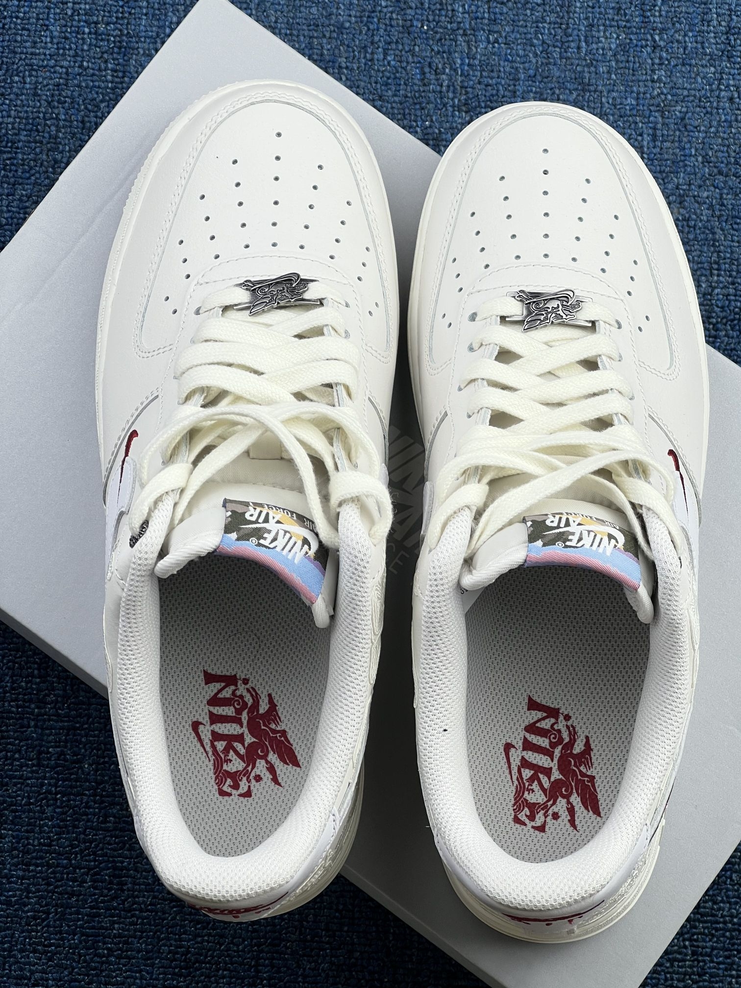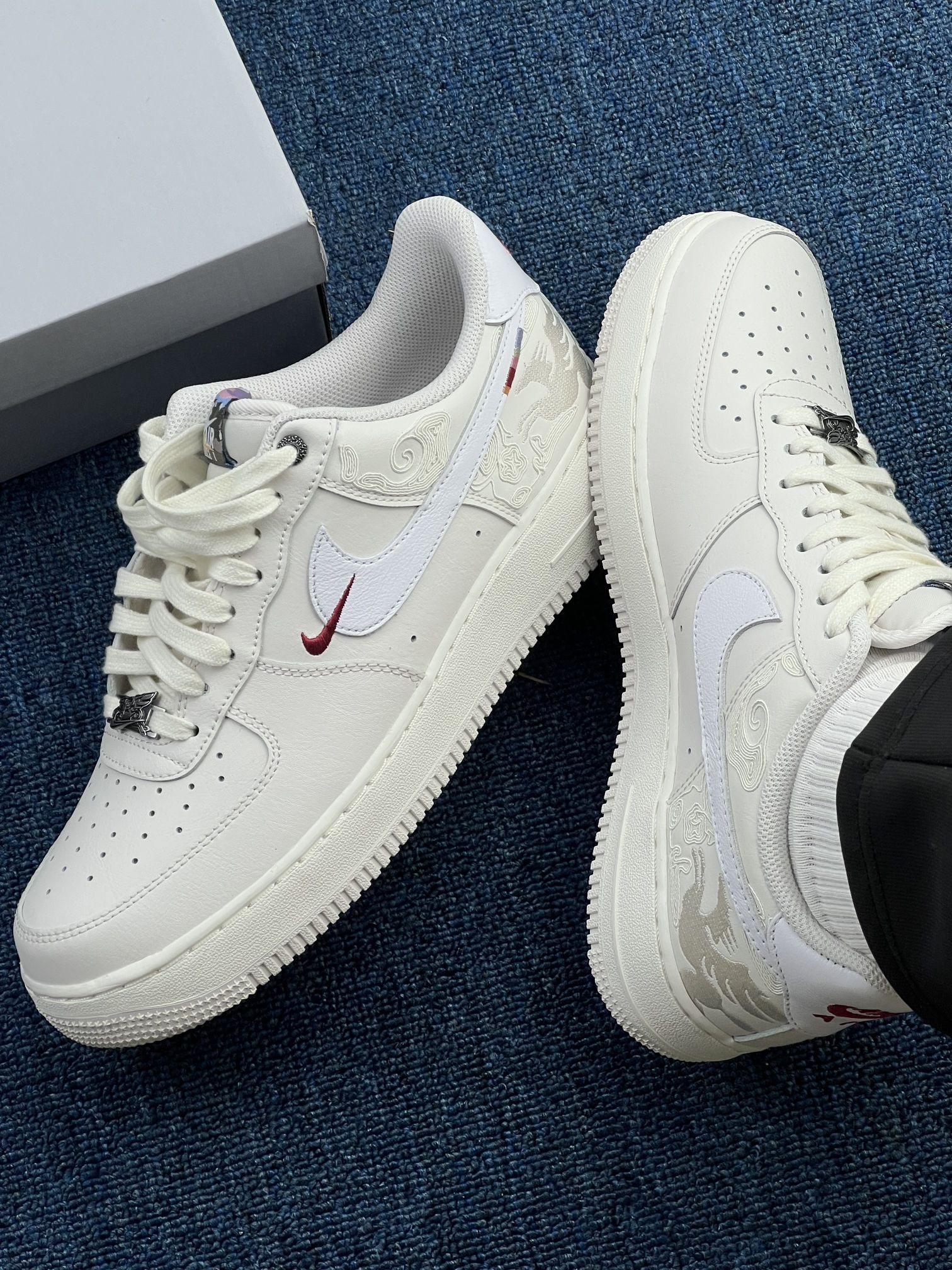 谁懂啊!我感觉这双为2026马年打造的Air Force 1,把国风浪漫玩到了天花板✨ 👀 细节拉满 - 鞋身:米白色基底上,侧边用压纹工艺雕刻出「龙马祥云」图案,层次细腻又高级。 - Swoosh Logo:白色皮革搭配红色小勾点缀,小细节直接戳中审美。 - 鞋舌/鞋垫:彩色鞋舌标+红色龙马刺绣鞋垫,呼应主题,仪式感直接拉满。 - 金属鞋扣:专属的龙马造型金属鞋扣,质感拉满,国风玩...