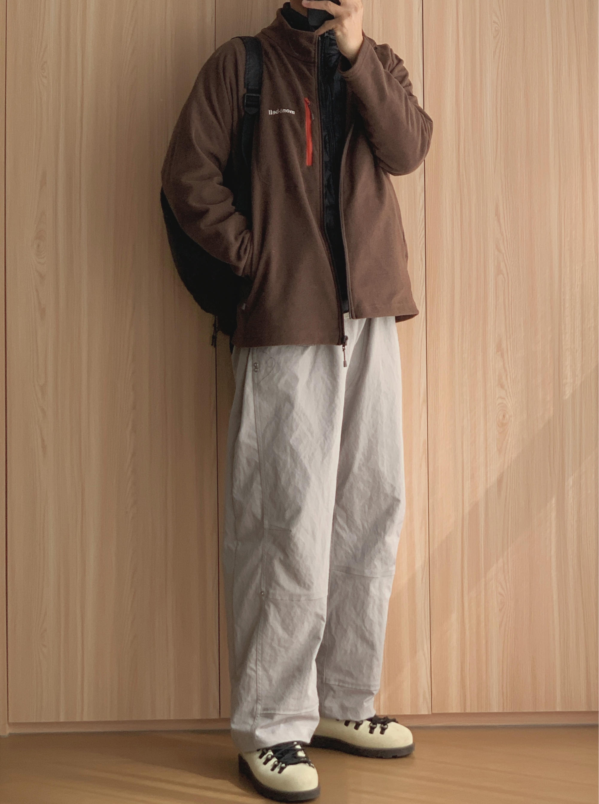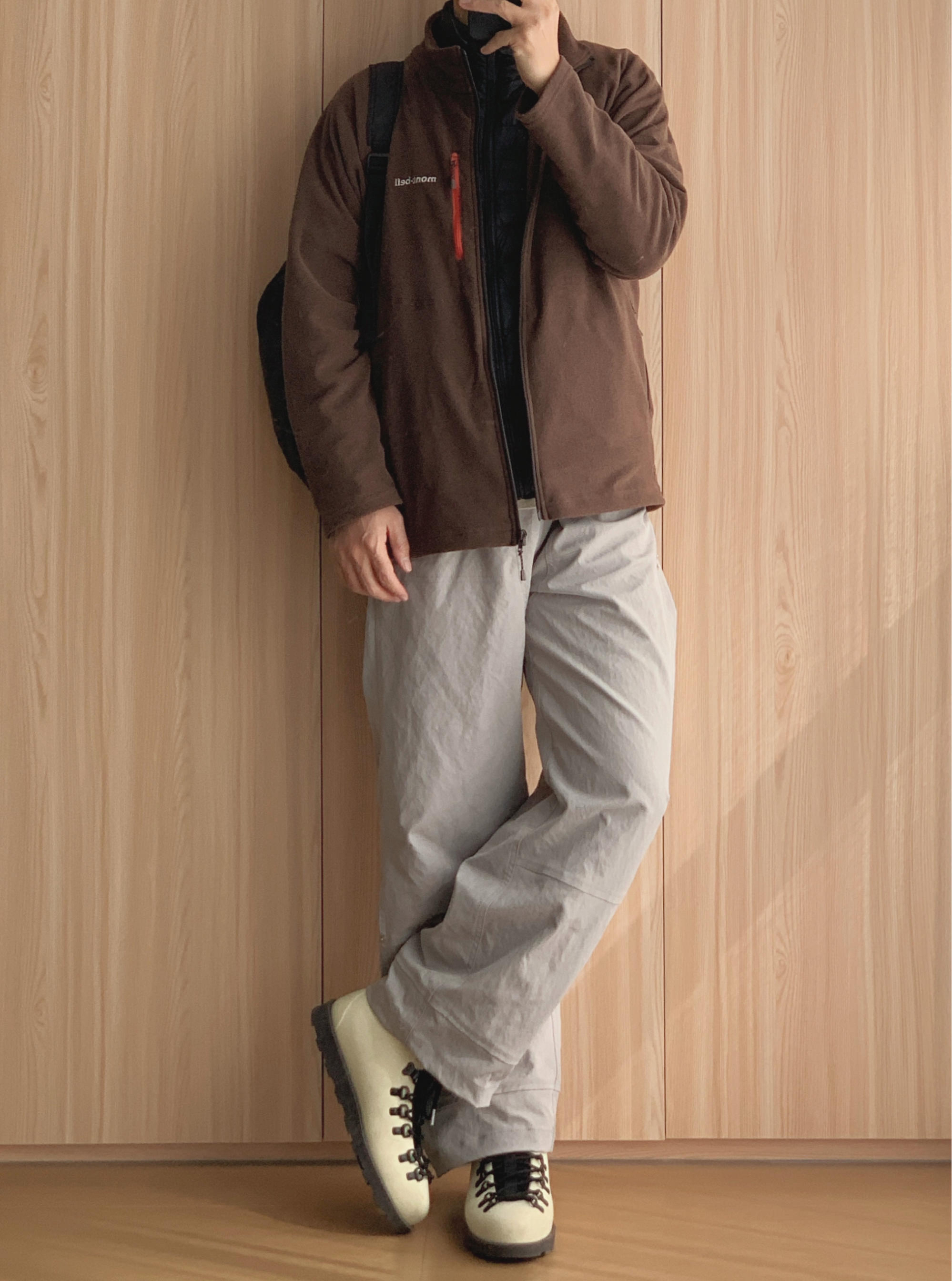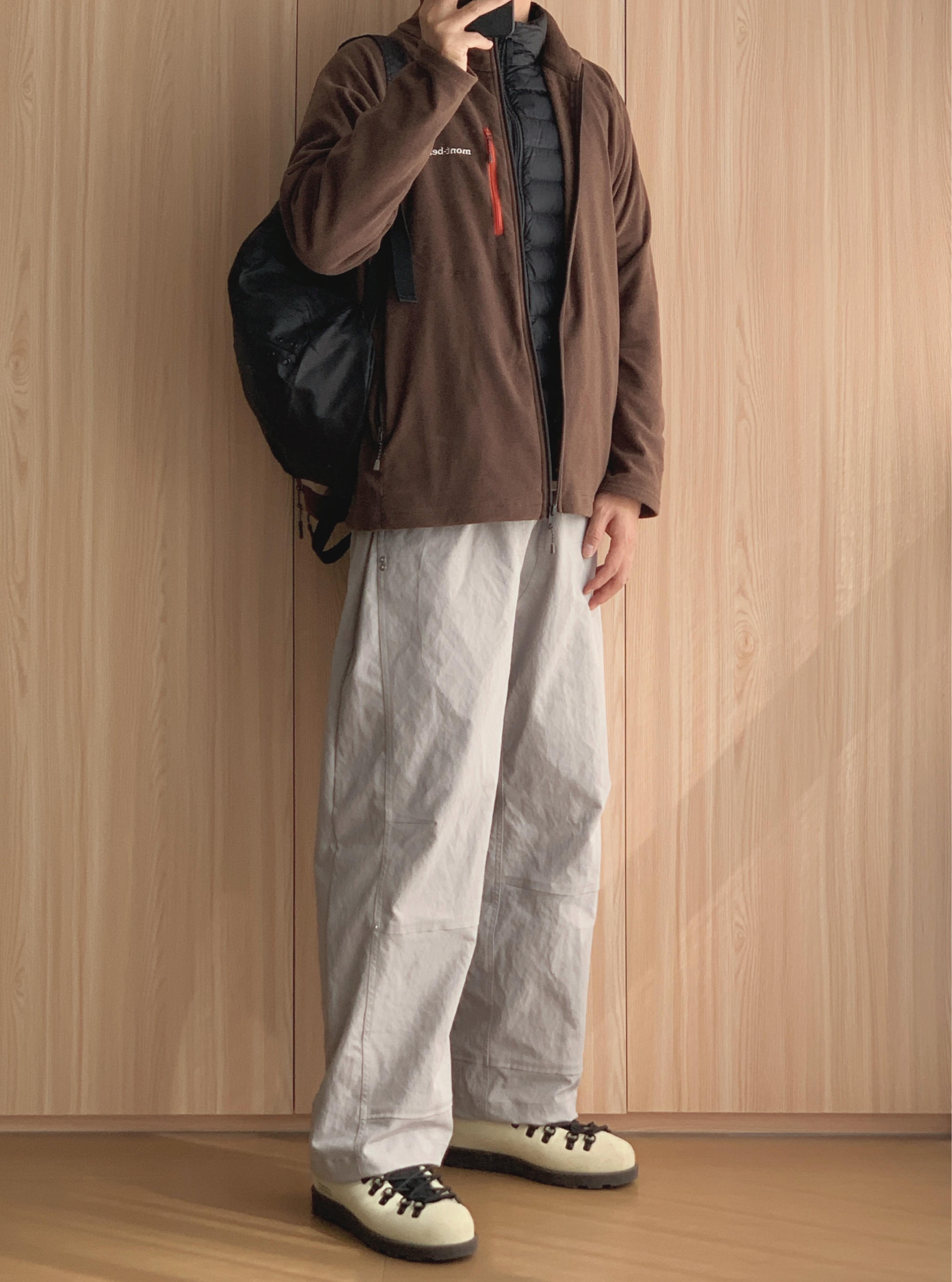 碎碎念: 周天跟朋友出来露营 羽绒马甲叠穿抓绒衣真的很暖 而已很好应对温差的变换 虽然这样搭好像有点中登味道 随便吧 感觉舒适就好👌🏻 🤳🏻OOTD 👨🏻💻175cm|70kg|42码 ▪️浅咖色鸭舌帽 ▪️咖色抓绒衣(L码) ▪️黑色羽绒马甲(L码) ▪️米色阔腿裤(XL码) ▪️浅黄色欧包马丁靴(42码) ▪️黑色户外双肩包 🙅🏻♂️ 个人观点,不喜勿喷,欢迎指点🙏🏻 这套“心机”...