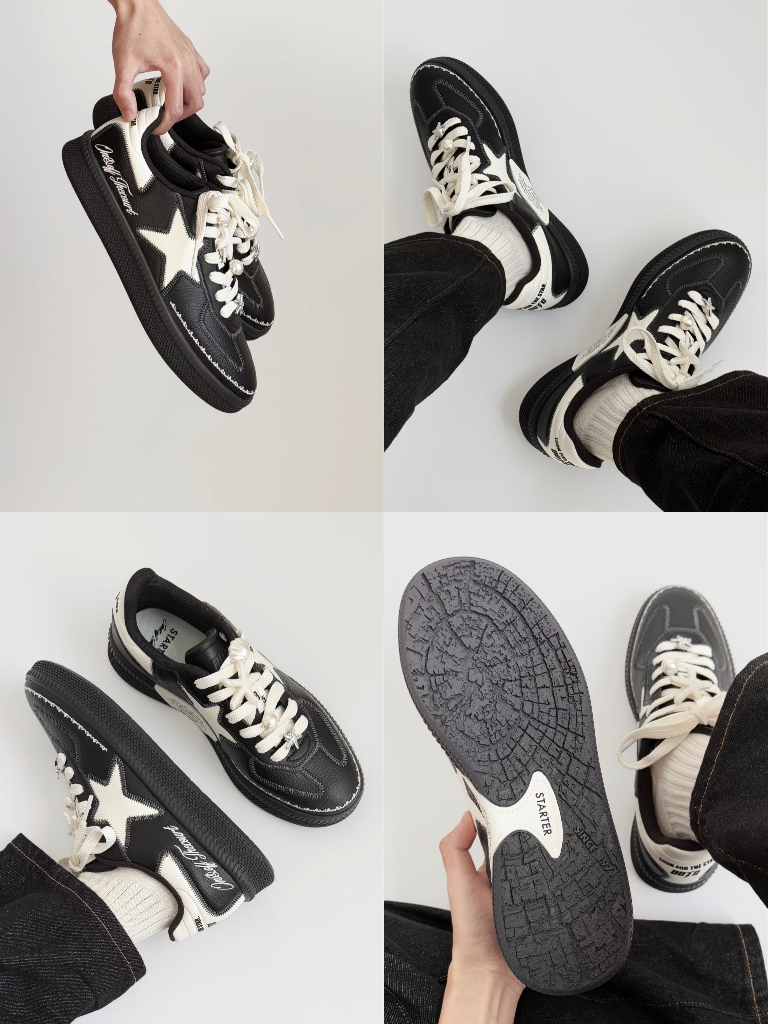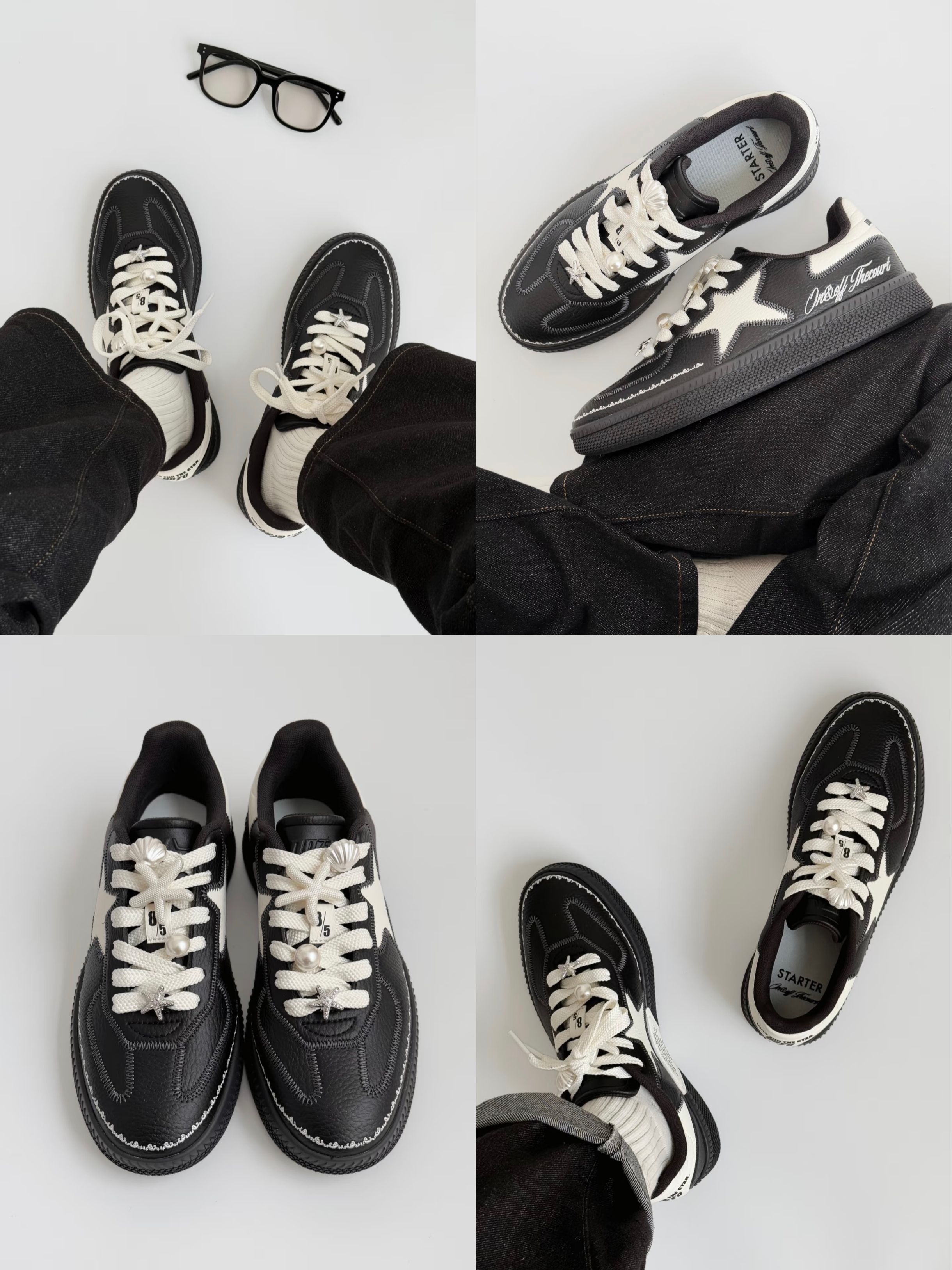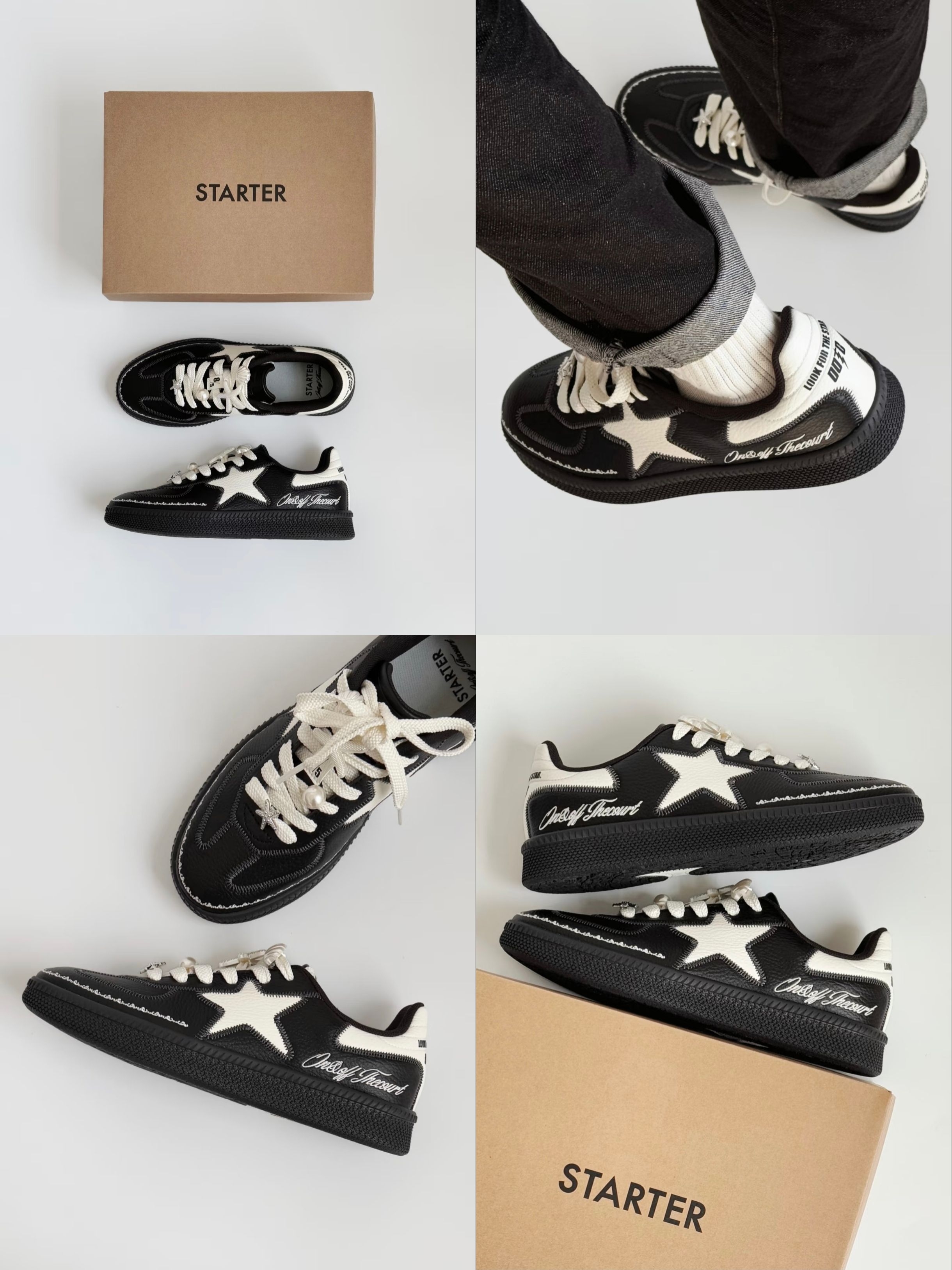 最近就想找一双鞋,能陪我应付各种闲逛、约会、短途出游,不用动脑搭配,穿上就走的那种。 朋友推荐了这双STARTER的黑白星星德训鞋,说特别“对味”。我入手穿了快两周,它果然成了我鞋架上的“新宠”。 先说说颜值和搭配(产品描述 & 个人建议) 我选的就是最经典的黑白款,侧边那个立体的白色星星是灵魂,让简单的鞋子一下子有了重点,复古又有点小街头。它的鞋型是那种有点宽宽的德训鞋感觉,不挤脚,对脚型...