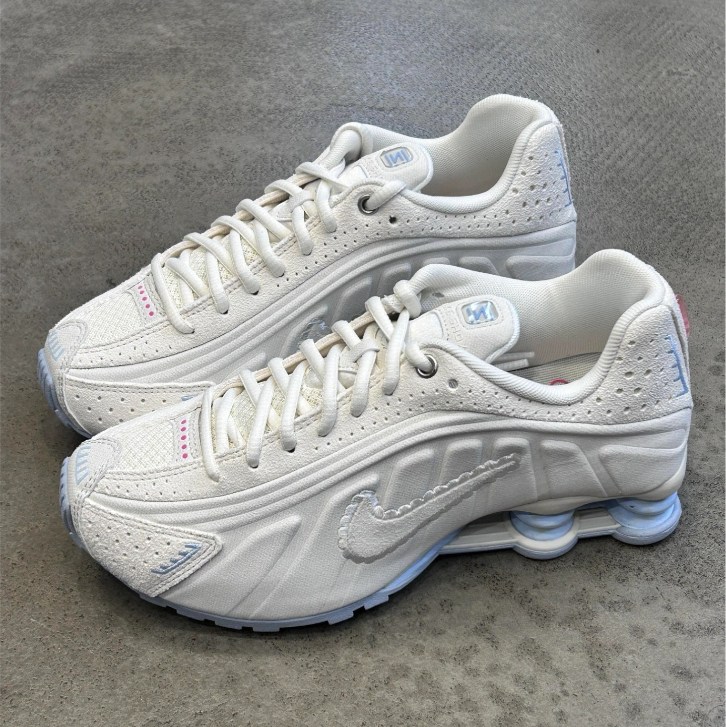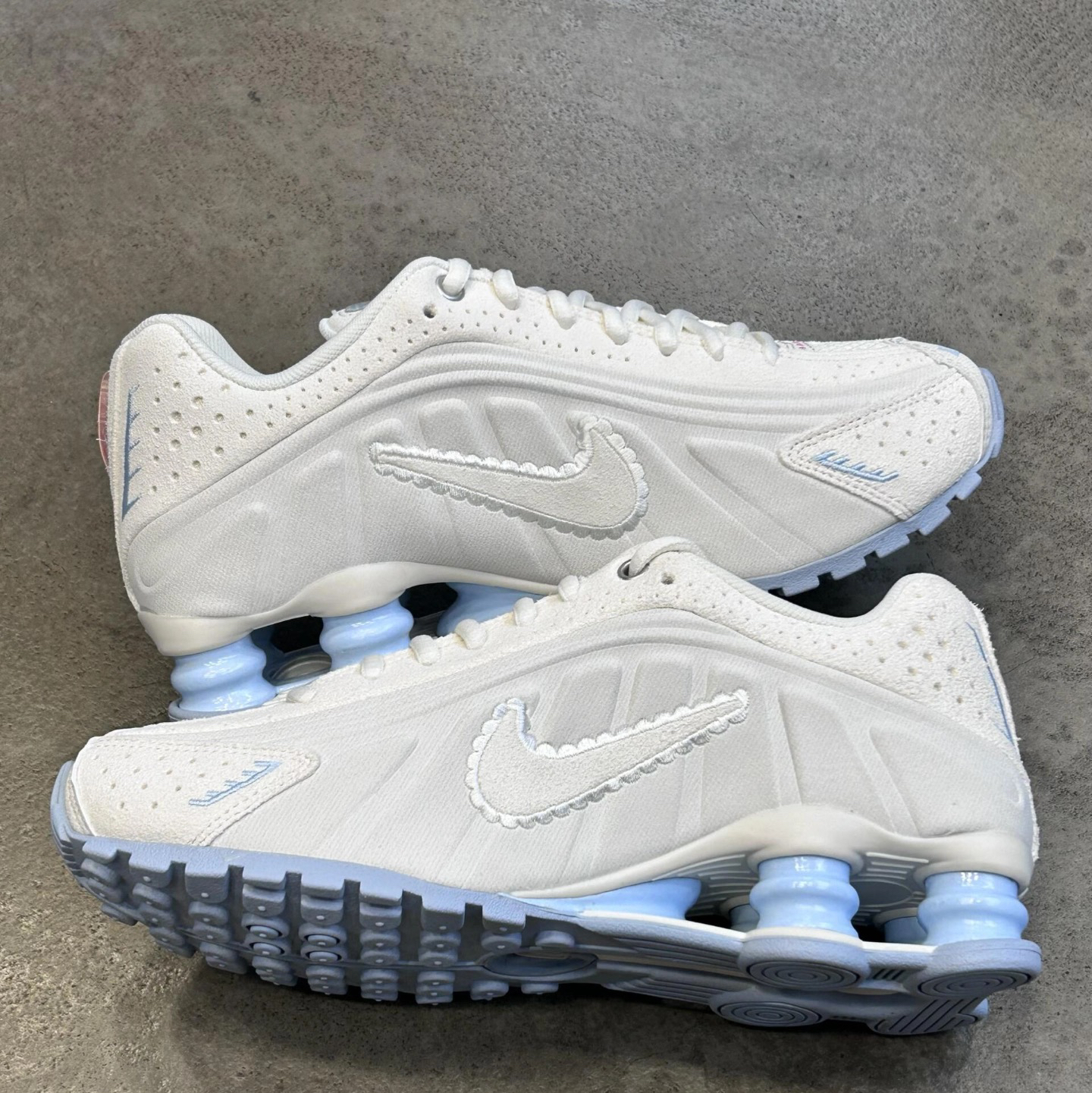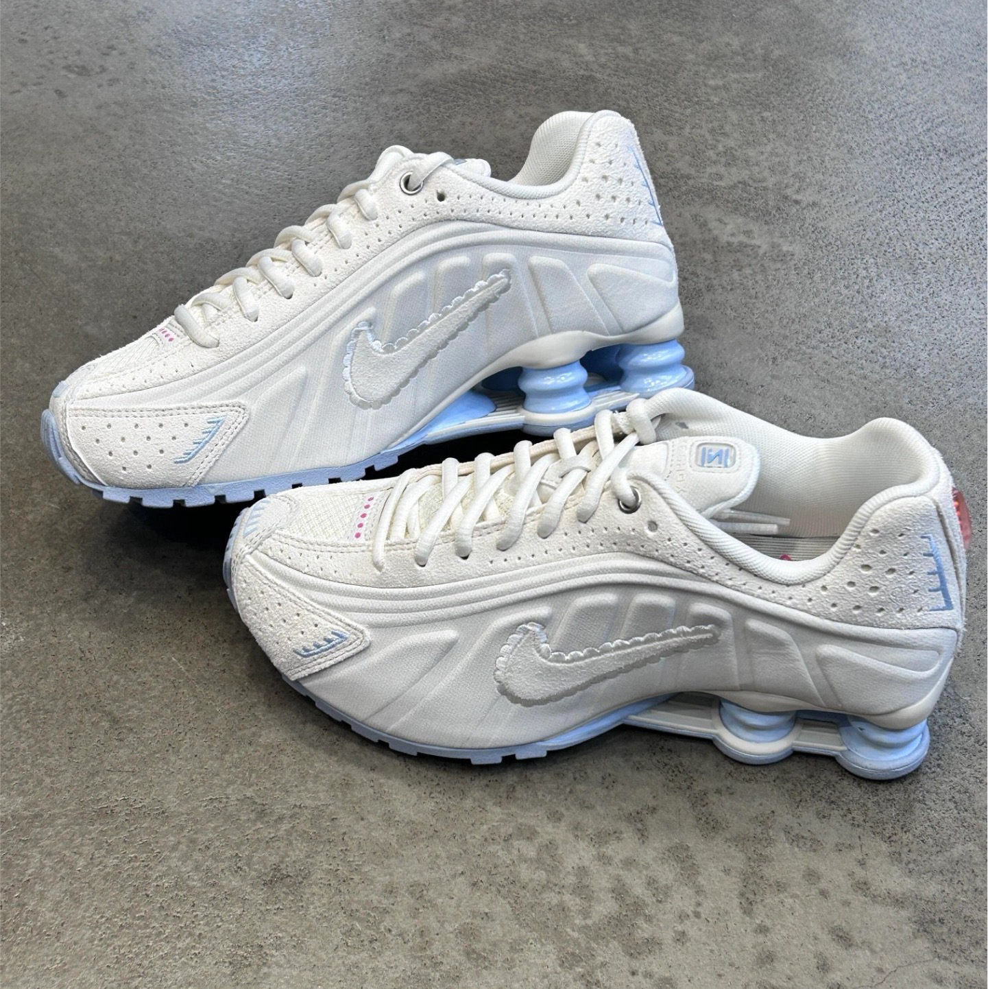 💙奶蓝奶白拼一起,清冷又温柔,新年出门拜年、逛街穿都超合适💃 🤍冰蓝配鞋身荔枝纹加网眼,不闷脚质感贼好,勾子的毛边小设计还挺俏皮的🎉 💜标志性Shox冰蓝弹簧柱,颜值绝了还能增高,小个子直接狂喜,走路回弹感也超舒服🎉 ❤️新年穿这双,脚踩新鞋迎新春,氛围感直接拉满