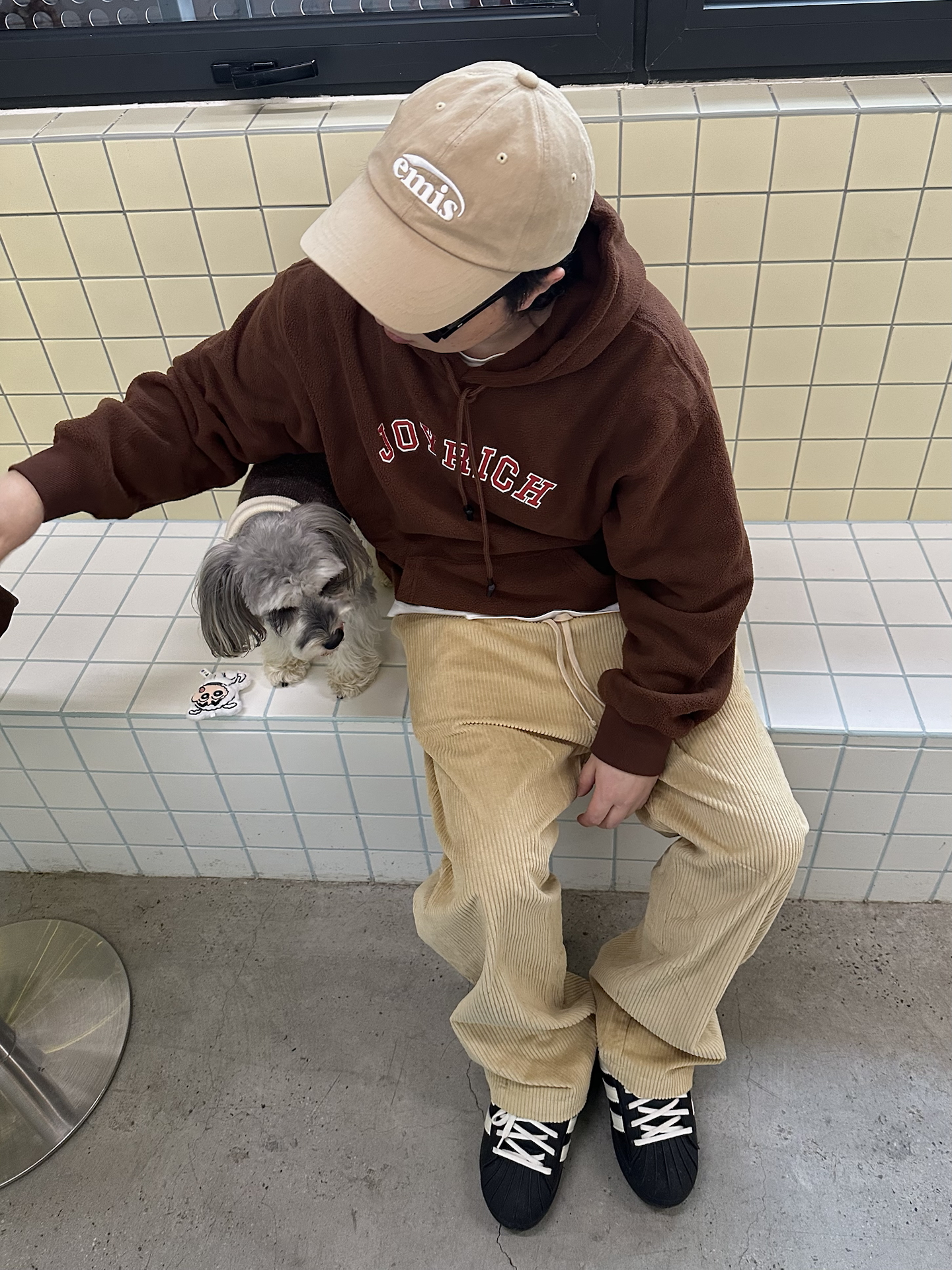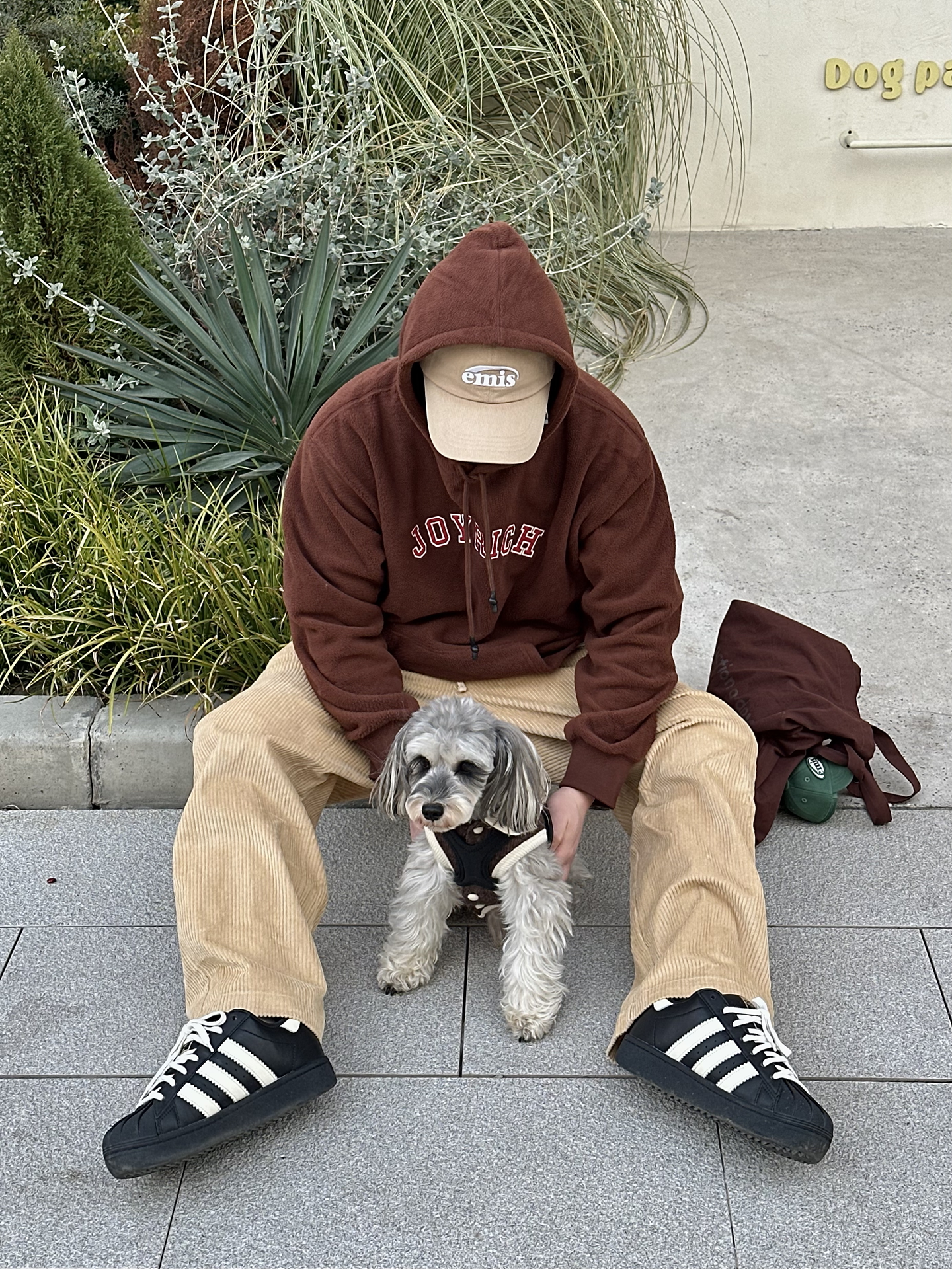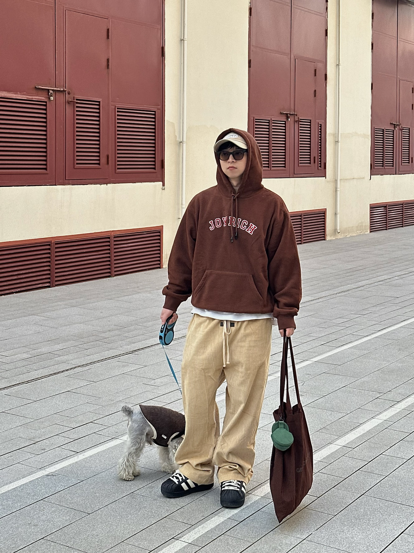 哈喽👋🏻大家好哇 这里是🪨石地夫的穿搭小日记📝 - 今天去遛狗🐶 一套基础的美式ootd就出门了🚶 上身一件棕色摇粒绒卫衣🍄🟫 胸前美式字母logo对味了☕️ 白T打底叠穿出层次感✨ 下身穿了直筒阔腿裤 灯芯绒面料复古范儿简直爆炸💥 卡其色配棕色超搭的☑️ 搭配面包板鞋松弛感get🤏🏻 #基础款拿捏冬季穿搭 #时尚爆品推手 #2026开年Fitcheck #我的基础款不无聊 #冬天也要又...