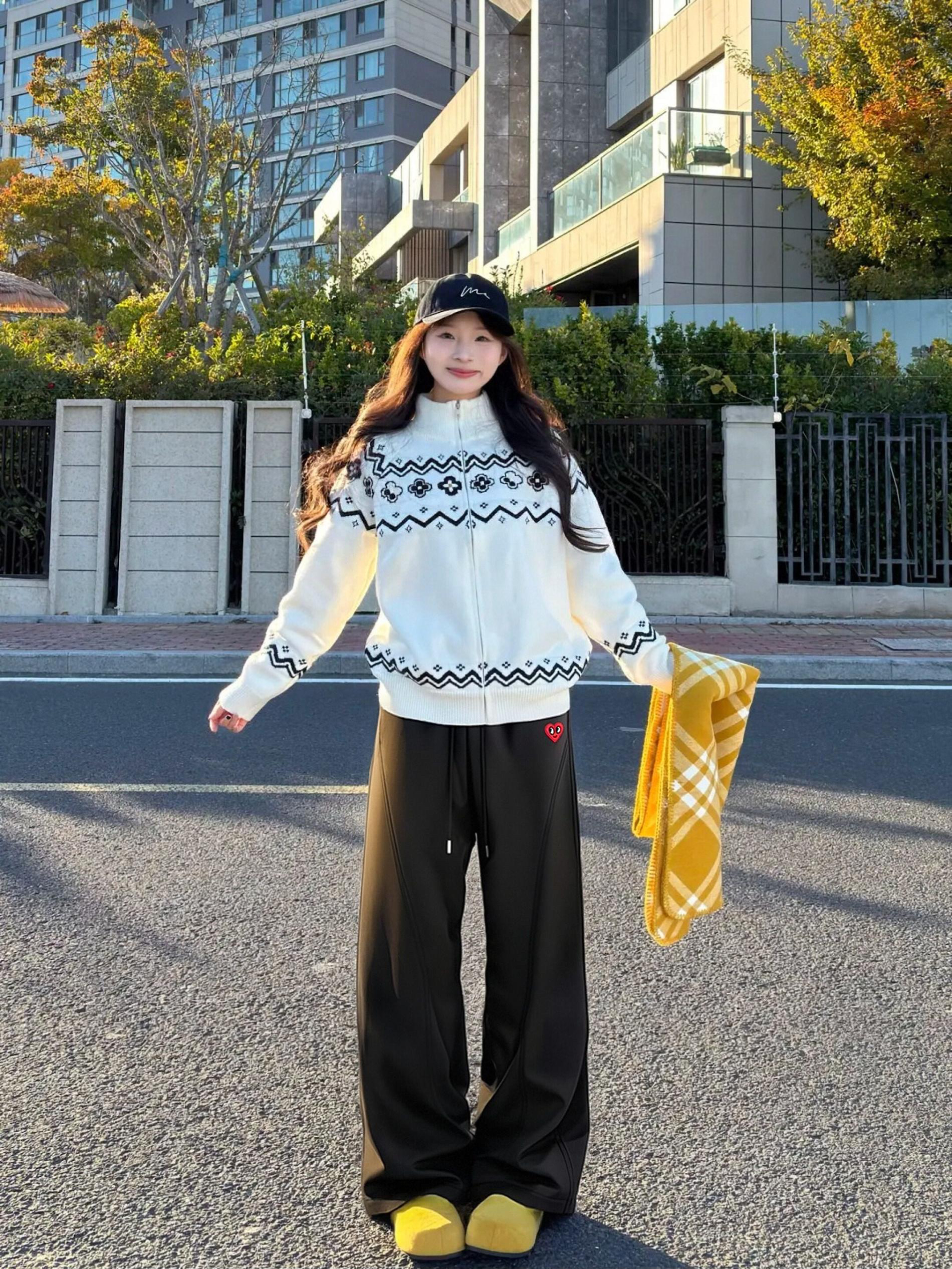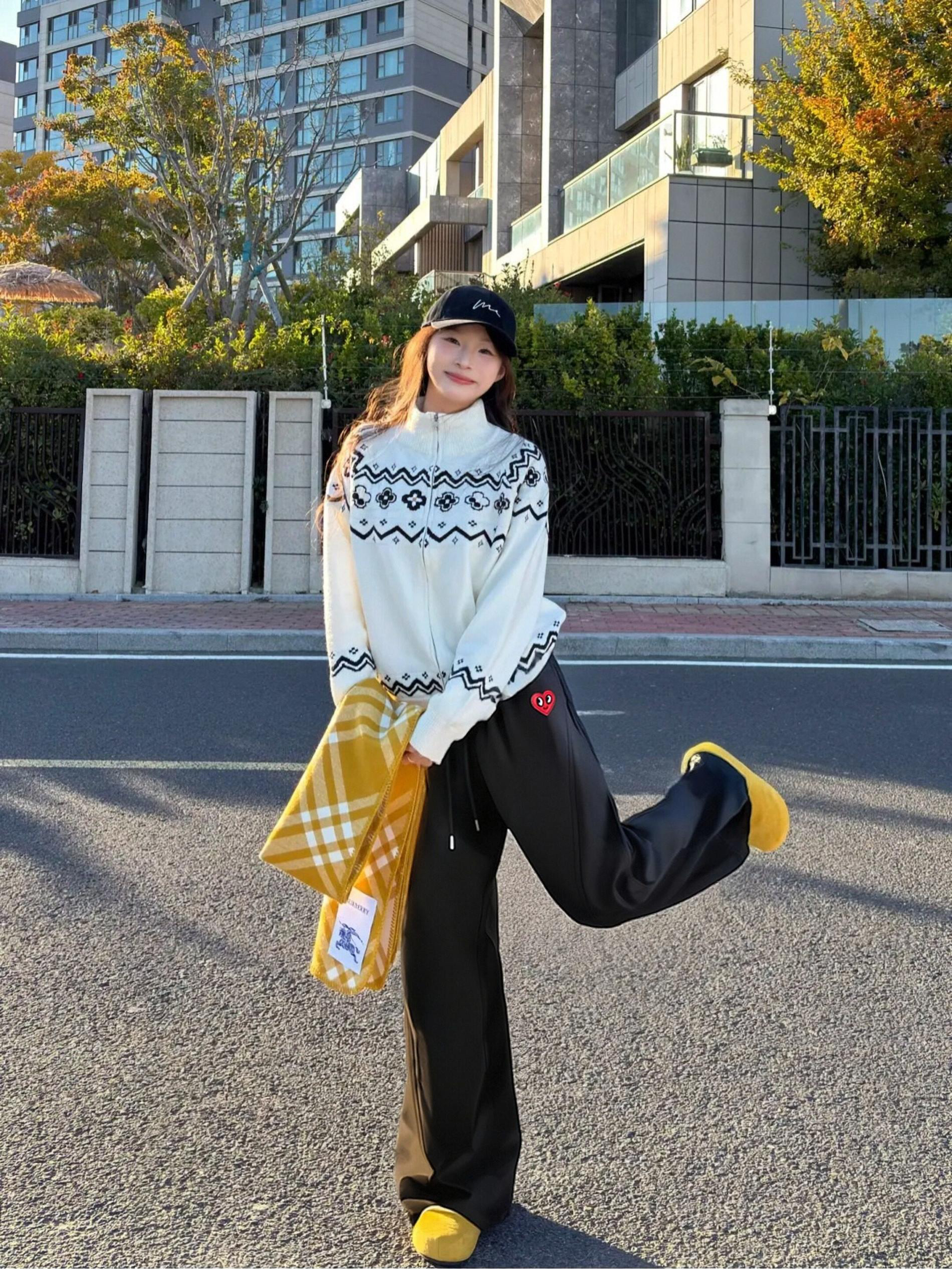 这条弯刀裤真的是我的秋冬本命!高腰设计把我 158 的小短腿直接拉长,微喇裤型修饰腿型超绝,随便搭一件费尔岛毛衣就很有氛围感。面料厚实又垂顺,松紧腰 + 抽绳设计对腰腹超友好,小个子闭眼冲!