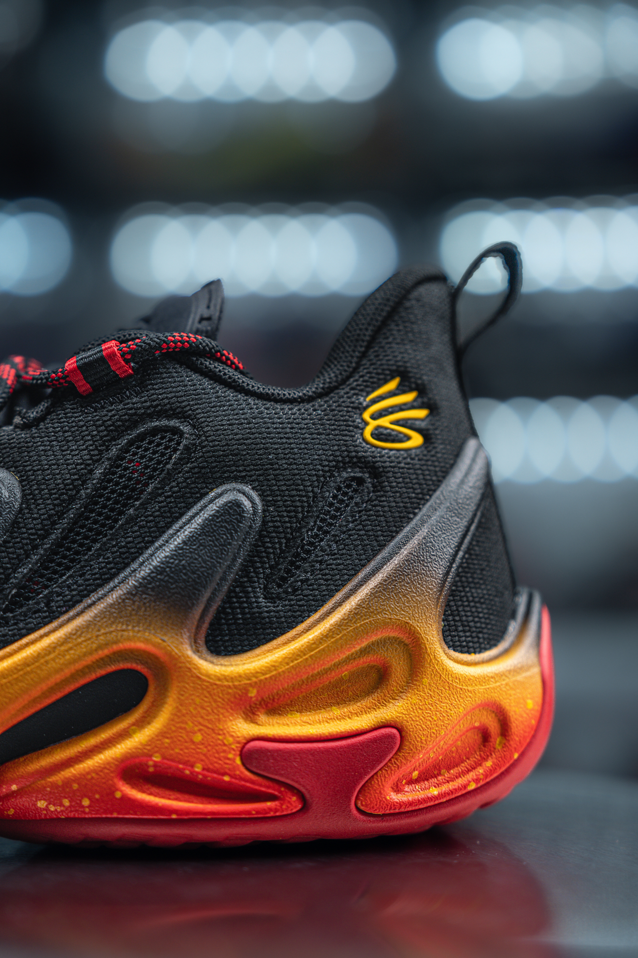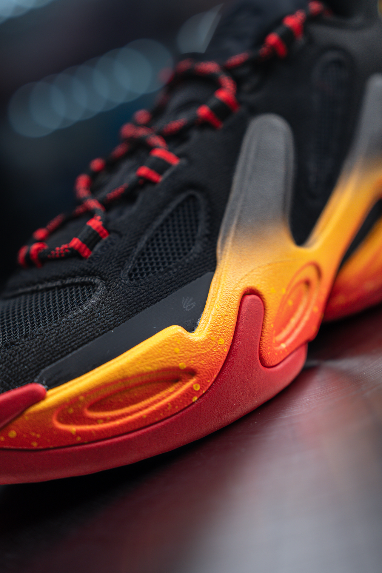 这不仅是库里在UA的最后一代签名鞋,更是一个时代的句号。 复古机甲风鞋身,硬朗线条自带战斗气场,一上脚就感觉自己是球场主角。 🔧 实战升级 • 外底从耐磨拉胯的FLOW换成了橡胶材质,终于能放心在室外球场造了 • 延伸到鞋面的橡胶设计,包裹感直接拉满,急停变向都稳得一批 🎬 彩蛋联动 这双黑红黄配色,是库里参与制片、《蜘蛛侠:纵横宇宙》原班团队打造的动画电影《GOAT》的联名款。 电...