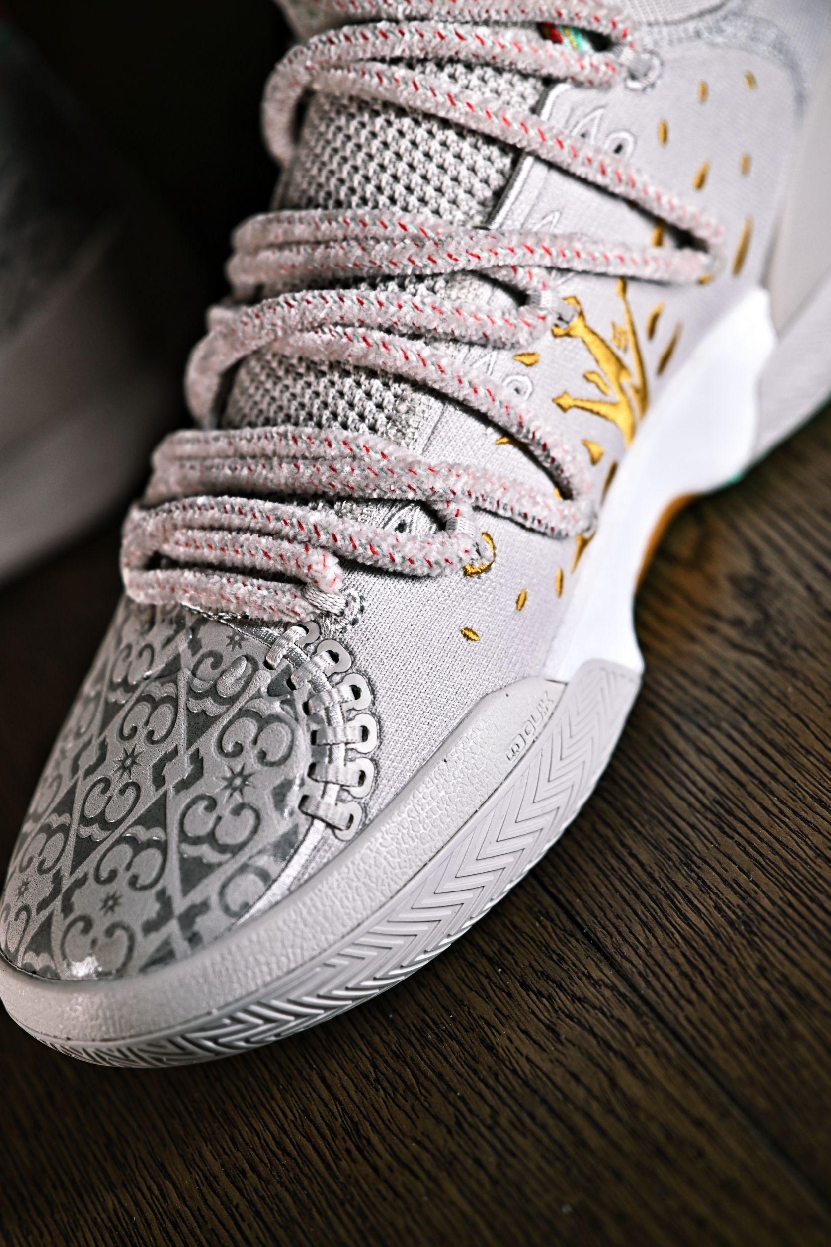 终于是等到了Joker2的这双马年限定配色"戎马万乘" 灰色的鞋面做了类磨砂的哑光处理,以及大面积的压印工艺,整双鞋的质感来看还是相当不错的,两侧分别有着👑的缝线以及印花 再包括二代新推出的这个绑带系统,上脚的包裹感显著提升,当然如果你觉得原鞋上的这款毛绒鞋带影响实战,随鞋还送有单独的替换鞋带 全掌的超临界发泡加持下脚感依旧韧弹,高帮脚踝的锁定感可以说是安全满满,整体的表现十分均衡,都很适合我们这...