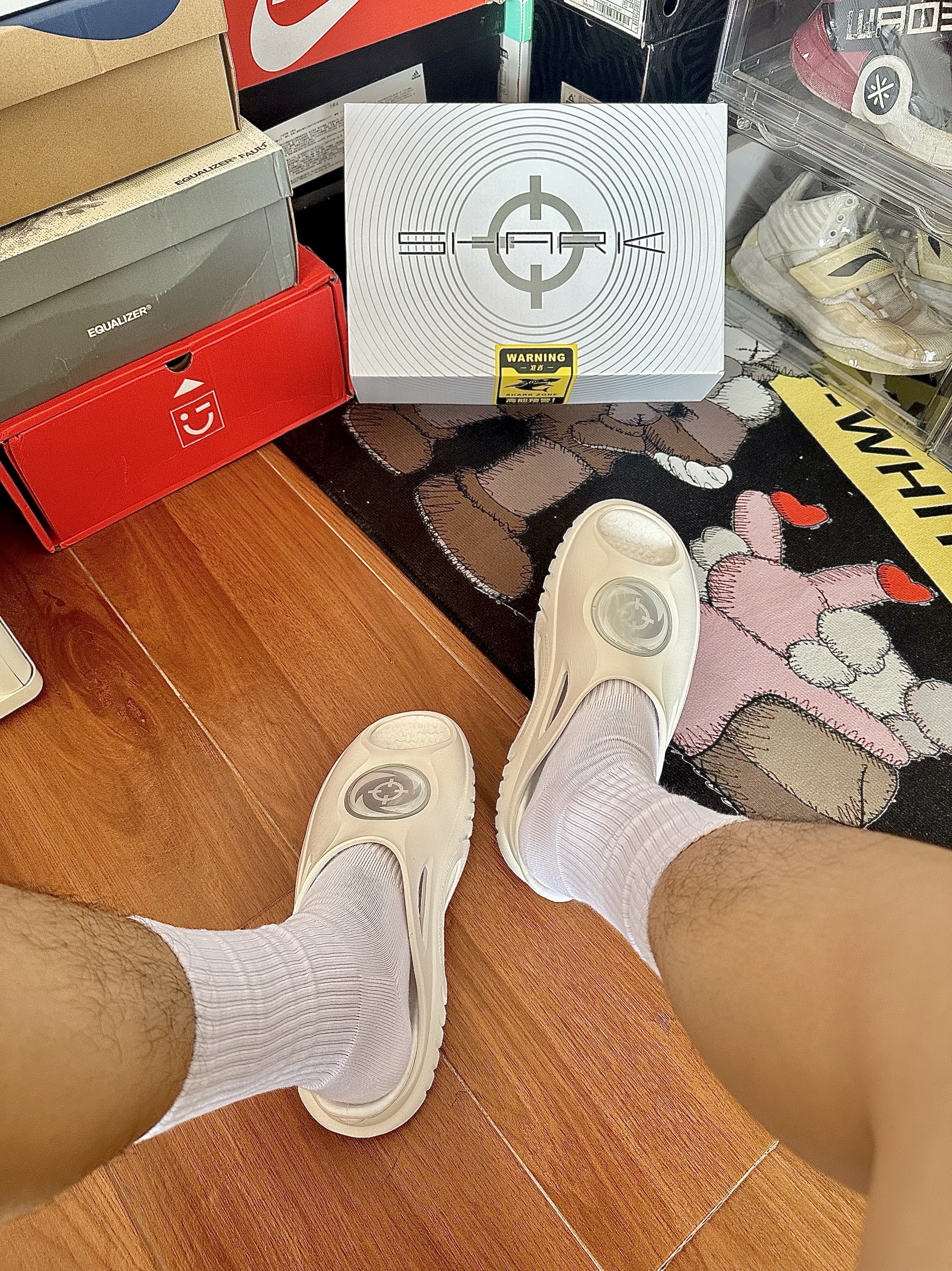这双 准者 RIGORER 鲨鱼拖鞋一代 这拖鞋的配色和设计细节🤏 真的深得我心一整个爱住😍 超临界发泡中底再加上可拆卸式设计 脚感相当软弹日常清洁起来也非常方便💯