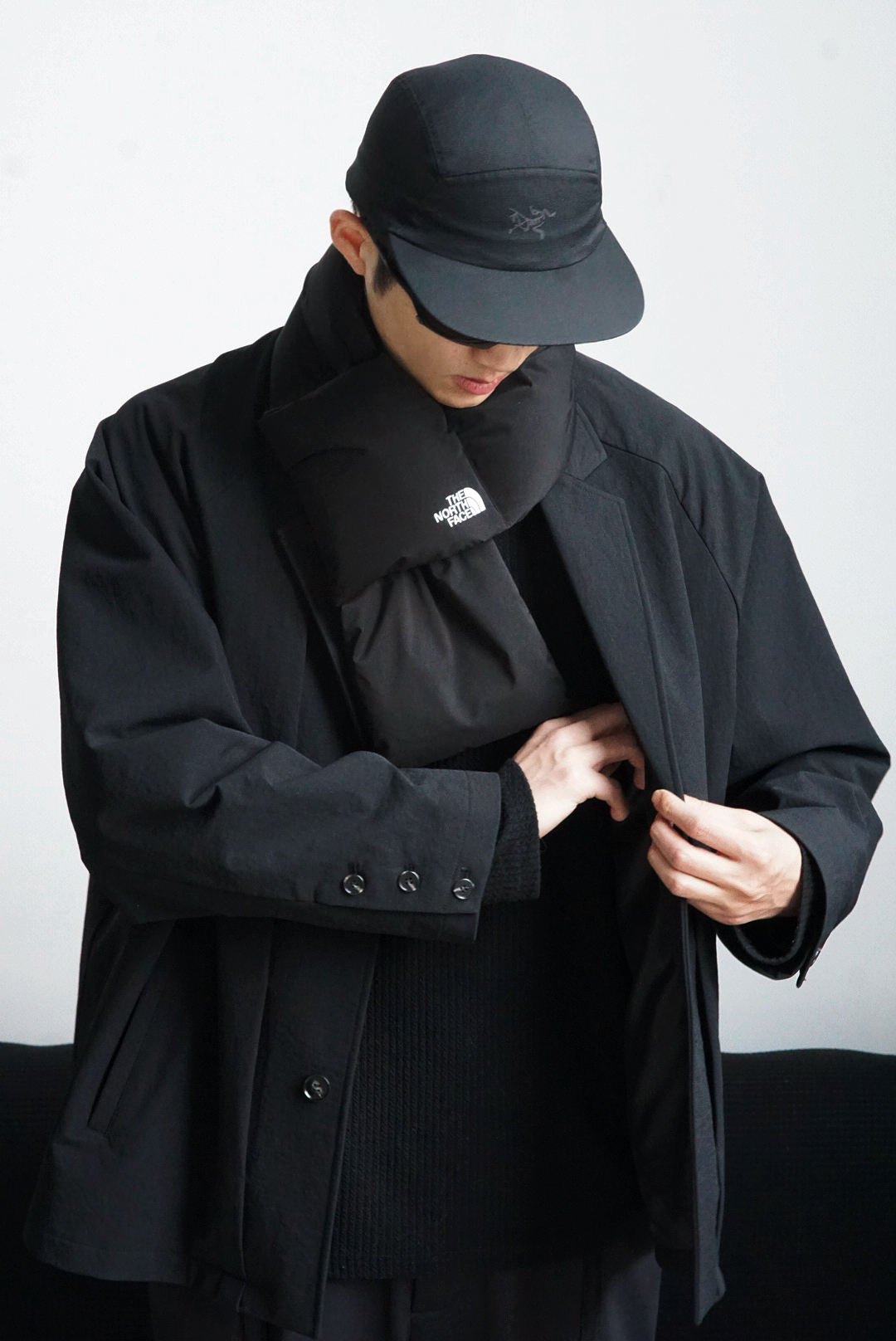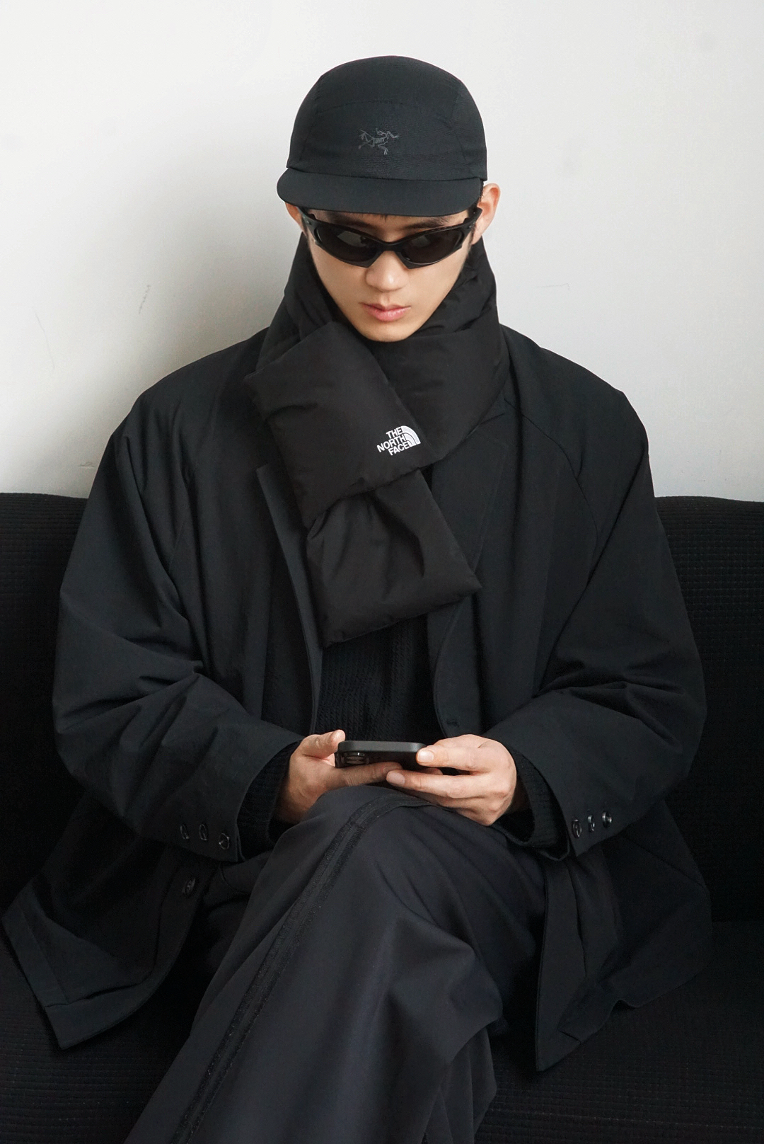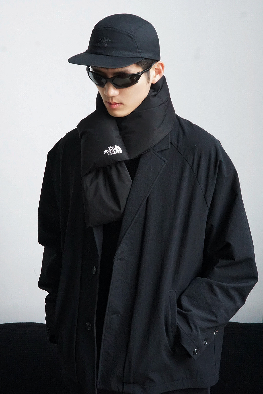 今天是冬日all black风,利用不同材质下的黑色形成对比,将机能感融入全黑造型中,The North Face除了经典的紫色外,黑色也是一绝。今天拿北面配吕布,虽然冷但是不妨碍帅呀