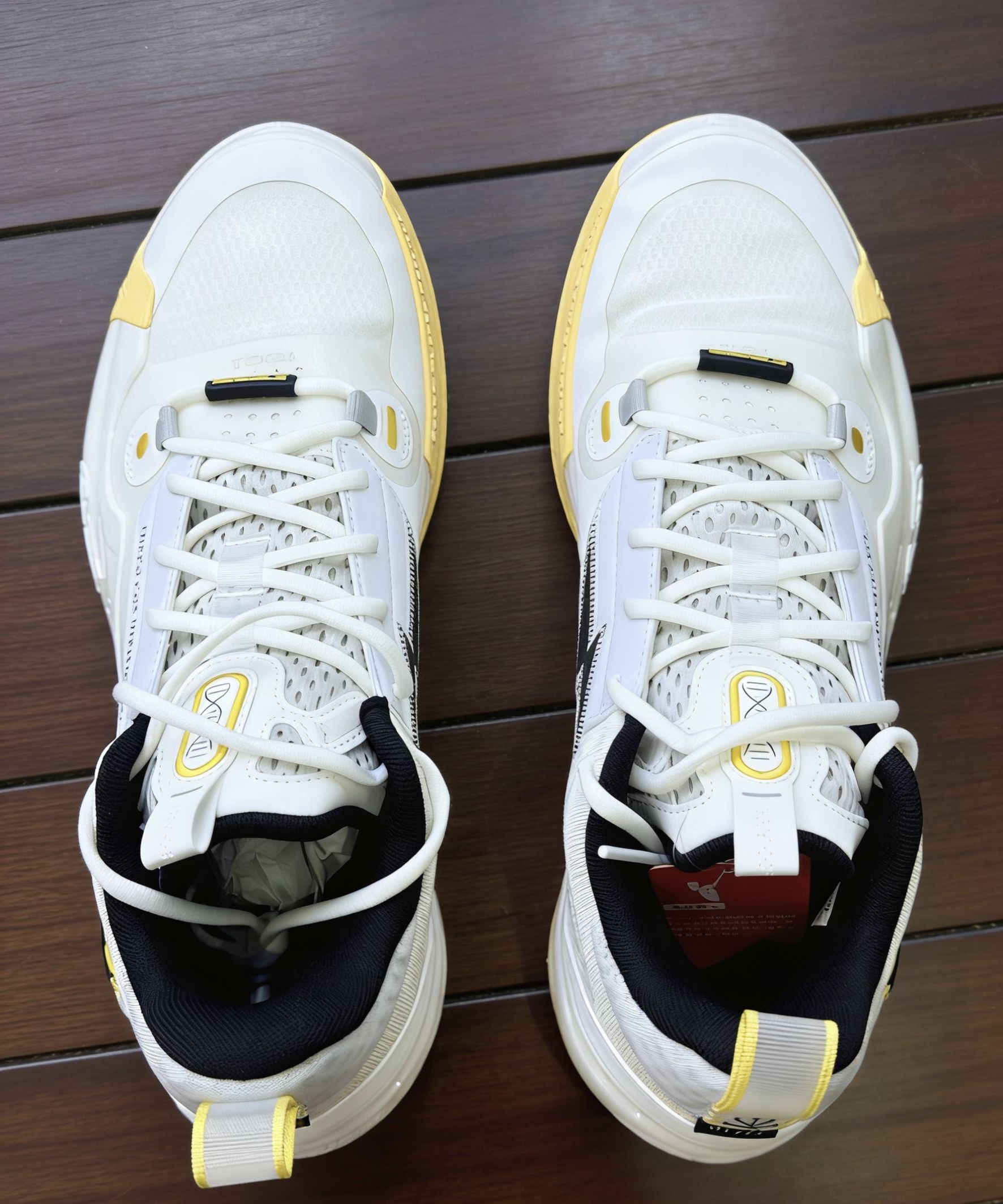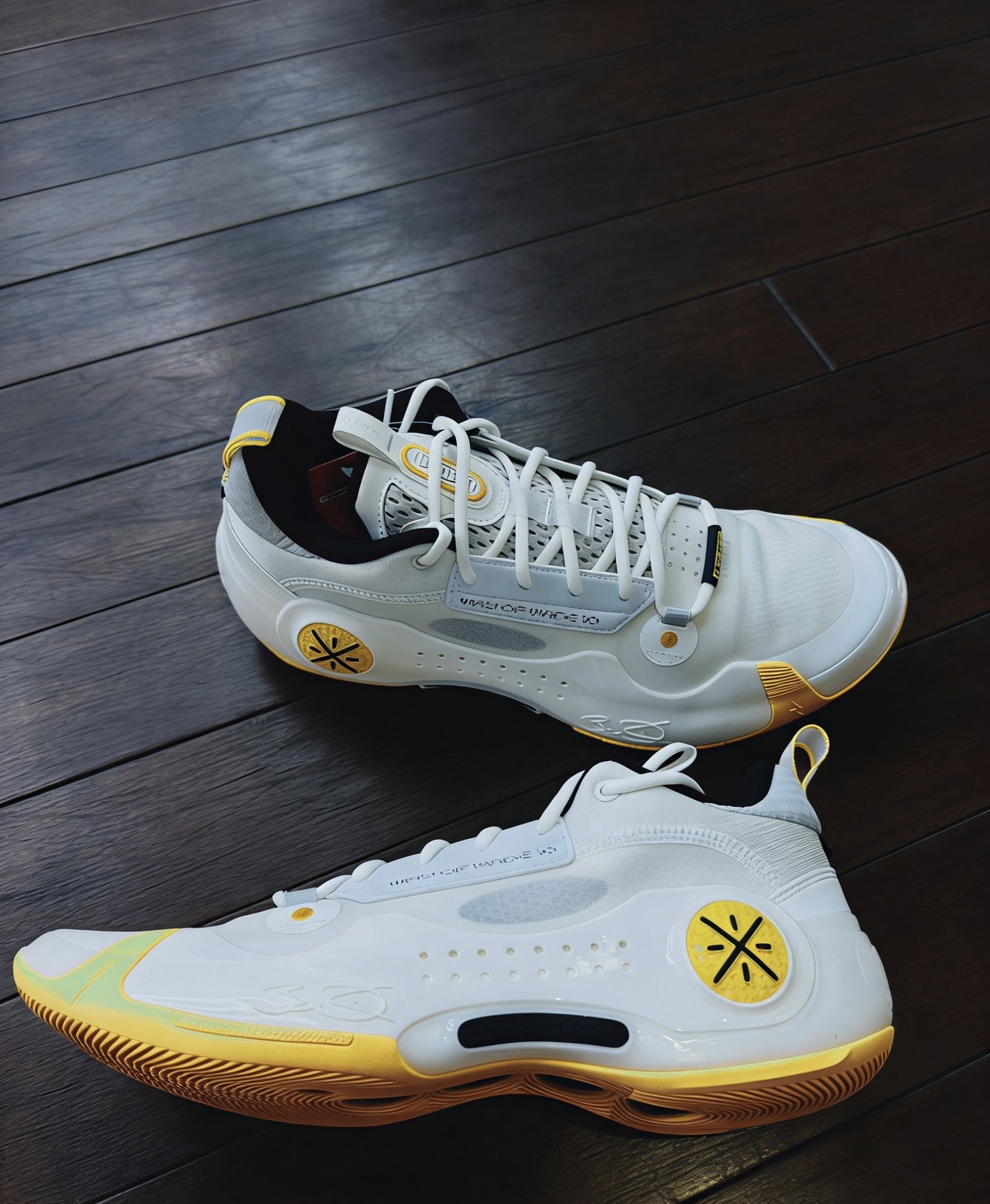 这双韦德之道10白黄配色我已经穿了一个多月,米白鞋面搭配亮黄点缀,干净又亮眼,球场和街头都能hold住。上脚第一感觉就是包裹感拉满,碳板的支撑很扎实,急停变向时稳得一批,缓震也刚好,打一下午球膝盖也没压力。 平时我除了穿它打全场,周末和朋友压马路也爱穿,搭束脚裤显腿长,配运动短裤也很利落。对我来说,它不只是一双实战鞋,更像球场上的“战友”,陪我投进关键球,也陪我在日常里放松,是能兼顾热爱与生活的...