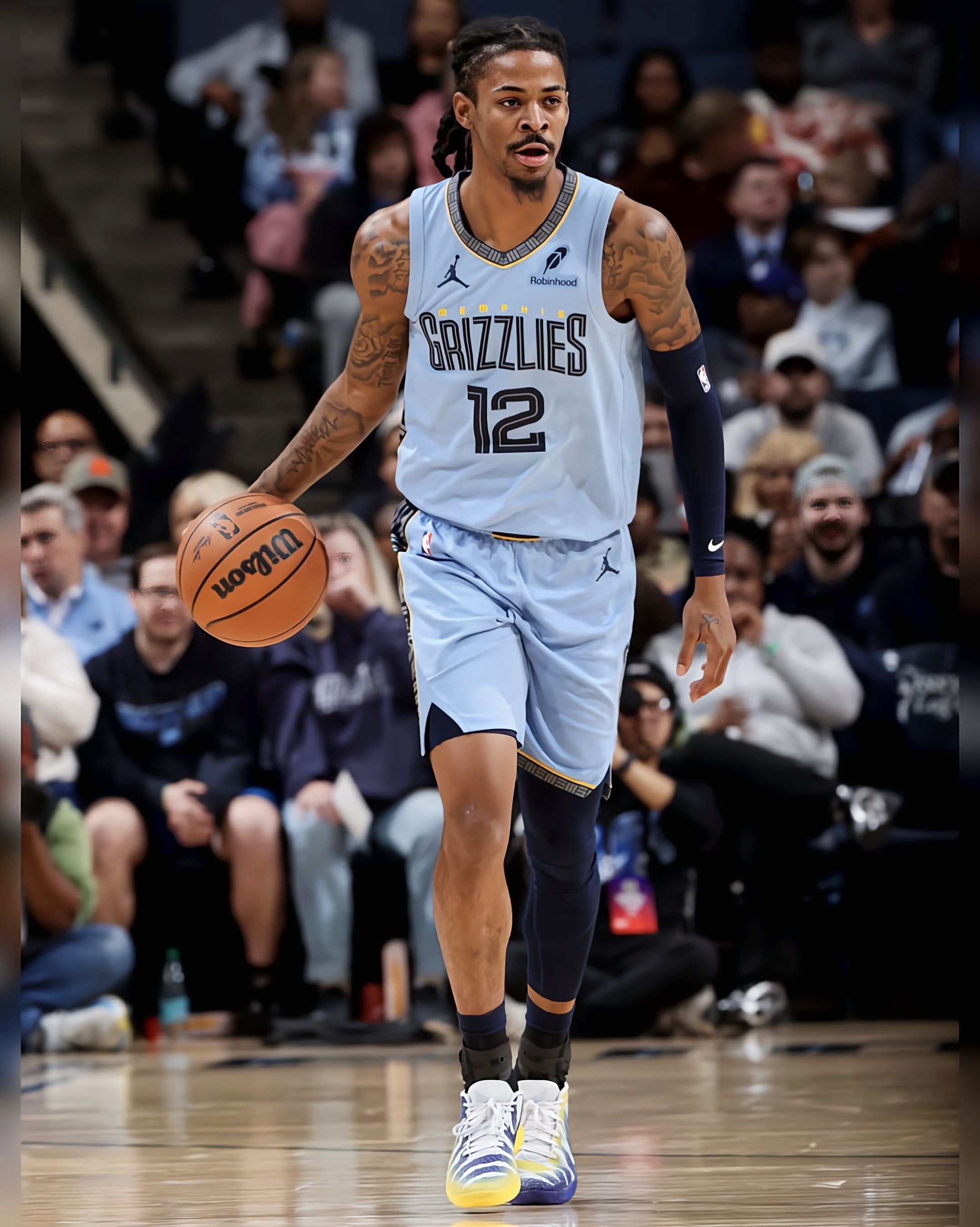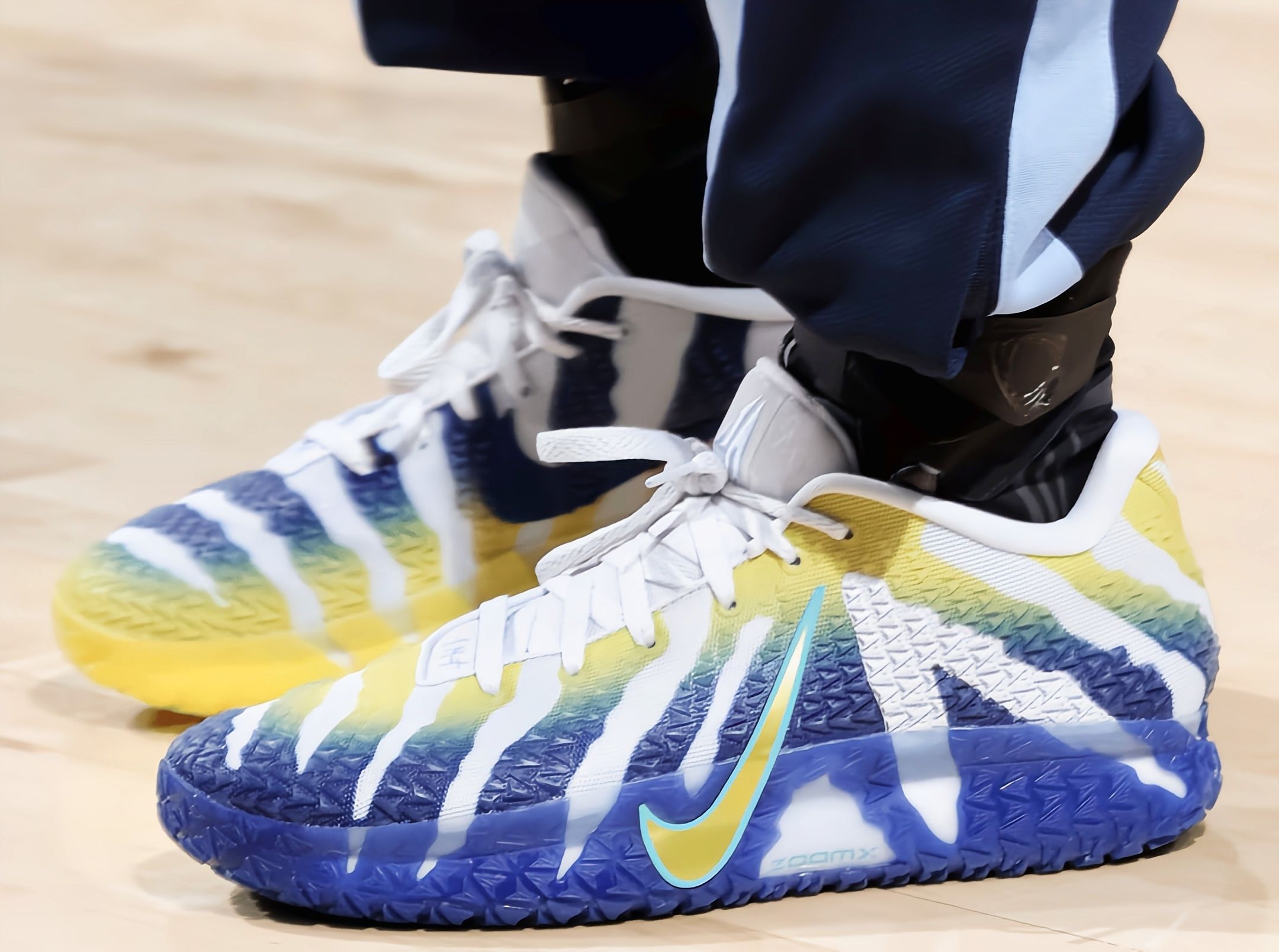 今天灰熊122-124惜败给老鹰,虽然输了比赛,但莫兰特这双鞋还是值得拿出来聊聊。 ✨ 鞋款故事 这双 Nike JA3 “Murray State University” 是莫兰特的第三代签名鞋。 它以他的母校莫瑞州立大学为灵感,蓝黄渐变的配色正是校队的标志性颜色。 鞋面的波浪纹路像极了大学时期球馆里的呐喊声,充满了对青春的致敬。 📊 赛场表现 今天莫兰特穿着它出战30分钟,交出...