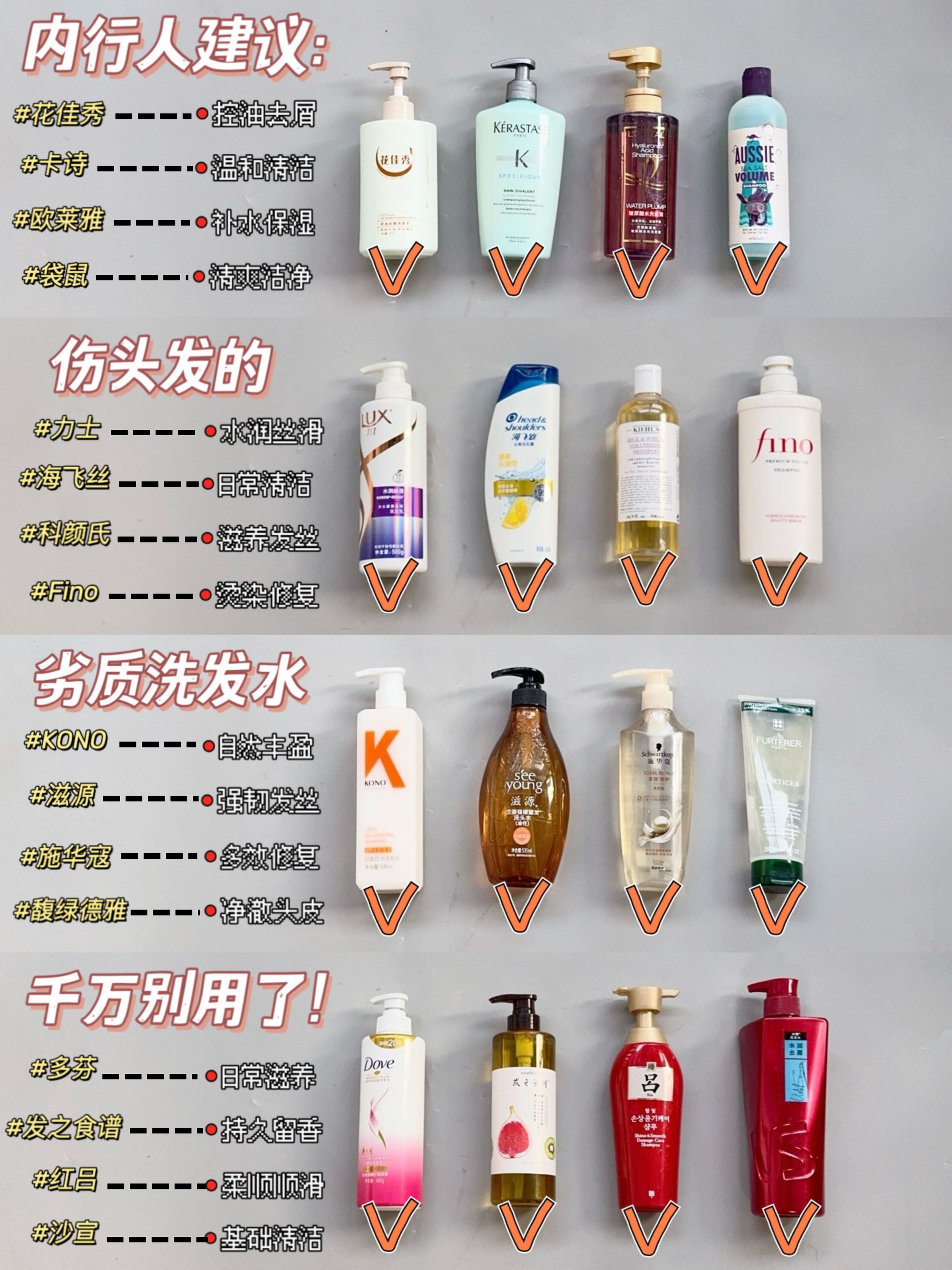 选洗发水这方面一定要做足功课,有的时候可能是洗发水没有选对,才导致头皮状况越来越糟糕 分享一下好用的洗发水给大家: 花佳秀洗发水 卡诗洗发水 科颜氏洗发水 欧莱雅洗发水 施华蔻洗发水