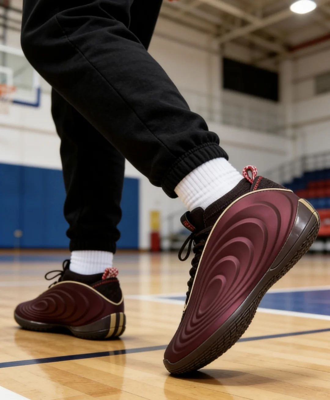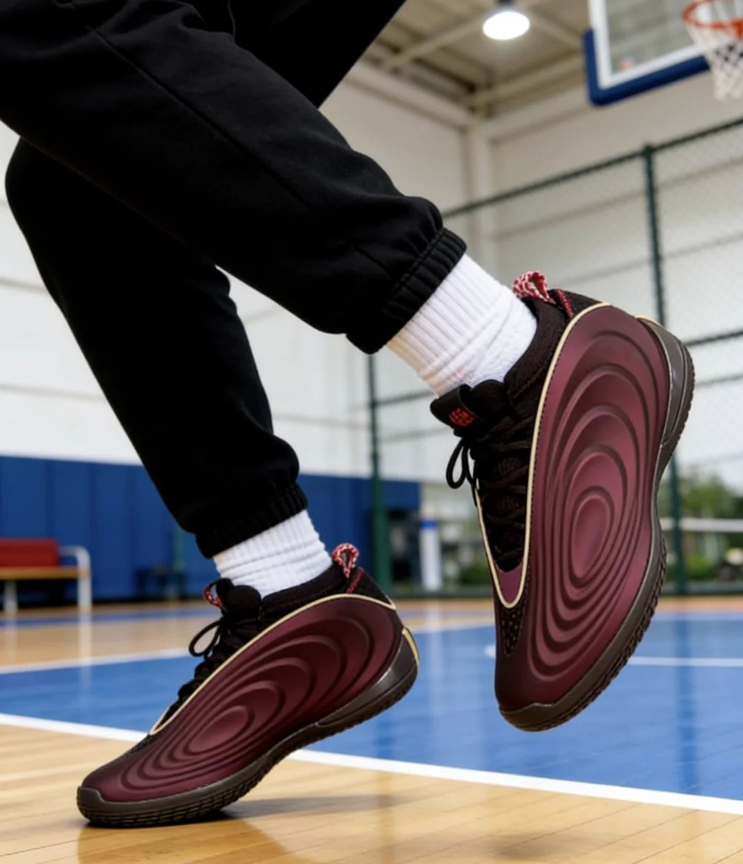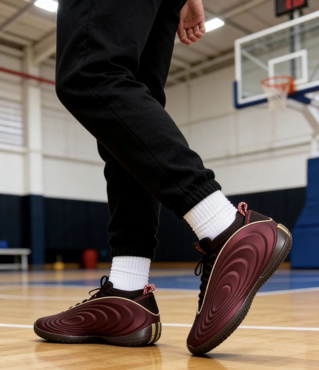 哈登10上脚是真舒服!一体成型的鞋面裹脚很稳,全掌缓震踩着韧弹,实战变向、起跳都不卸力。中足抗扭片给足支撑,外底纹路抓地也靠谱。