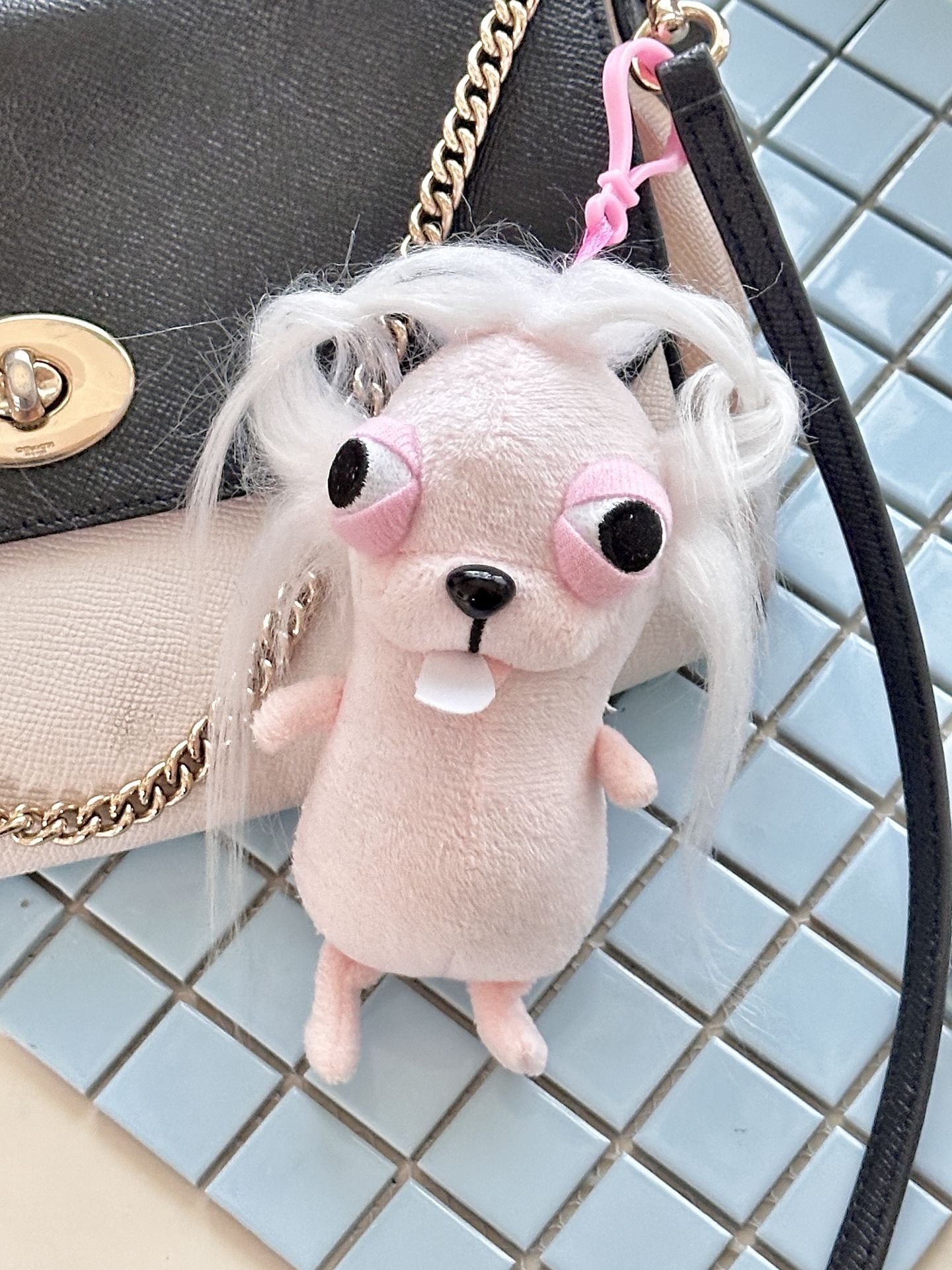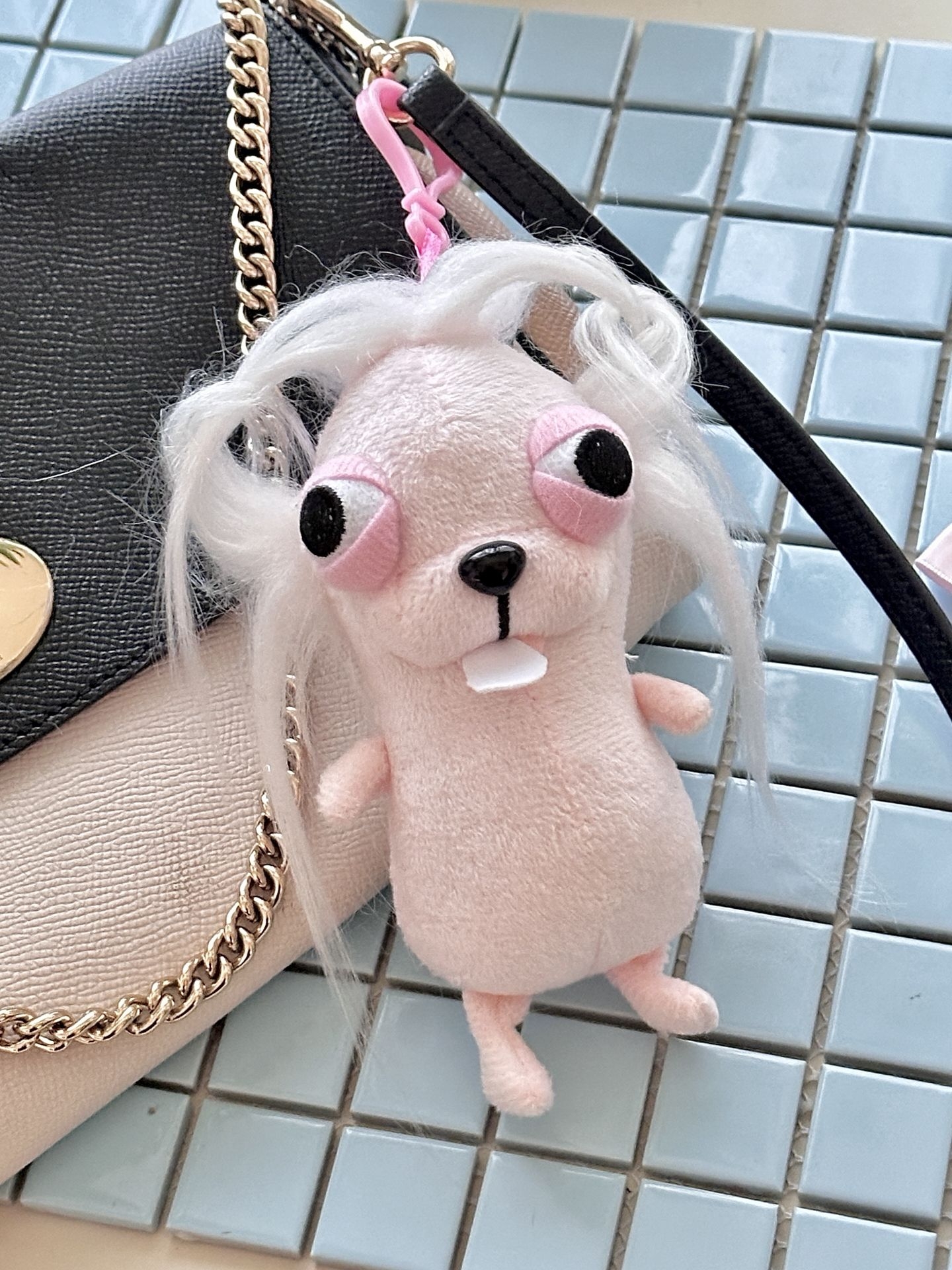 哈哈哈,是真的很丑吗? 我为什么觉得那么萌啊? 越看越觉得上头,这粉粉嫩嫩的 搭配这几根毛,有一种熬了一周通宵的精神感 而且这头发的可塑性也太强了吧 我随便怎么rua都是一个造型 七夕把它弄成这样给男票 一定是一个小惊喜叭,哈哈哈哈哈哈 #送给玩具收割机 #分享我的宝藏玩偶小挂件 #不可爱的挂件我不买 #七夕超实用的礼物 #可爱包包挂饰