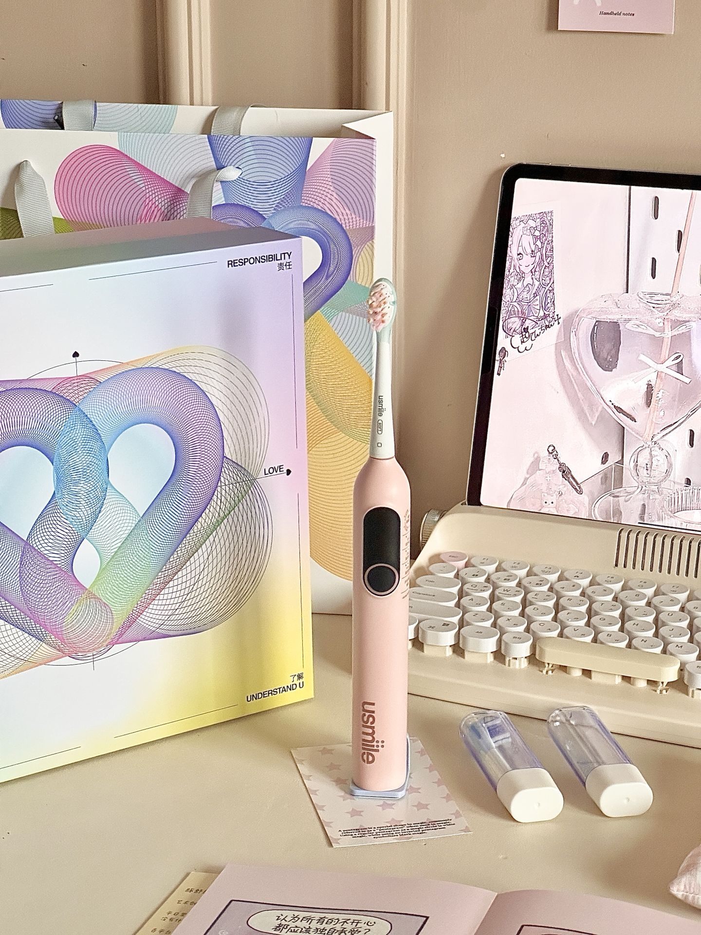 快看让我牙齿刷白白的好登西 没戳,就是usmile的P20PRO电动牙刷 像我一样牙黄的一定要试试它呀 我很喜欢他的刷毛软软的,又很有支撑 每天用它,都像给牙齿做一个深度spa 呵护,清洁,强效,还有两支替换刷头 我觉得它的礼盒也好多巴胺啊 4 in love 实用又浪漫 我感觉自用或者七夕当作小礼物都不错呀 #生日礼物女生走心 #女孩子无法拒绝的生日礼物 #让TA心动的得物专供usmile礼盒 ...