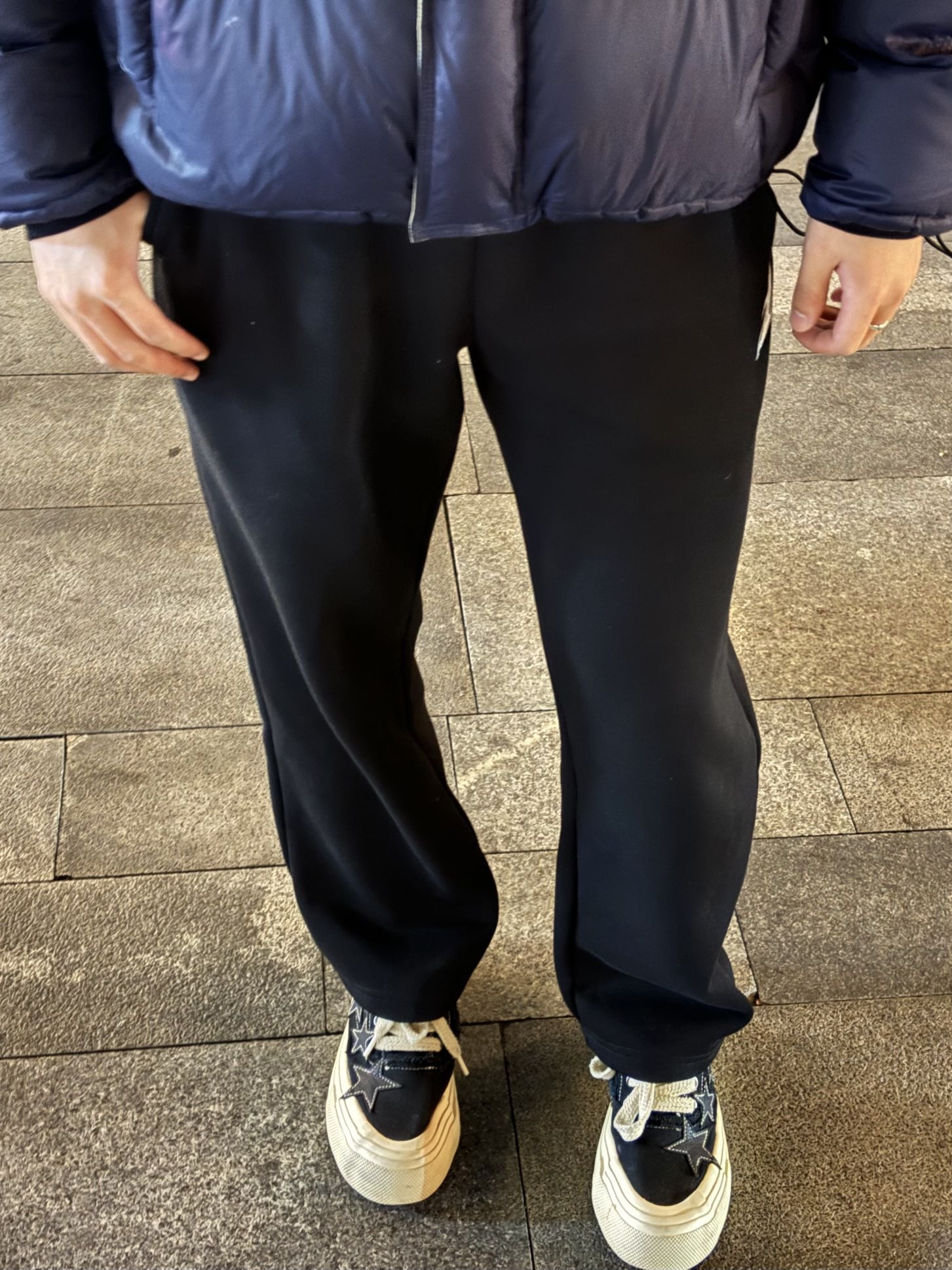 这条#有志者UZIS 的加绒卫裤,让我冬天不用穿秋裤也够了!!! 我平时习惯穿运动休闲风,杭州的冬天,单穿这条内侧加绒的裤子完全没问题,厚度刚好。面料是带点挺括感的双面平纹,内里绒很软,贴身穿不扎。🥰 直筒宽松的版型垂感很好,确实能修饰腿型。随便搭配一个羽绒服都很协调,出门直接简单一套就行,不用多想~懒人穿搭就看它!👀 尺码参考:178/135 XL 宽松一些