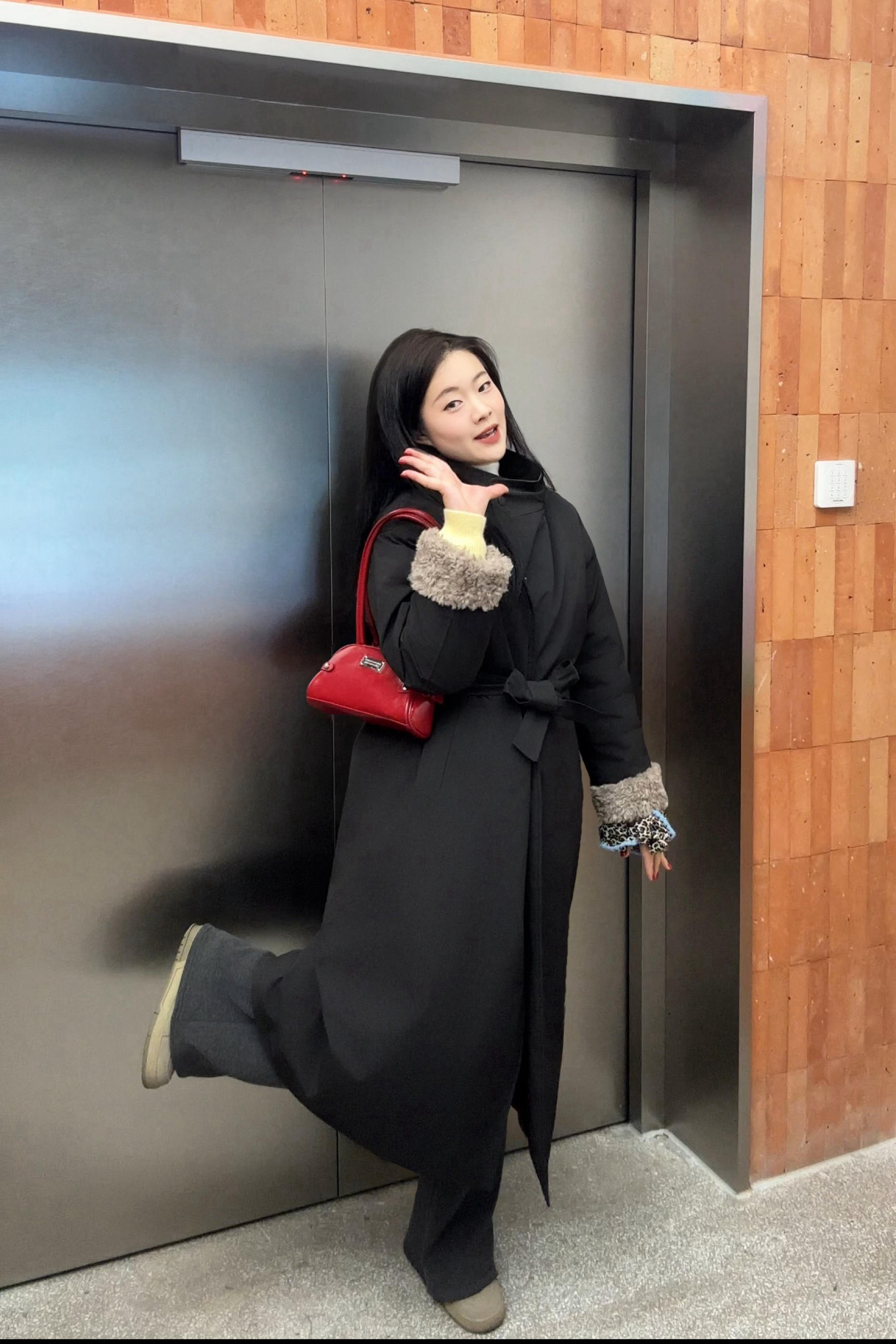 台上优雅,台下抽象~柚子活人感好强 假两件连衣裙将衬衫领与黑色裙身巧妙融合,既保留了衬衫的利落感,又拥有百褶裙摆的柔美感。简约配色自带高级滤镜,搭配同品牌手袋与高跟鞋,细节处尽显精致,妥妥的豪门晚宴既视感,把富家千金的氛围感焊在了身上✨