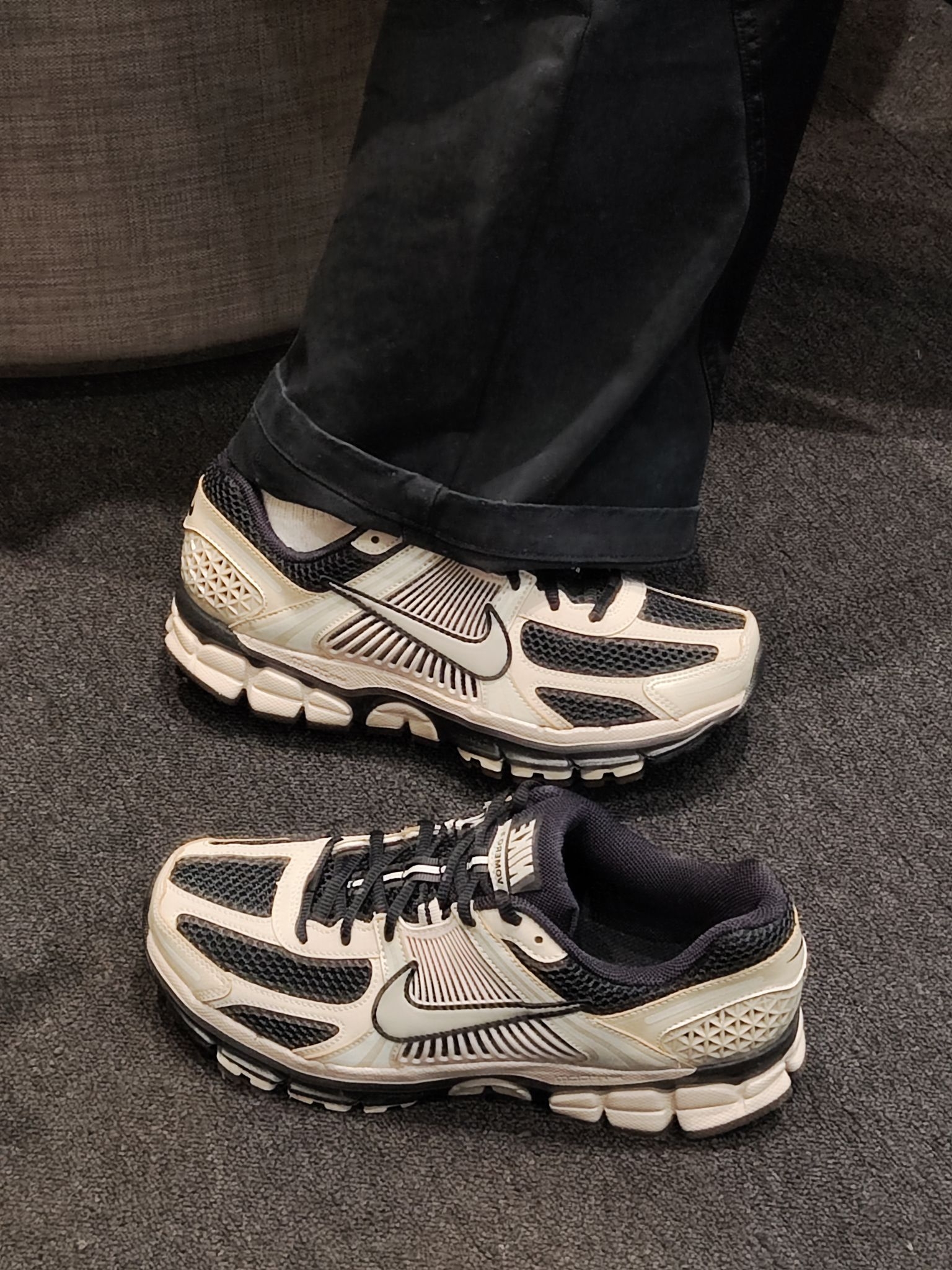 网眼+皮革拼接的复古跑鞋造型,做旧米白配酷黑,自带一种vintage做旧感,不管是搭阔腿裤还是运动裤都能穿出松弛的复古氛围感。 ✅ 脚感惊喜 Zoom Air气垫+缓震中底,走一天路都不累,日常通勤和周末出街都能打,完全是颜值和舒适度双在线的选手。 ✅ 百搭公式 我最近的出门标配就是:做旧牛仔裤+短款上衣+这双鞋,美式复古味儿直接拉满