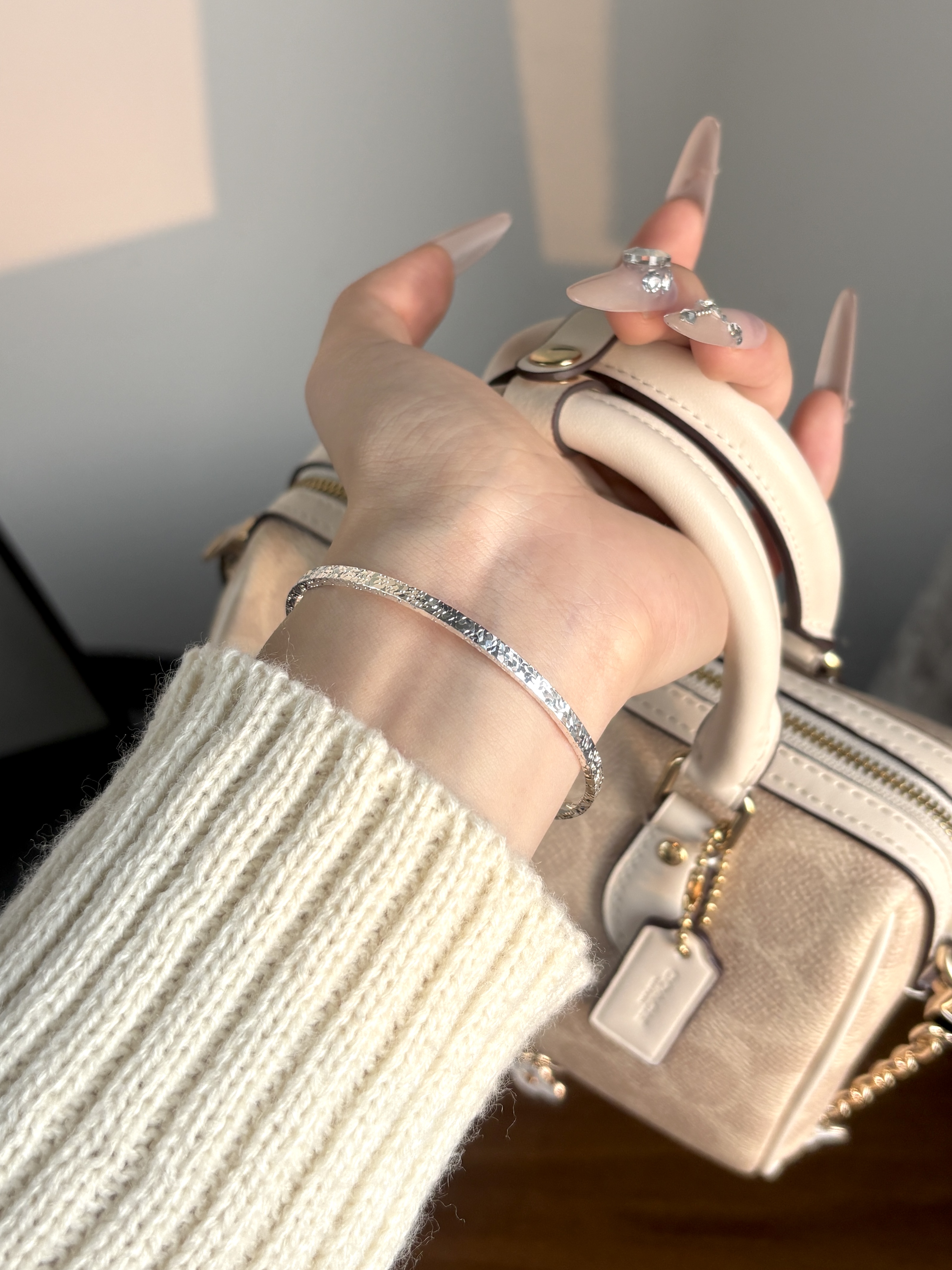 是谁还没有碎冰冰手镯呀 bilngbilng直接闪到我心巴上了 实物尊嘟好有质感啊 简约的设计 看起来很高级! 戴上手显得肤色白皙 冬天搭配针织衫或者毛衣 手袖露出来就有点小精致🤩 整体我觉得是比较百搭且不挑人的~ 日常或者约会戴都hin适配哦 #年度配饰大盘点 #双旦饰品送礼攻略 #见证爱的瞬间 #年底约会配饰穿搭小技巧 #分享我的新年饰品