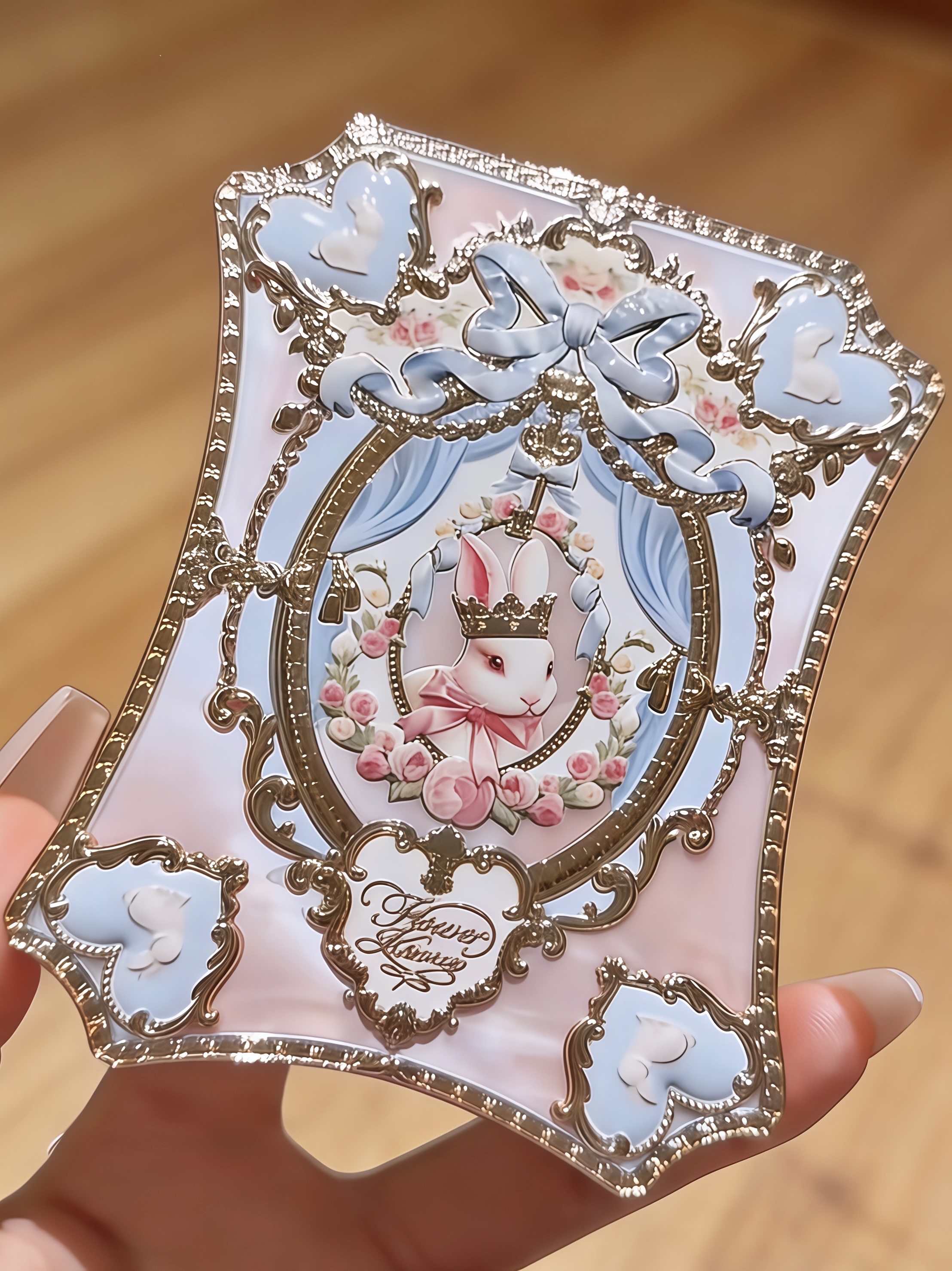 花知晓邦尼花园眼影盘颜值属实美到我了 外壳是带着精致的兔兔浮雕洛可可风 我用03红草莓它画了这个温柔粉色系眼妆 先用膨胀粉铺满整个眼窝 再用粉色加深眼尾 叠一层缎光色提亮卧蚕 眼睛温柔又灵动 它粉质软糯不飞粉 日常通勤或约会都能用
