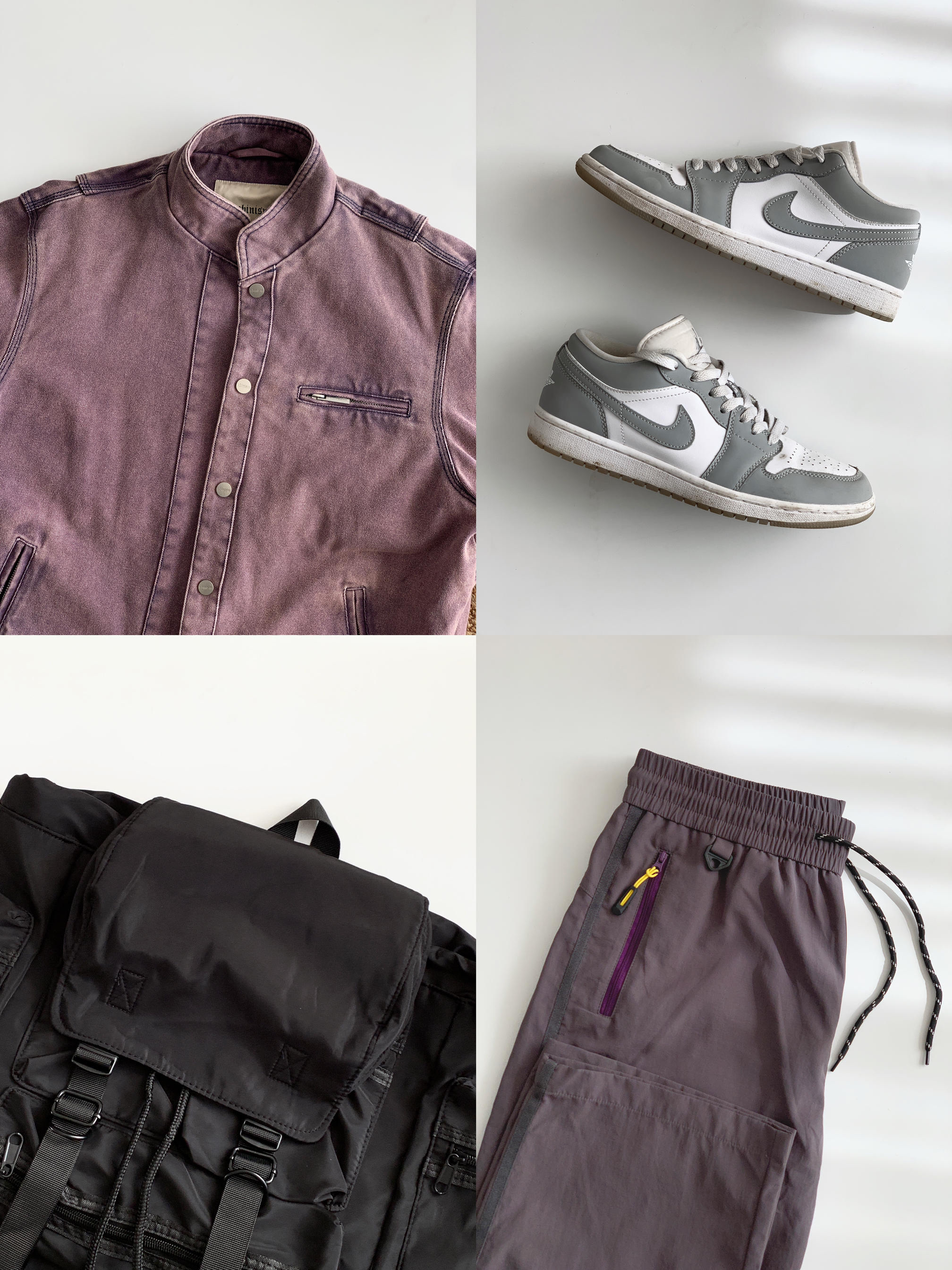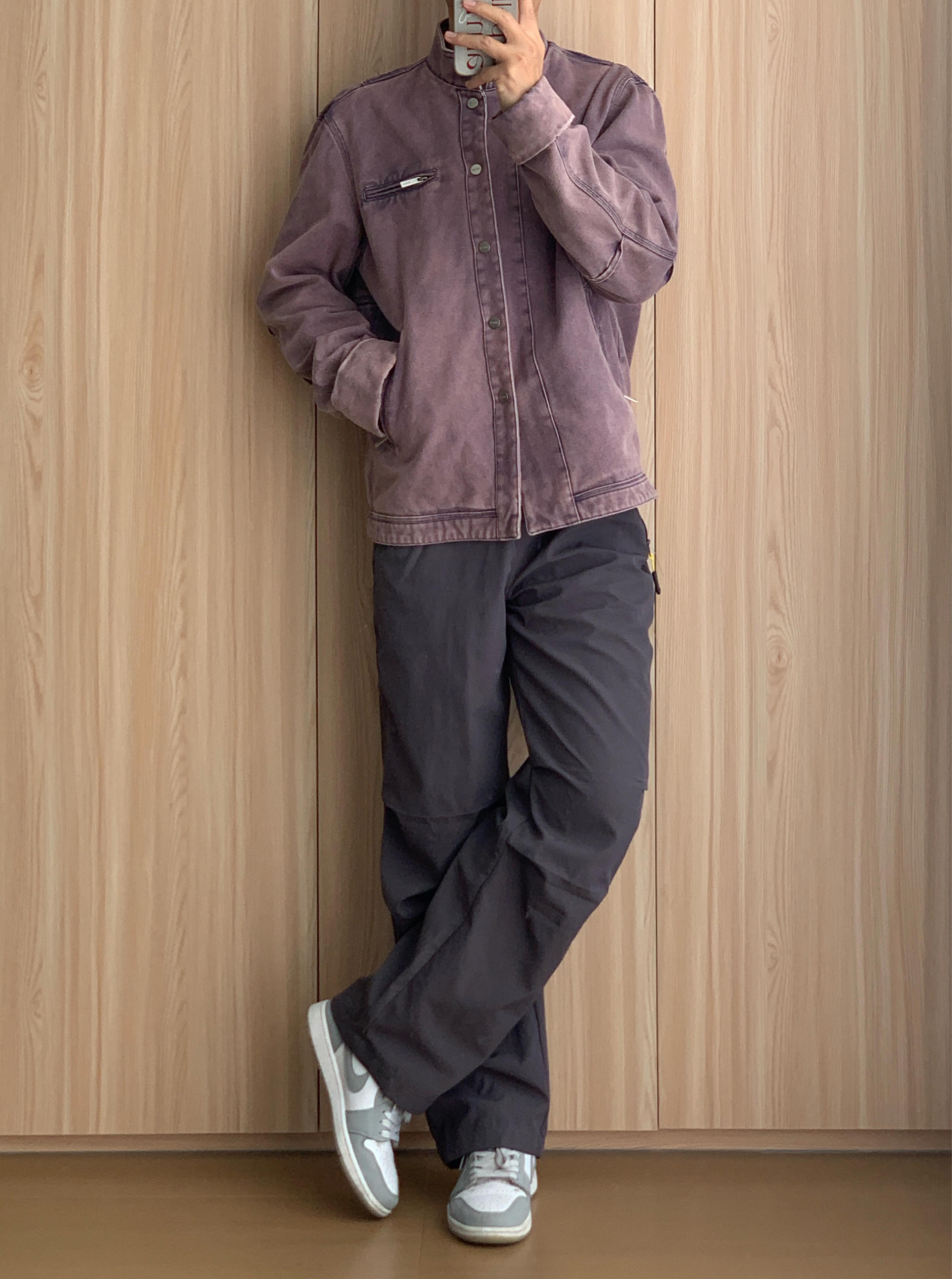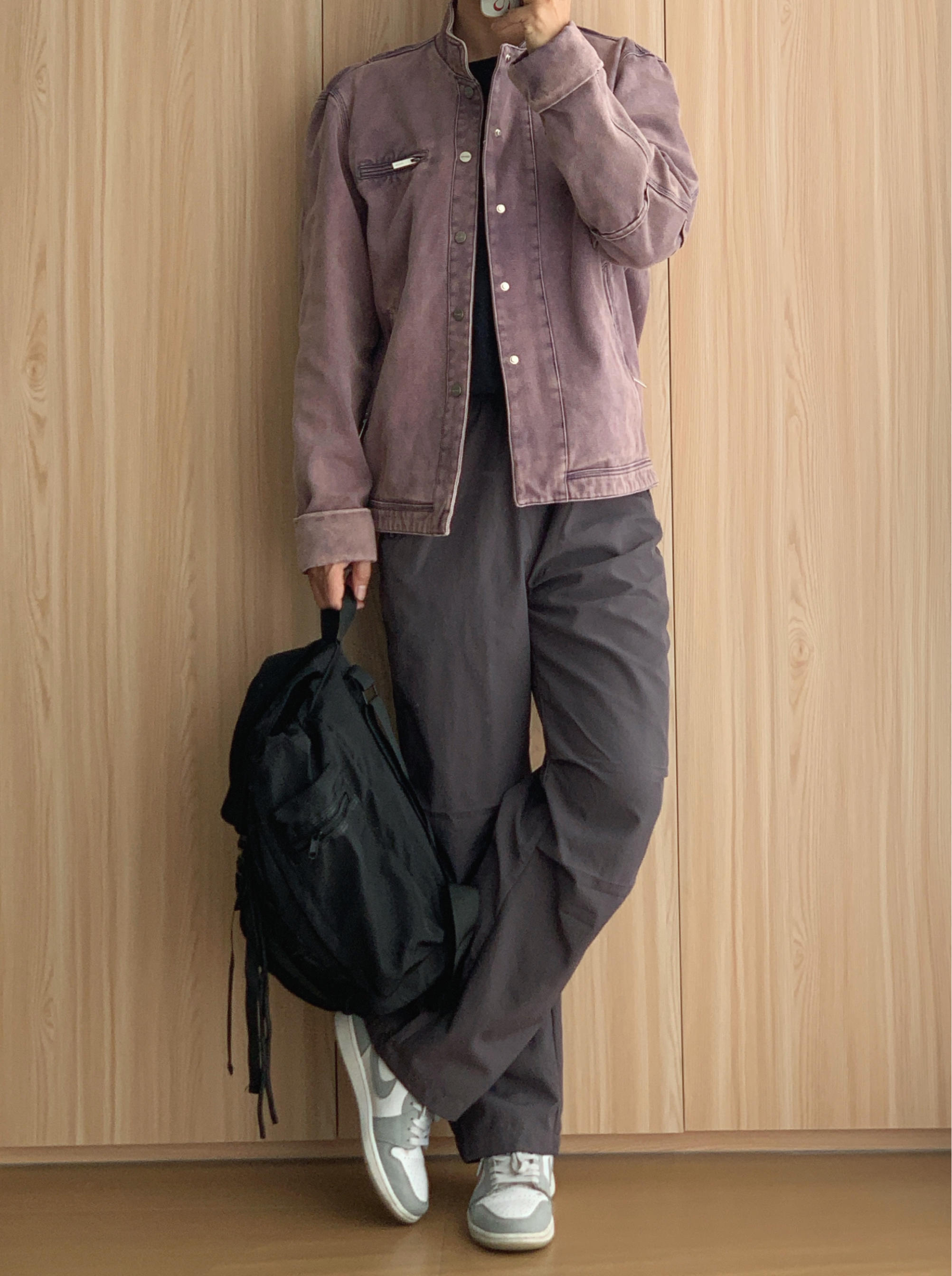 快乐逛街 开心饮咖☕ 🤳🏻OOTD 👨🏻💻175cm|70kg|42码 ▪️紫色牛仔夹克 ▪️深灰色伞兵裤 ▪️灰白aj1板鞋 ▪️黑色机能双肩包 🙅🏻♂️个人观点,不喜勿喷,欢迎指点🙏🏻