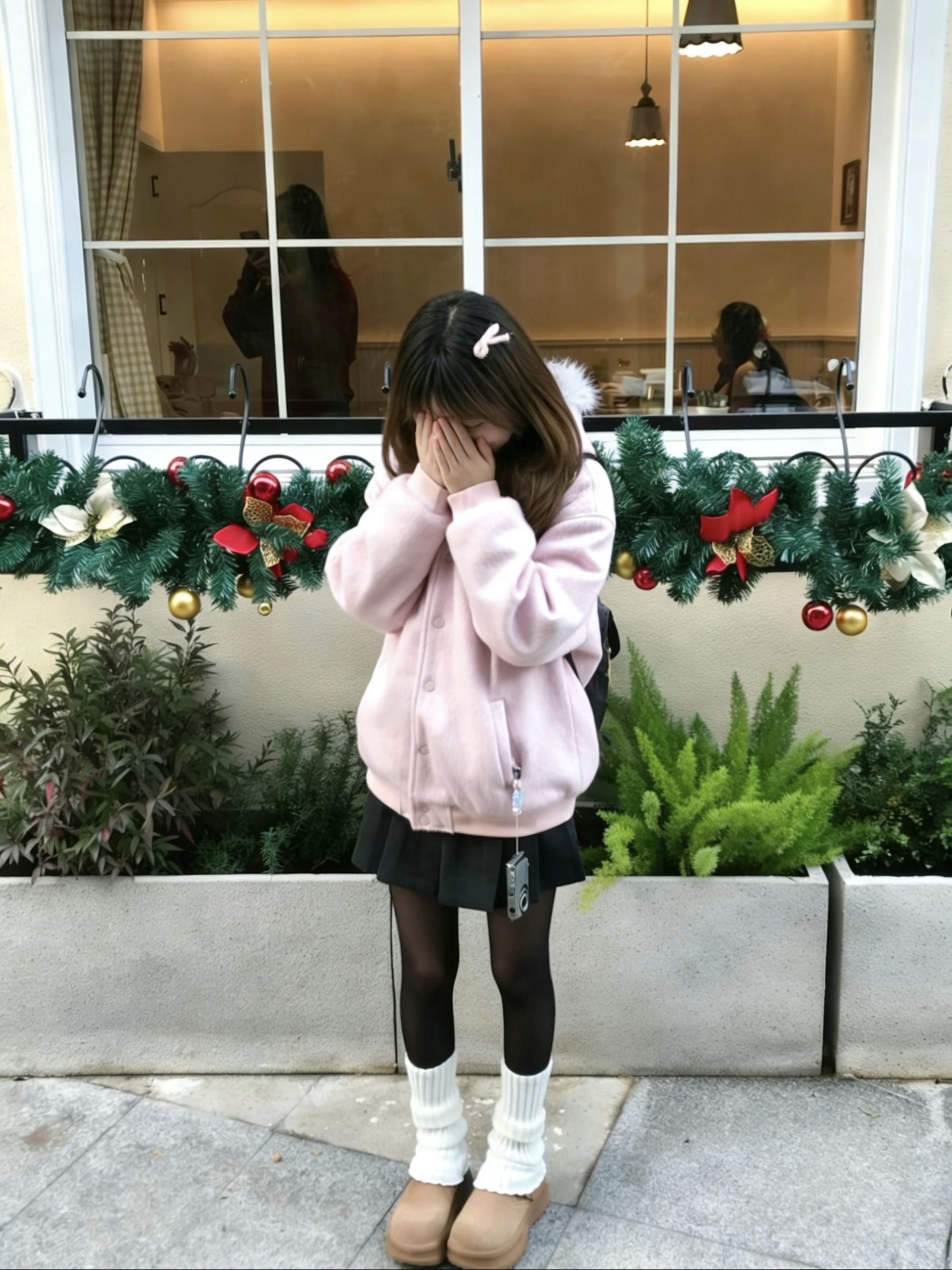 🔥 被问爆的一套! 粉+黑+白的配色真的太乖了,软乎乎的外套裹着超有安全感,黑丝配堆堆袜把纯欲感拿捏得死死的。 谁穿谁是韩剧女主,小个子也能驾驭!