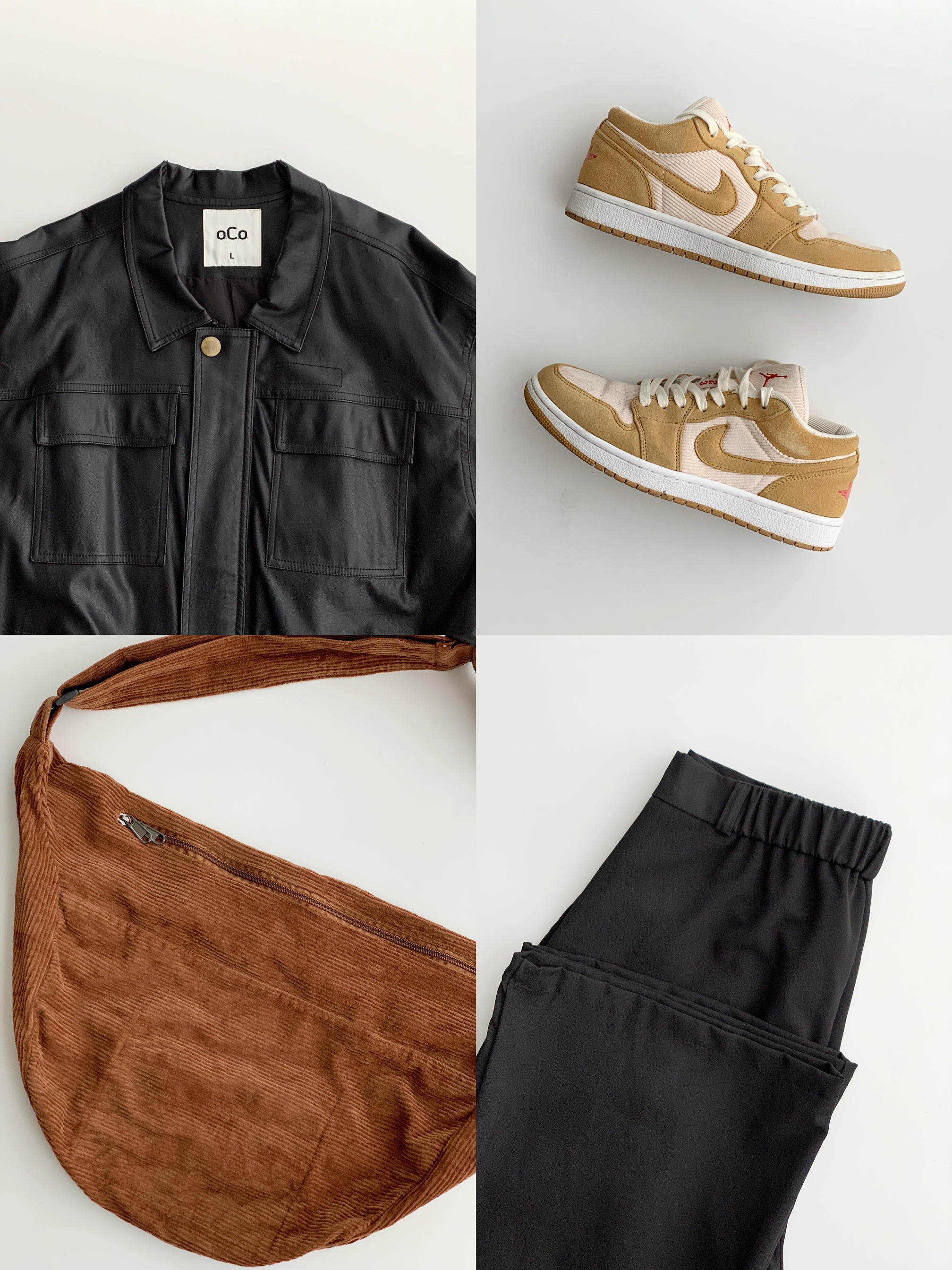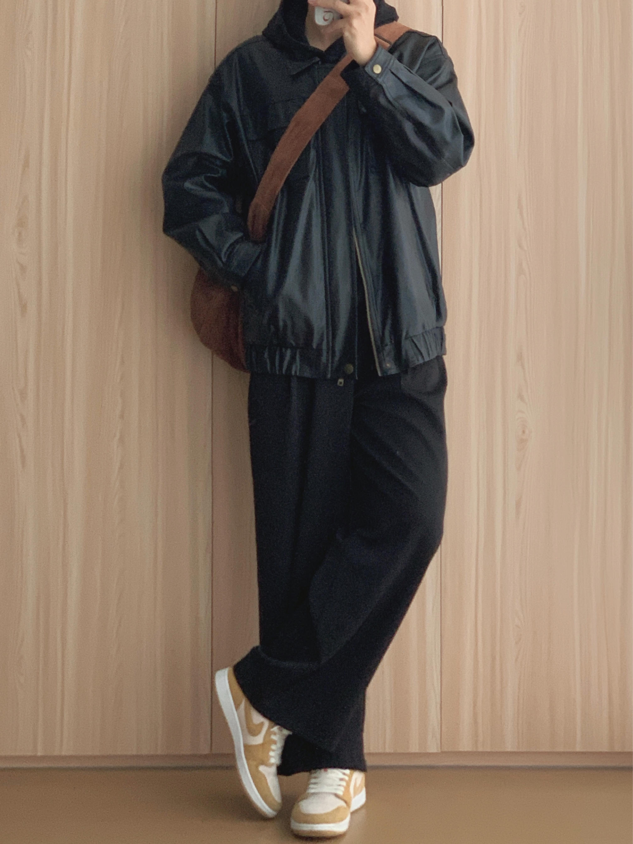 翻出压箱底的陈年皮夹克 叠个卫衣让自己假装很年轻~ all black简单通勤不费力 🤳🏻OOTD 👨🏻💻175cm|70kg|42码 ▪️水洗灰棒球帽 ▪️黑色卫衣叠穿黑色皮衣 ▪️黑色阔腿裤宽松舒适 ▪️姜黄aj1灯芯绒球鞋点亮一身黑 ▪️咖色灯芯绒斜挎包呼应鞋子 🙅🏻♂️个人观点,不喜勿喷,欢迎指点🙏🏻