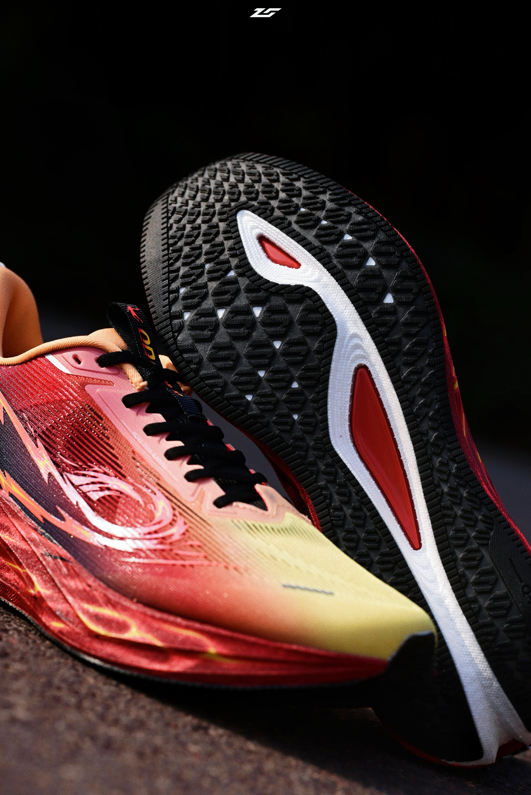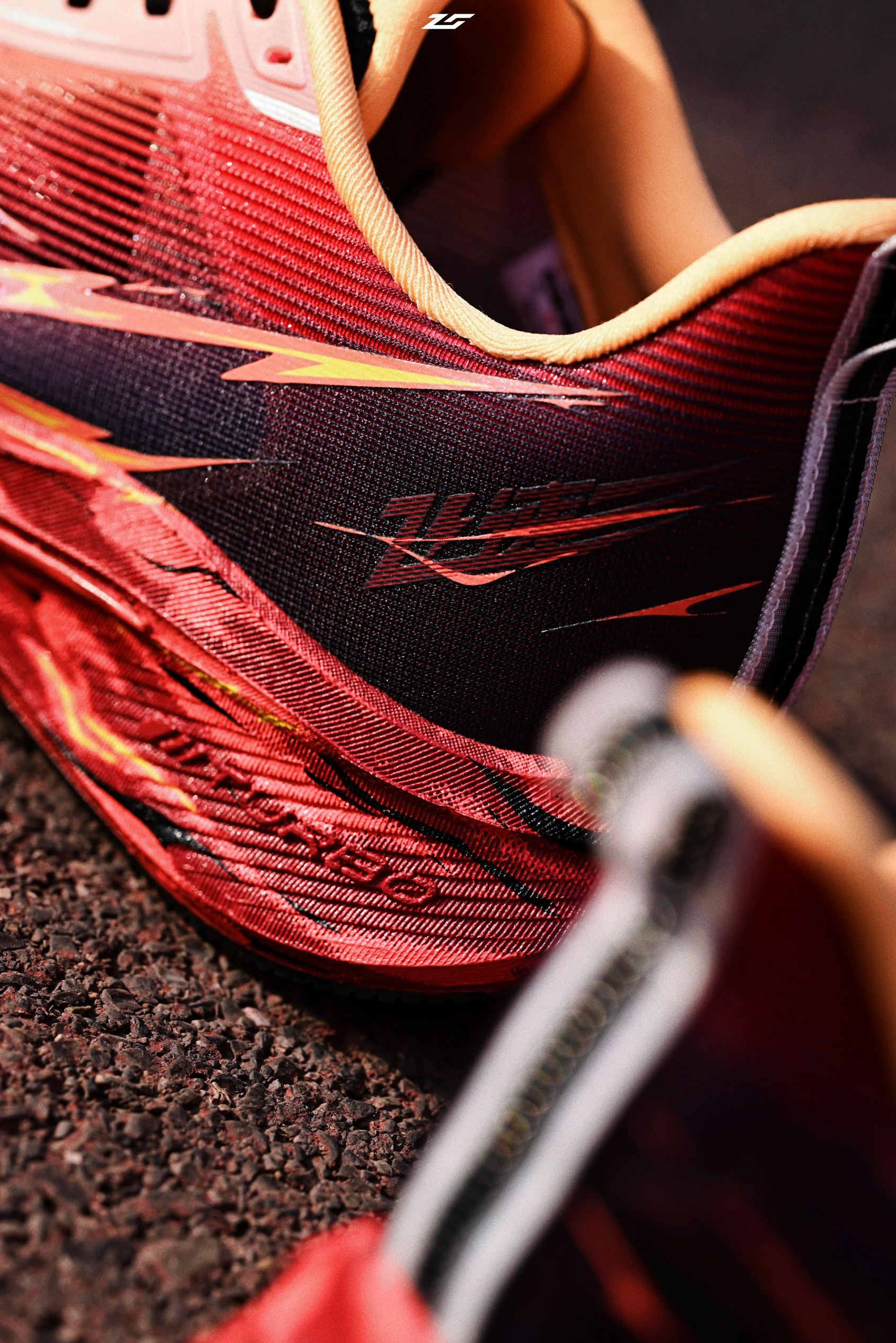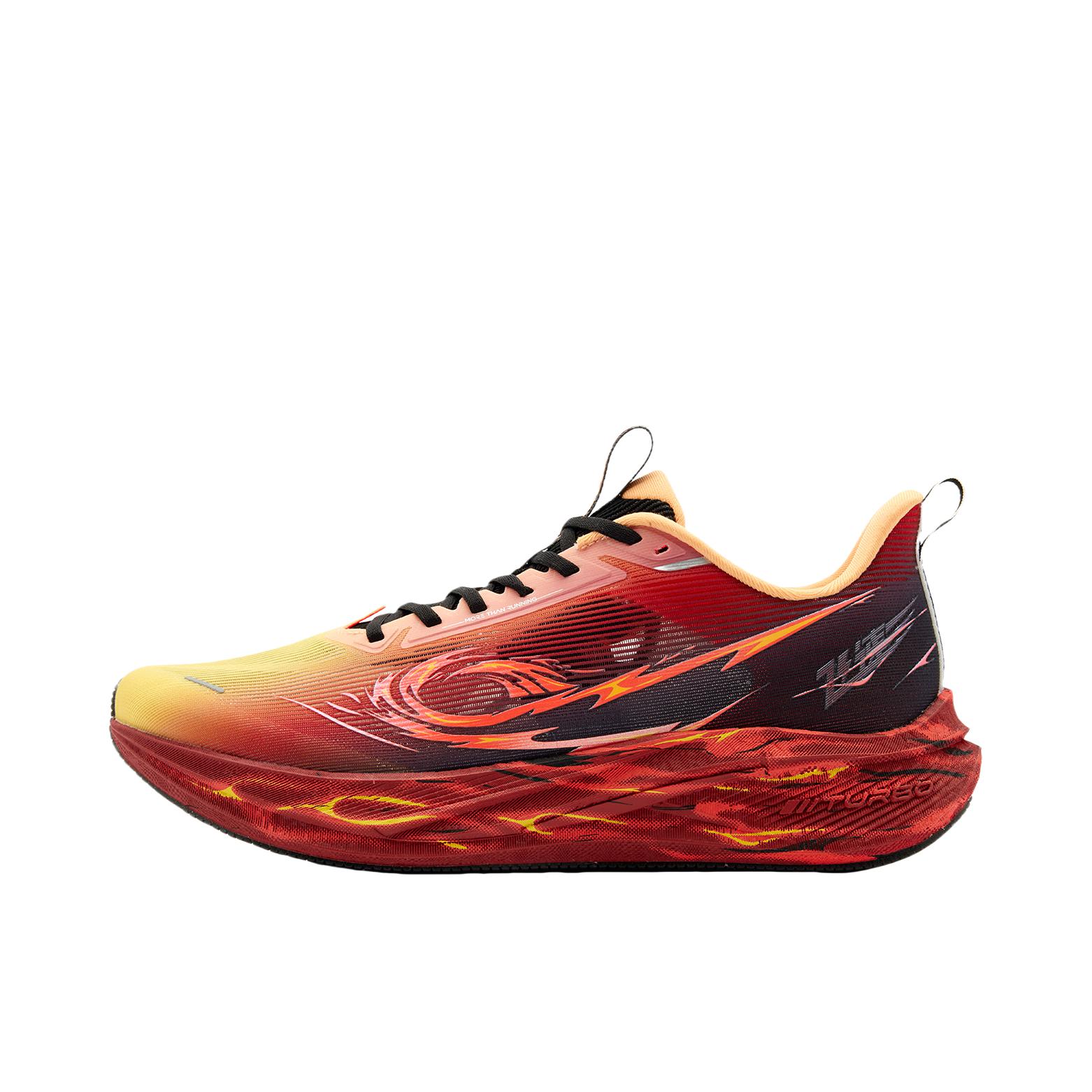 第二双飞速4配色有点意思,通体火红色涂绘,如同迸发的火山烈焰,视觉效果很是炸裂,Q标还是涂鸦风格,带点二次元的感觉,给人一种仿佛它是一双热血动漫周边的感觉。 定位万金油综训鞋,中底巭TUBRO,内置异形TPU稳定支撑,驾驭门槛基本是入门级别,对各种人群都很友好,很适合日常训练甚至是通勤。