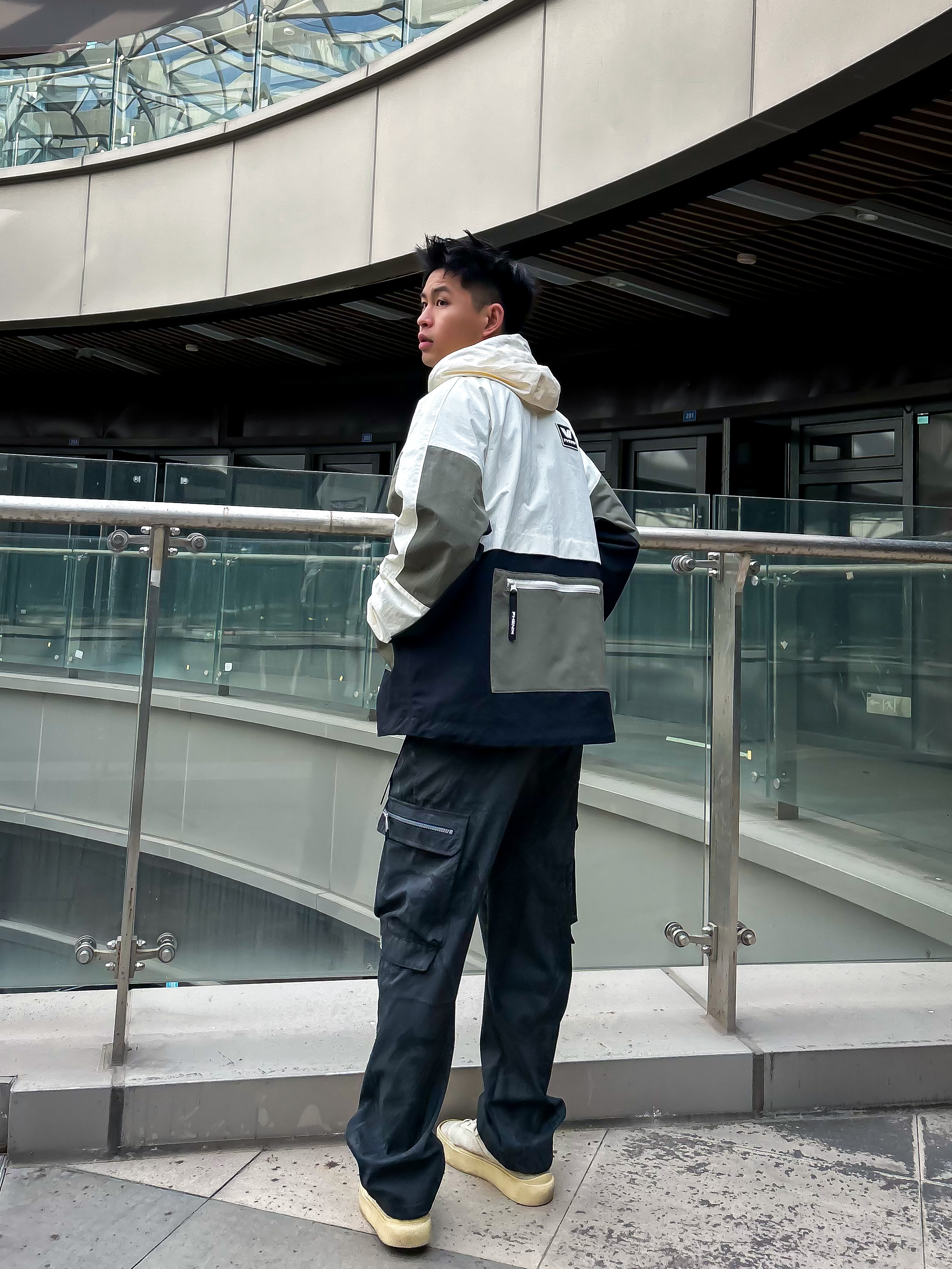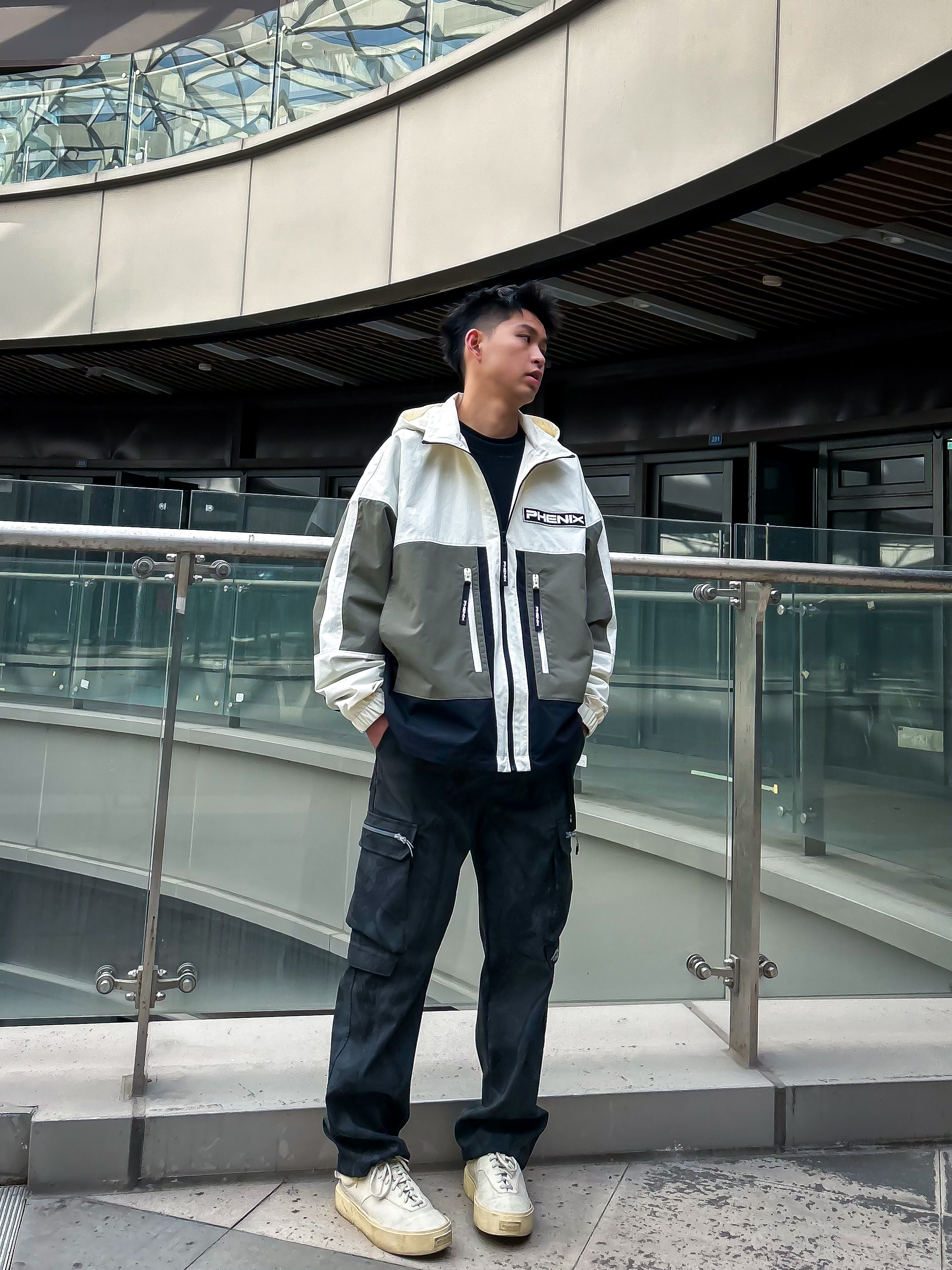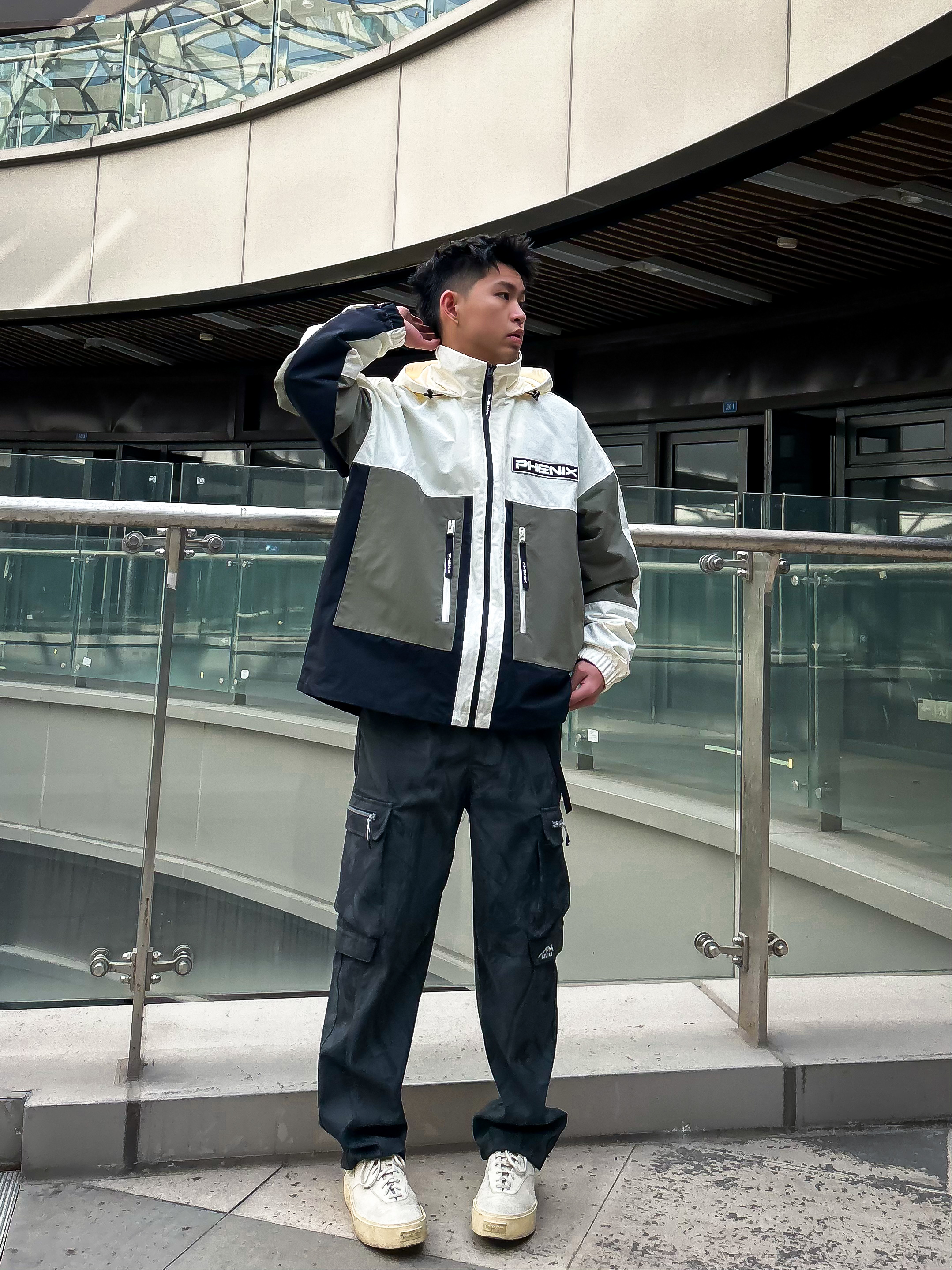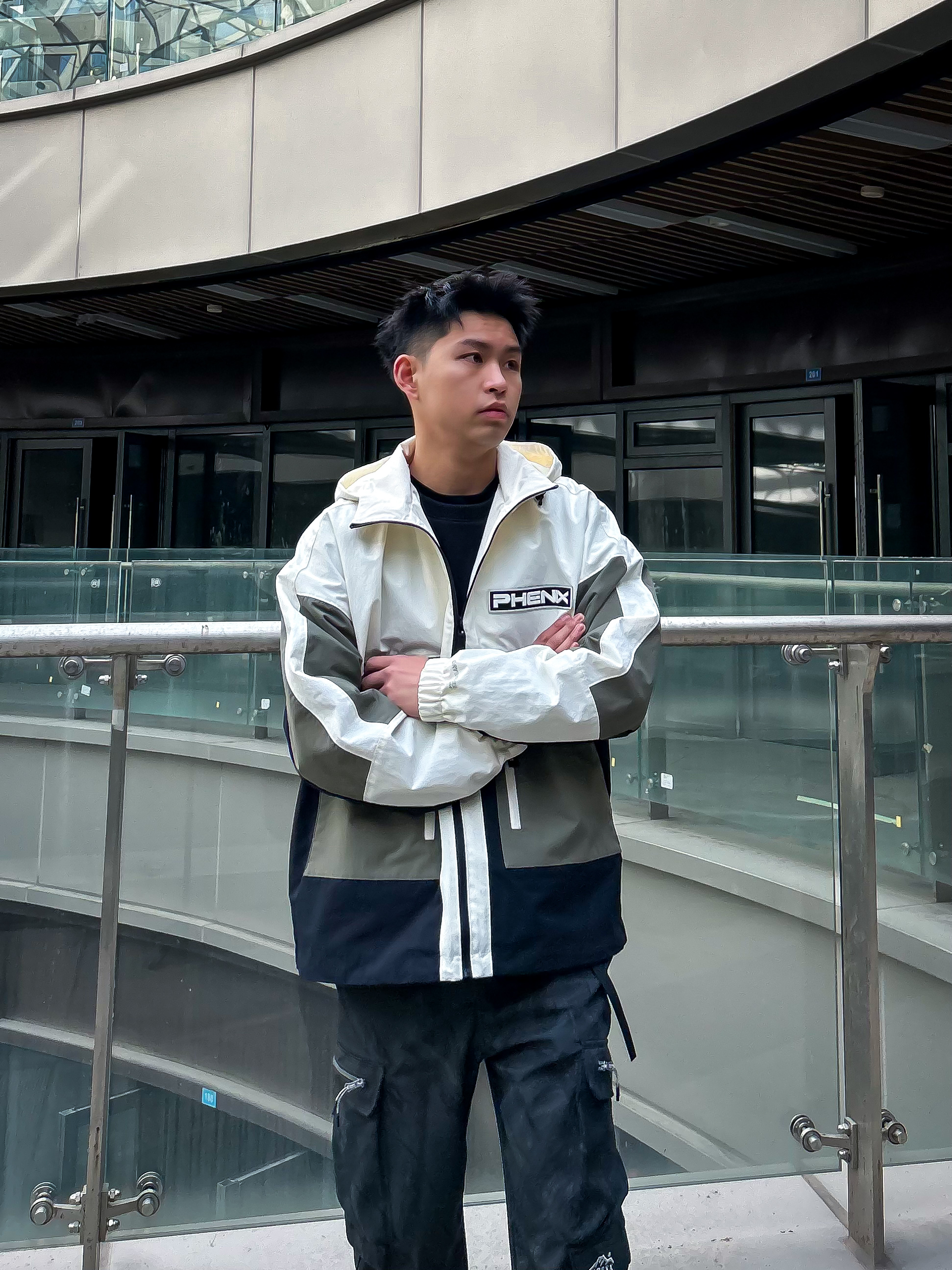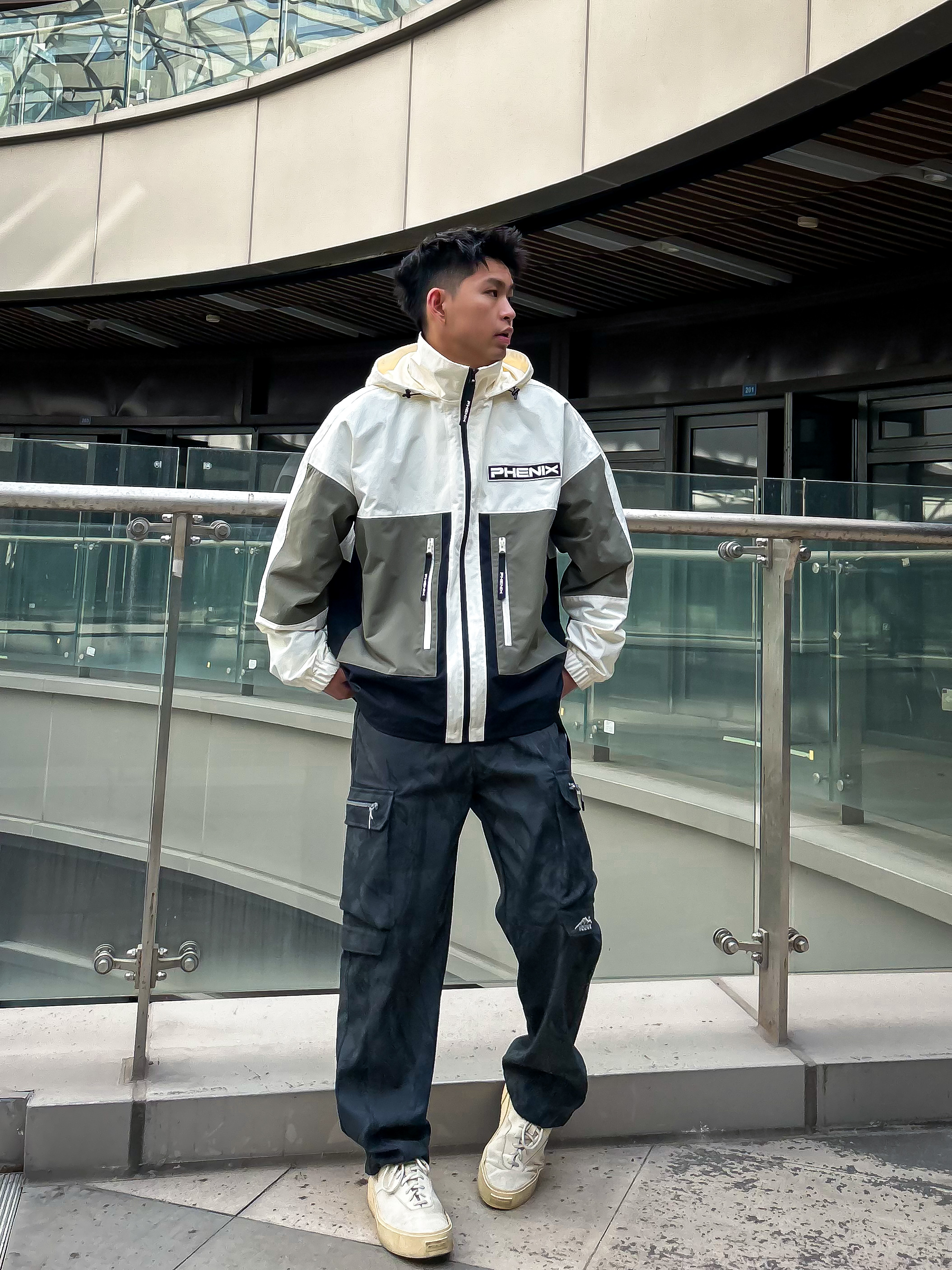 哈咯,这里是卢_SG 冬日机能风运动穿搭! 上身选了件 phenix 拼色连帽冲锋衣 胸前logo+后背口袋的设计细节拉满 撞色拼接自带视觉层次感 宽松版型不挑身材 连帽设计兼顾实用性与潮流感 日常出街或运动穿都帅气~ 🙋🏻:178|68kg 👔:XL 下身搭了条黑色多口袋工装裤 复古机能感直接拉满! 中和冲锋衣的宽松!