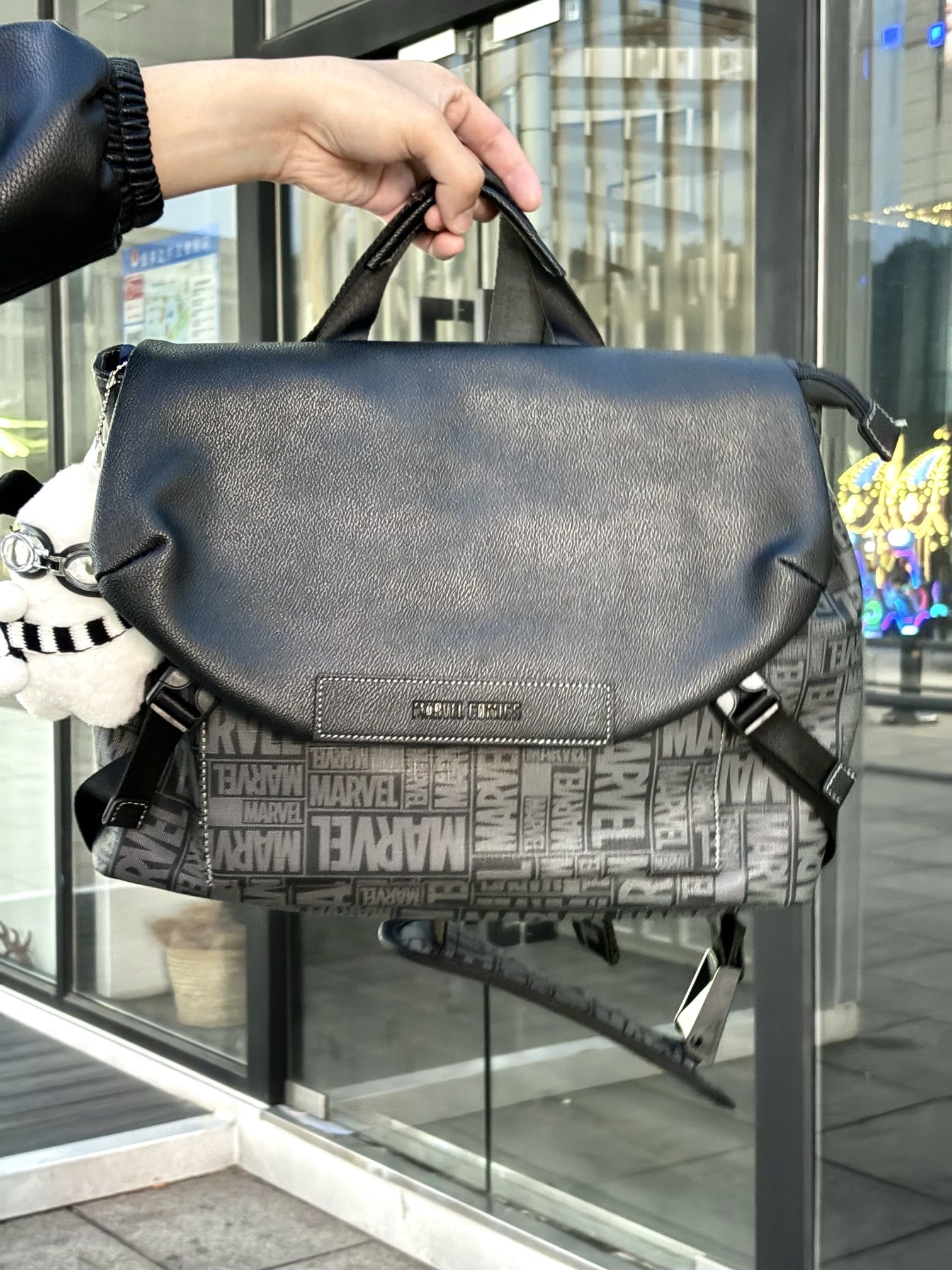 真的被这个漫威联名包香到了!纯黑底色铺满超级英雄元素,但一点不花哨,反而百搭又低调,日常背完全不挑衣服。 容量太感人了!笔记本电脑、课本、充电宝,甚至一件薄外套都能轻松塞进去。内部分层合理,还有磁吸扣口袋,零碎小物再也不怕乱跑。 PVC面料防水耐造,下雨天也不慌。肩带能调节,单肩斜挎都舒服,背一天肩膀也不累。绝对是早秋出门解放双手的神器!