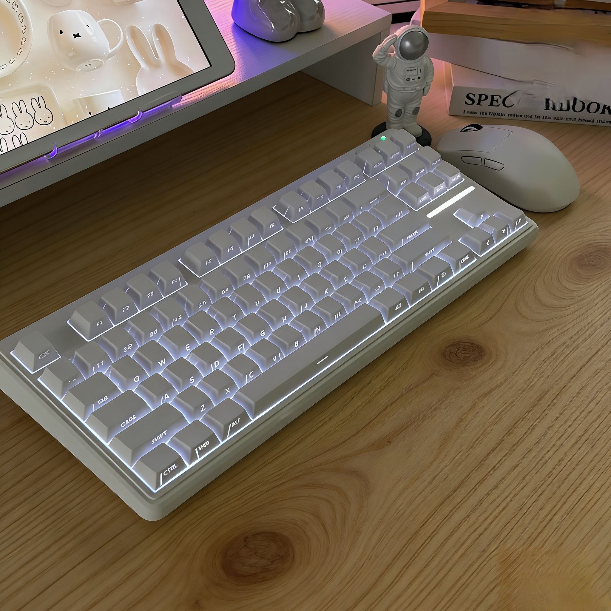 颜值党狂喜:等高线侧刻透光键帽,RGB灯效流光溢彩,白天是干净治愈的奶白质感,夜晚是氛围感拉满的光影美学,拍照发圈直接封神。 手感党满足:柔软回弹的薄膜结构,打字安静不吵人,长时间办公、肝游戏都不累,兼顾静音与舒适。 细节控福音:87键紧凑布局,不占桌面空间,有线连接稳定无延迟,即插即用,小白也能轻松上手。 🎮 谁适合它? ✅ 学生党|宿舍深夜码字不打扰室友 ✅ 打工人|办公游戏一键...