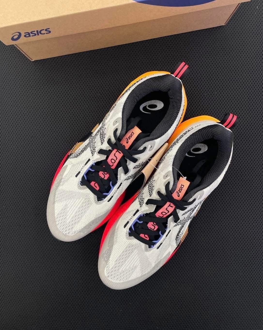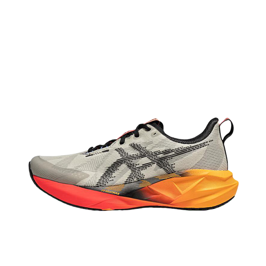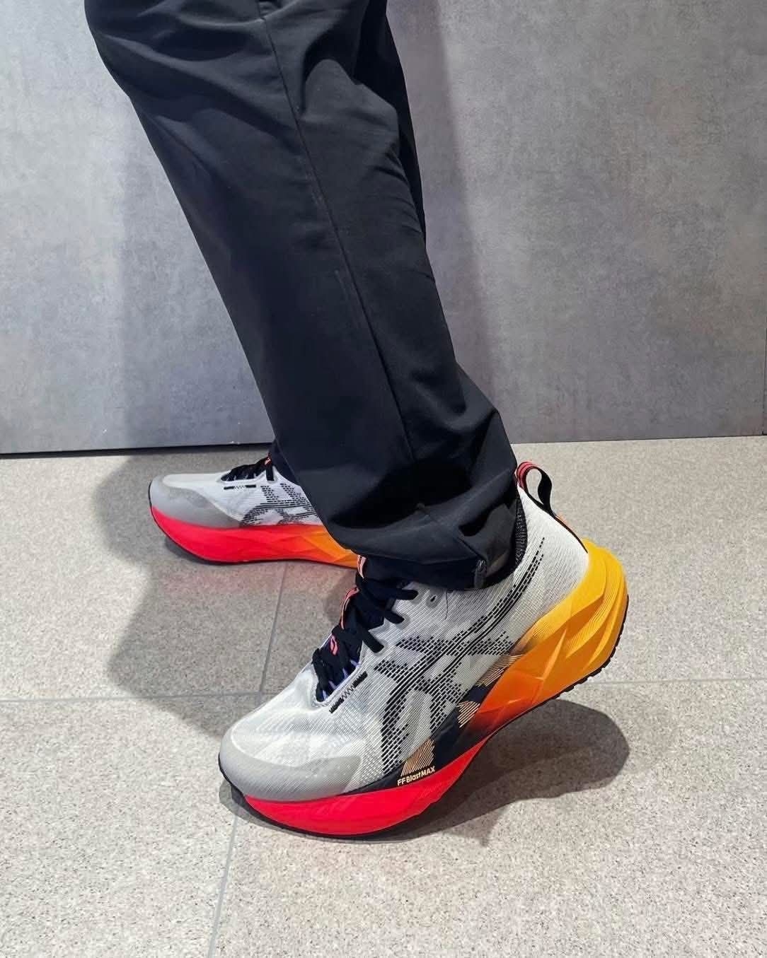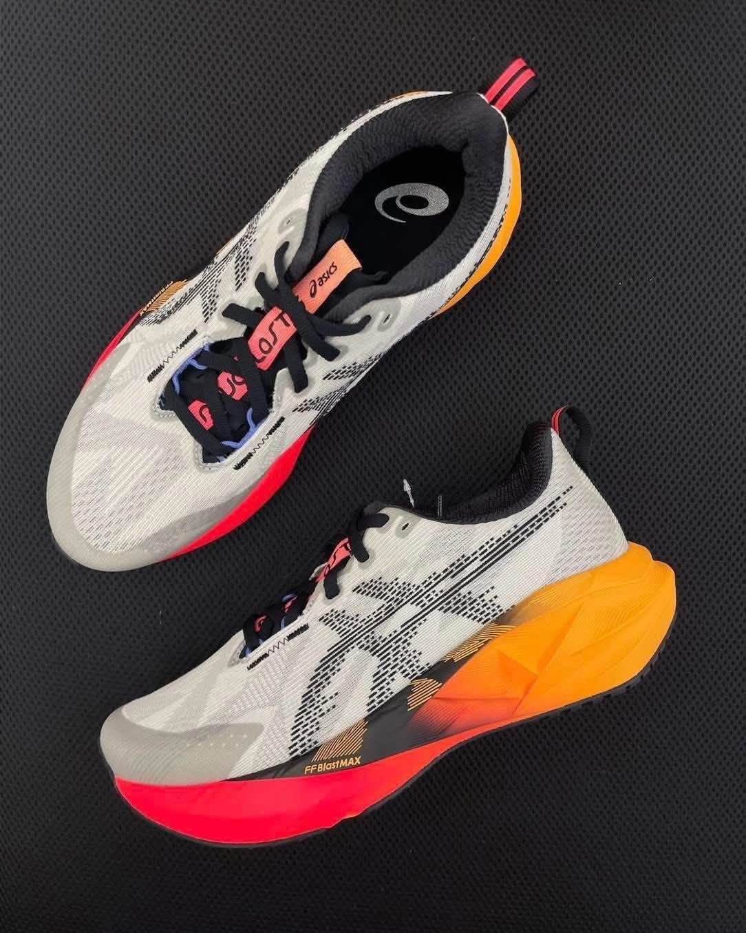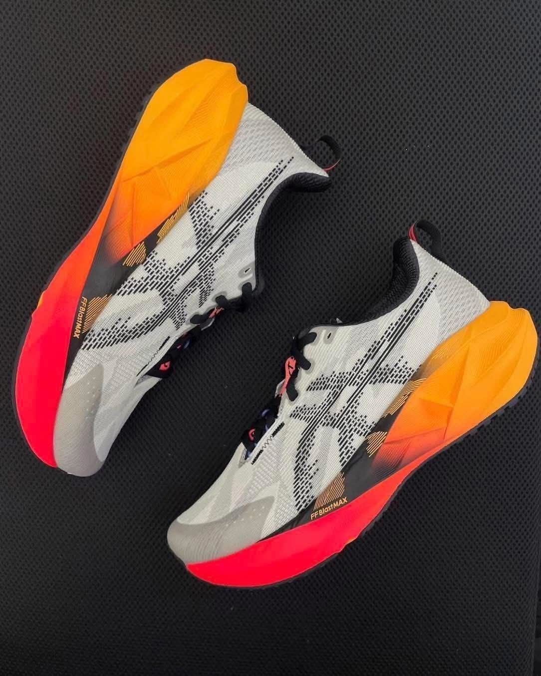 ASICS NOVABLAST 5 CP 灰橙撞色款来啦! 灰黑迷彩鞋面搭配橙红渐变中底,把机能风和活力感直接拉满,颜值性能双在线。 FF BLAST MAX高能量回弹泡棉中底,缓震回弹表现出色,5-10公里长距离后依然舒适。 步伐轻盈稳定,日常跑步训练轻松驾驭,搭配运动装或休闲裤都好看,运动出街无缝切换!