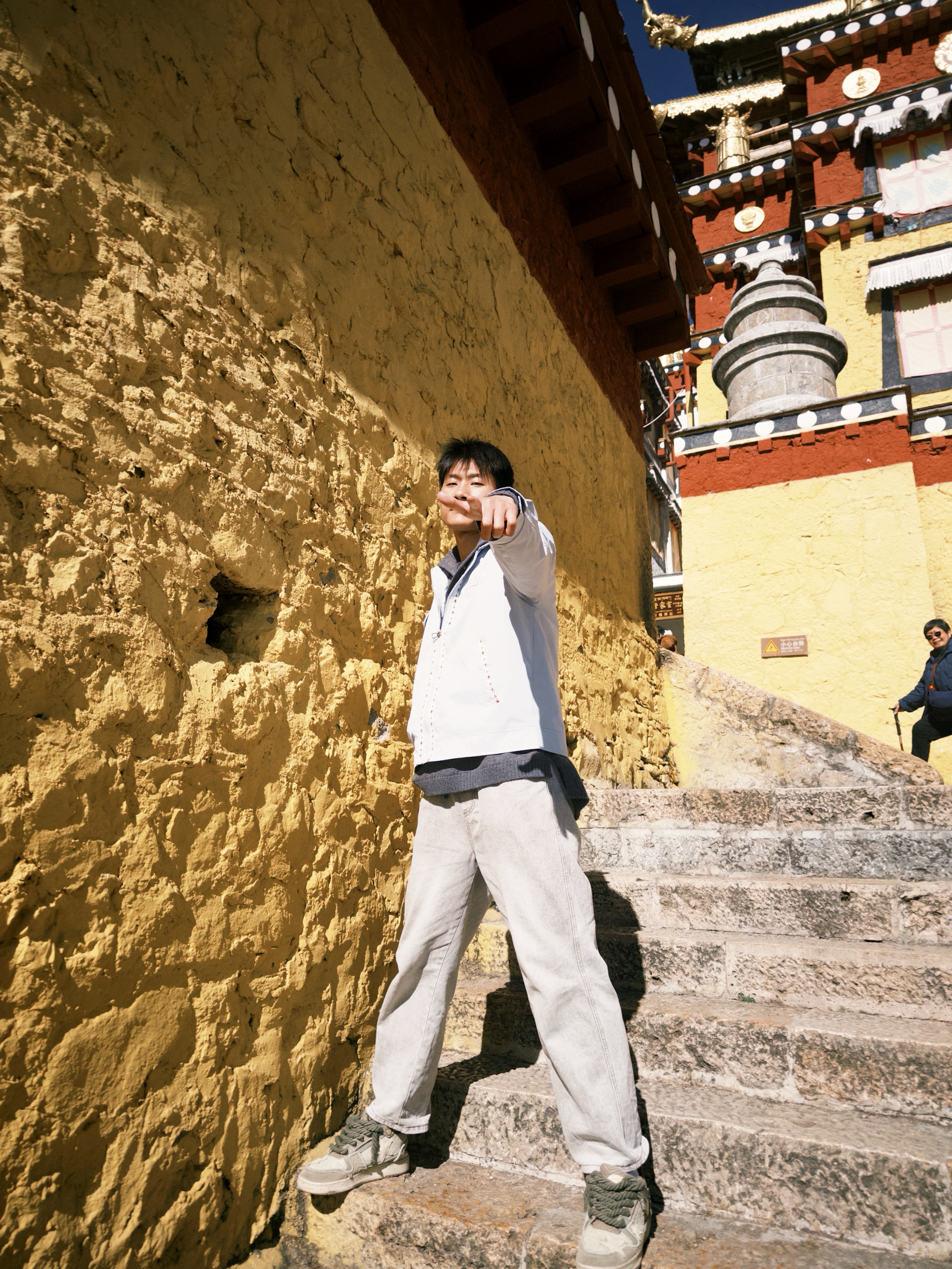 在藏式黄墙街巷穿这件辛普森一家的浅蓝工装夹克,多巴胺氛围感直接拉满! 浅蓝的多巴胺色系和暖黄墙面、湛蓝天空形成清新撞色,卡通字母logo+几何刺绣的细节超有美式高街复古感,随手拍都能拍出独特的藏地时尚大片。涤纶面料防风又易打理,宽松的落肩袖版型在街巷里行走、打卡都毫无束缚感,搭条浅灰休闲裤,简约更凸显色彩与细节~