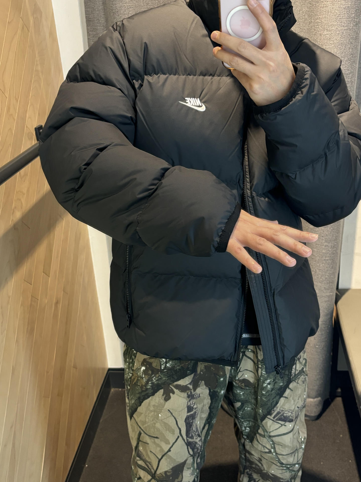 #时尚爆品推手 学生党直接看过来了耐克这件羽绒服怎么搭配 这件羽绒服是有点今年流行的排骨羽绒服的 黑色很有质感也比较显瘦 还比较的蓬松 瘦高个穿上会显肩宽很有力量感 梨形身材要搭配一条直通宽松牛仔裤 像我选择的是迷彩风 再搭配一双板鞋aj1马年就行了 亮红色有过年🧨氛围感还不会觉得整体沉闷 👔Nike Sportswear Club Therma-FIT 鸭绒品牌Logo字母保暖立领宽松面包羽...