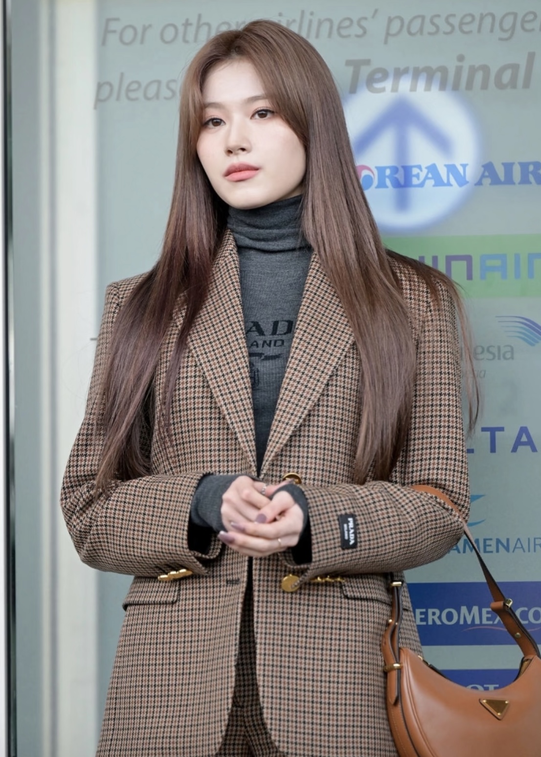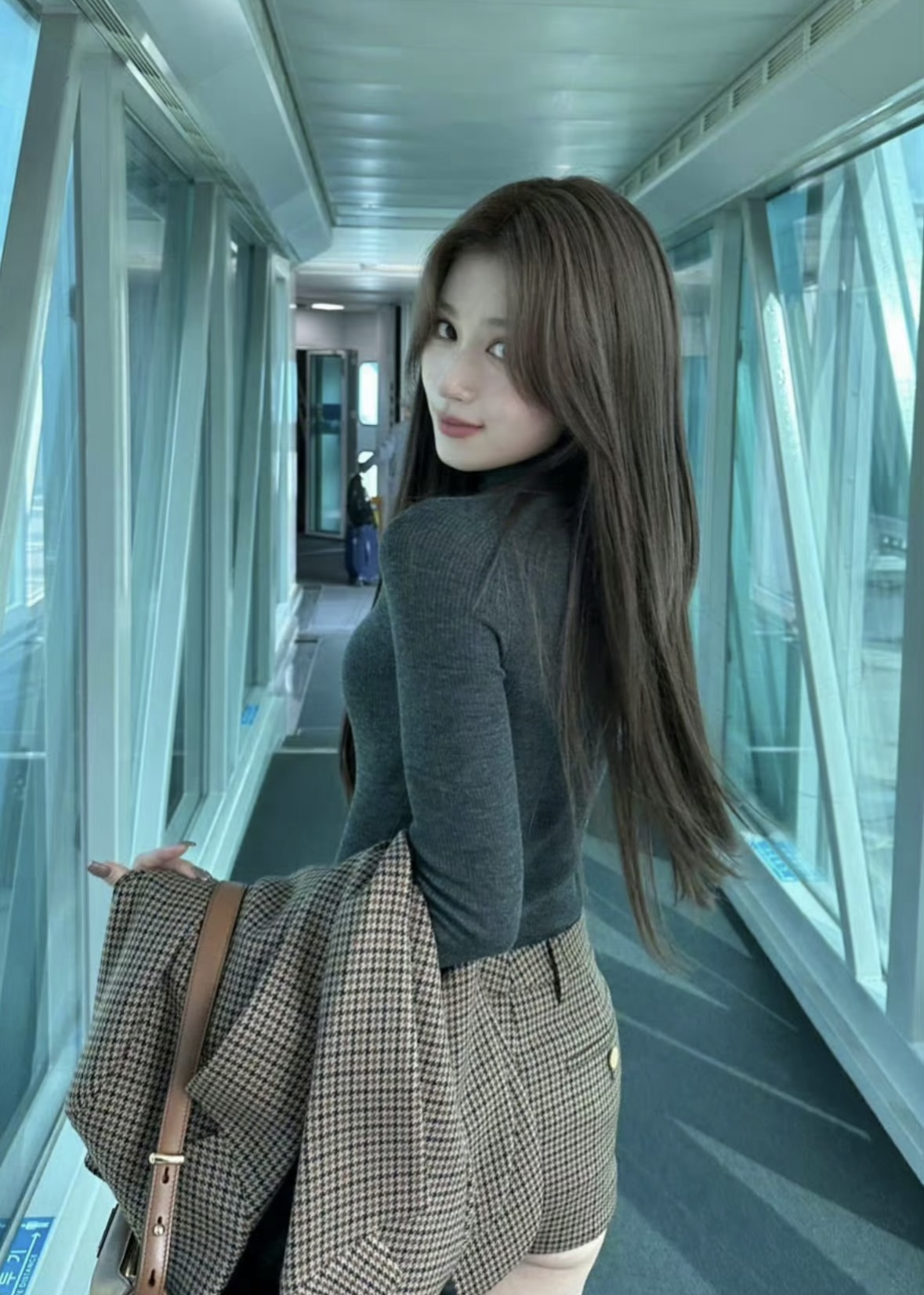 宝子们,秋日街头的心动答案,被SANA写在这套穿搭里了❤️ 复古格纹西装自带松弛感,短裤+过膝袜的组合又甜又飒,慵懒中透着精致。 走在路上,风穿过发丝的弧度都刚好,这大概就是美拉德色系独有的温柔魔力吧~
