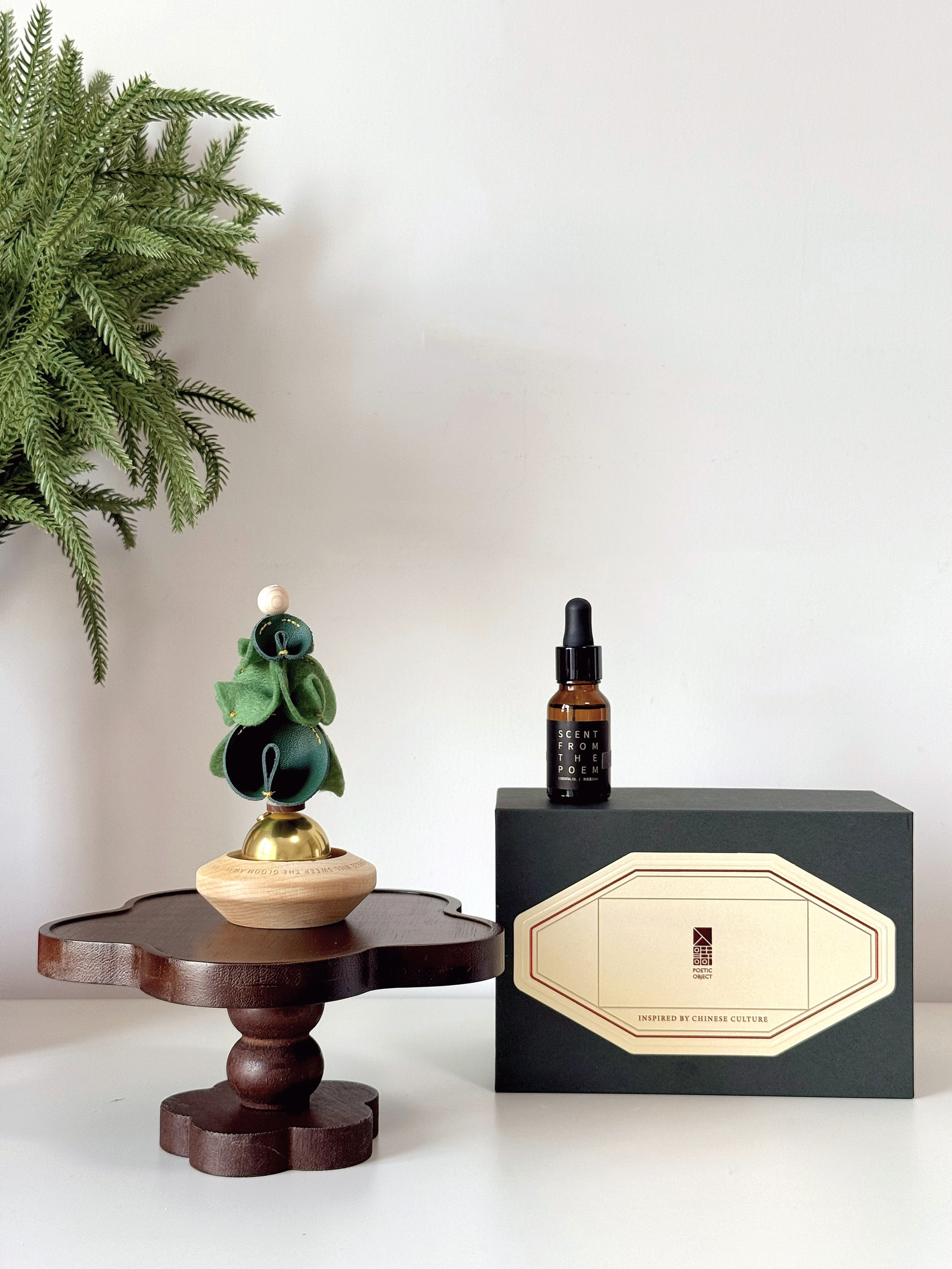 四季中具备代表性的“花朵”作为扩香的容器 入诗你是懂浪漫的 因为入冬了嘛,所以我选择了冬松花型 上为冬松花,底座为不倒翁 用滴管把精油滴入不倒翁底 味道一下子就散发出来了 陆羽事春茶•香型 前调:铁观音 中调:兰花 后调:小花茉莉 不管是把它摆在家里的哪个角落,都是一道迷人风景