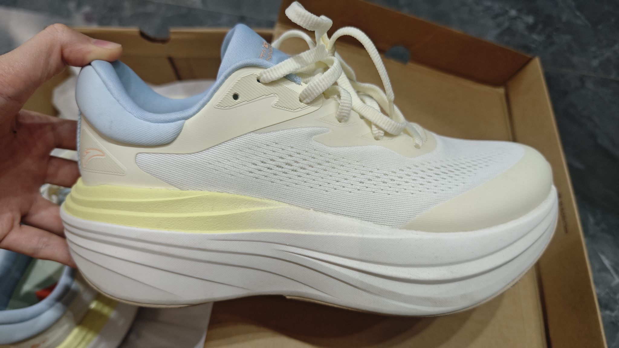 刚拆开就被这双鞋的颜值戳中!奶白+浅蓝+鹅黄的配色,温柔又清新,一眼就爱上💙 上脚第一感觉就是软!厚底设计像踩在云朵上,走久了脚也不疼,通勤、散步都超舒服。 #安踏 网面材质透气性拉满,夏天穿也不会闷脚,鞋型很秀气,完全不显脚大。 买了这双鞋,都爱上跑步啦,平价又好穿 爱辽,重点是百搭!搭牛仔裤、运动裤都好看,日常出门随便一套就很百搭。 现在每天出门都想穿它,已经荣升为我的近期最爱鞋款啦~ ...