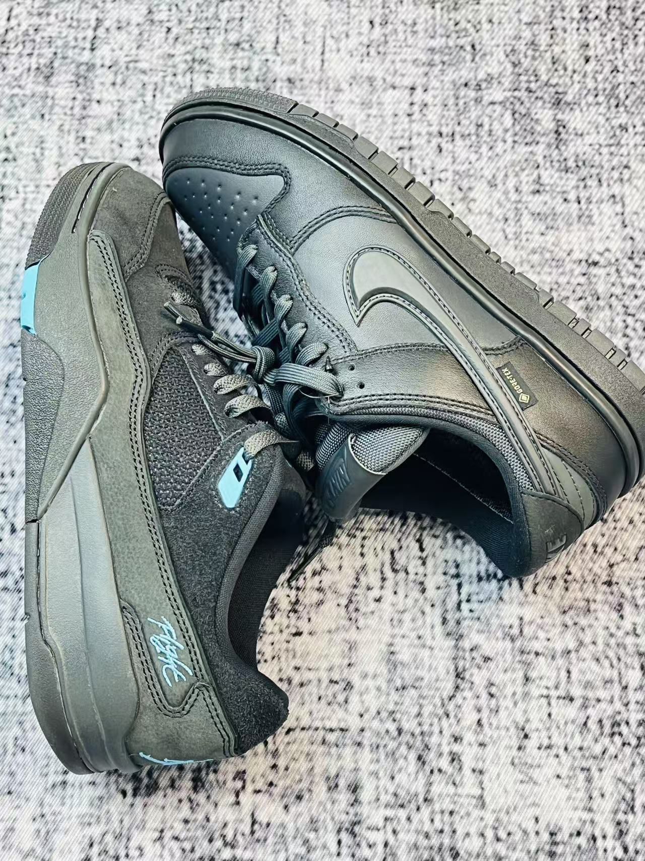 刚上脚这两双黑调Nike的第一感觉,是脚面被包裹得很稳👟。鞋面的拼接材质摸着手感扎实,Gore-Tex的标识能感觉到防水性的诚意,日常碰到小雨不用慌,鞋里不会很快渗湿。 脚感上偏扎实挂,没有软弹的踩屎感,走路时脚底反馈很直接,久站的话前掌会有点硬🪨。鞋身的蓝调小细节算是暗色系里的小亮点,搭配深色裤子不突兀。 但缺点也很明显,鞋帮处的填充偏薄,脚踝处的贴合感一般,运动幅度大时会有点空。而且整...