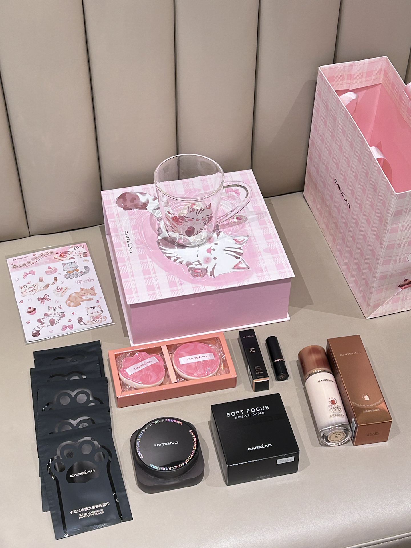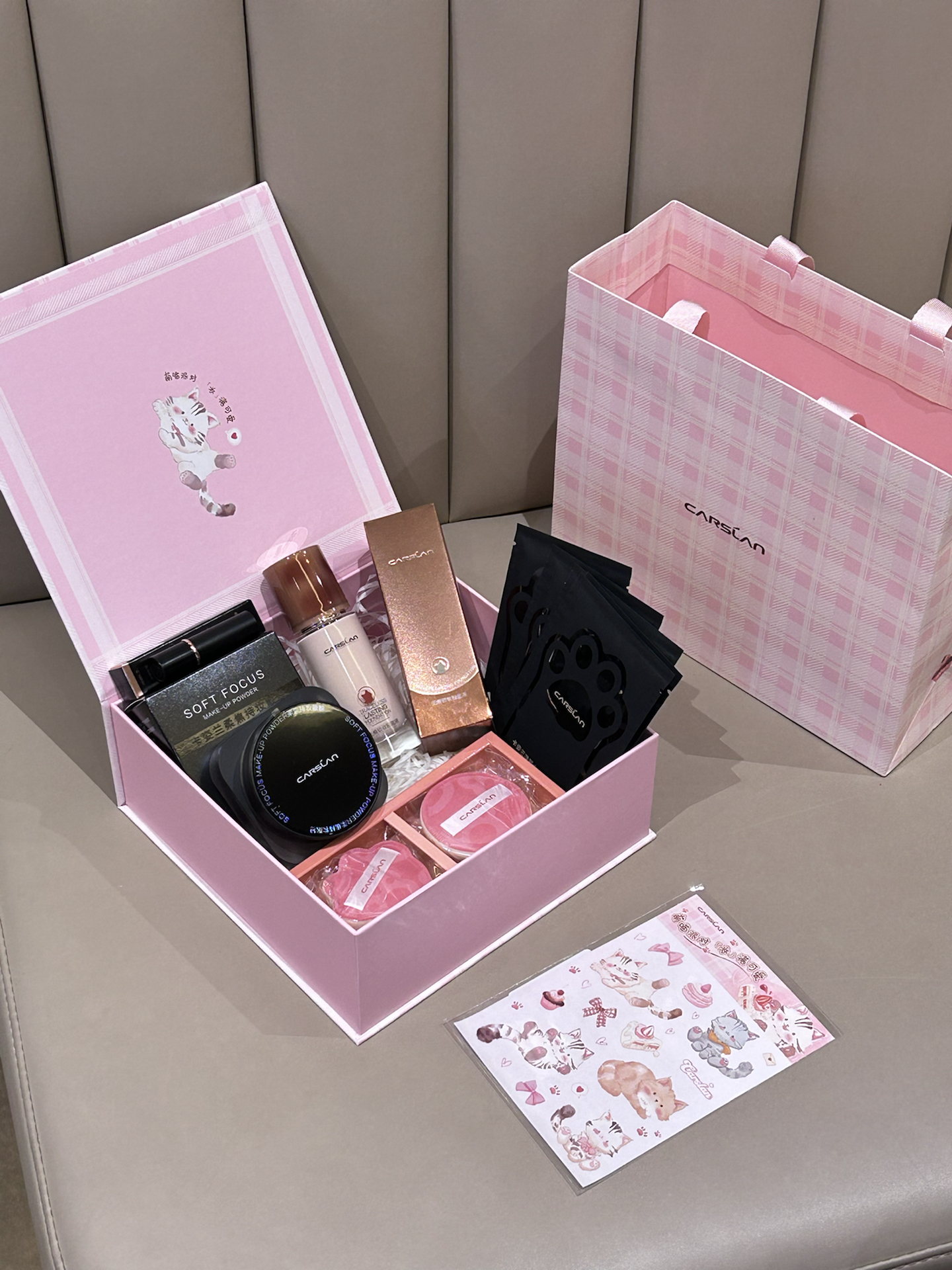 卡姿兰的介个萌猫礼盒真有点东西 粉粉嫩嫩的礼盒 看着就很少女心 打开里面也满当当的 粉底液 散粉 粉扑 口红 卸妆湿巾 水杯 还有贴纸 粉底液我试了下水润润的不卡粉 口红色号日常也好驾驭 粉嘟嘟的礼盒礼袋 刚好情人节送礼物敲合适捏 #仪式感满分的情人节礼物 #214情人节送女朋友礼物 #新年约会小tips #年度美妆爱用物 #送公主的美妆好礼