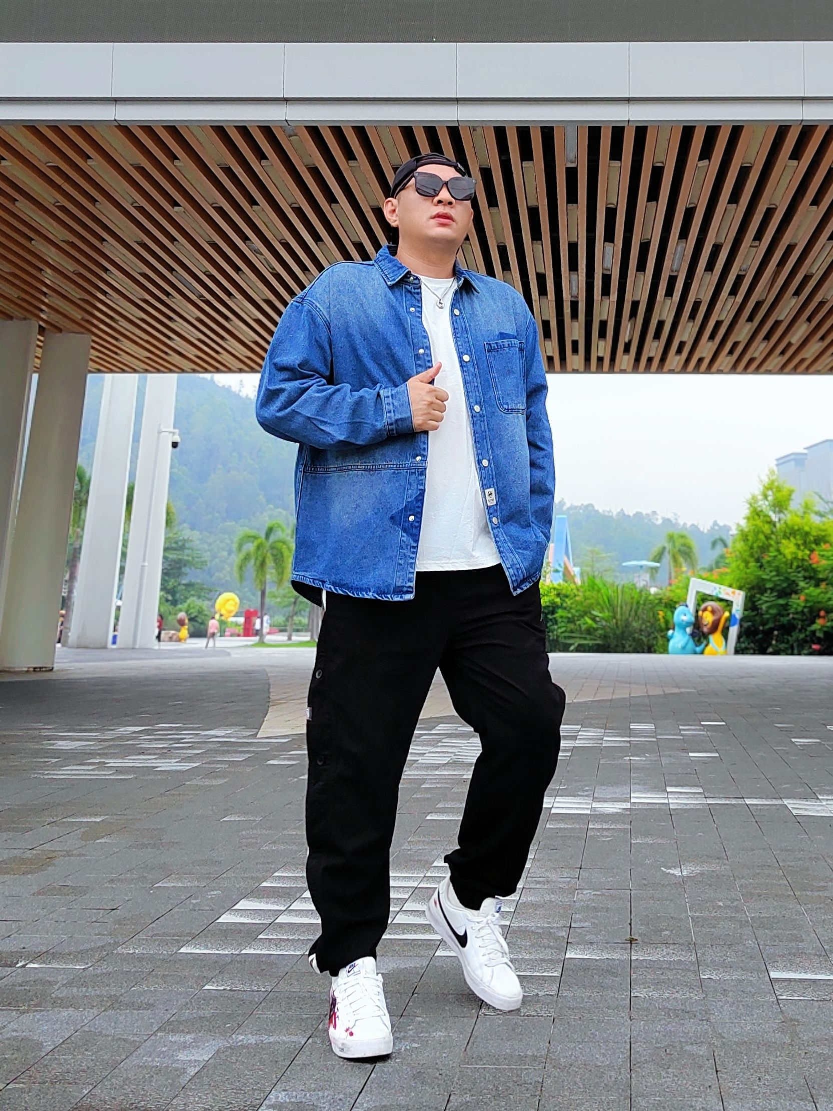 松弛感citywalk❗️ 🧥:外套是PRPK 的水洗工装牛仔外套 面料柔软细腻,宽松版型拉垮,像我这样的大壮男生,可以修饰体形。 内搭白T恤,蓝白🔵⚪️碰撞💥有层次感,很🈶美式高街复古风。 👖:裤子也是PRPK 的休闲束脚裤 面料软薄透气,两侧纽扣加条纹的设计,吸睛而且显腿瘦,也很百搭。 🎯180cm/90kg,🧥3XL👖3XL 再上脚一双板鞋,搭配上鸭舌帽和墨镜,轻松拿捏早秋的简约舒适日常通...