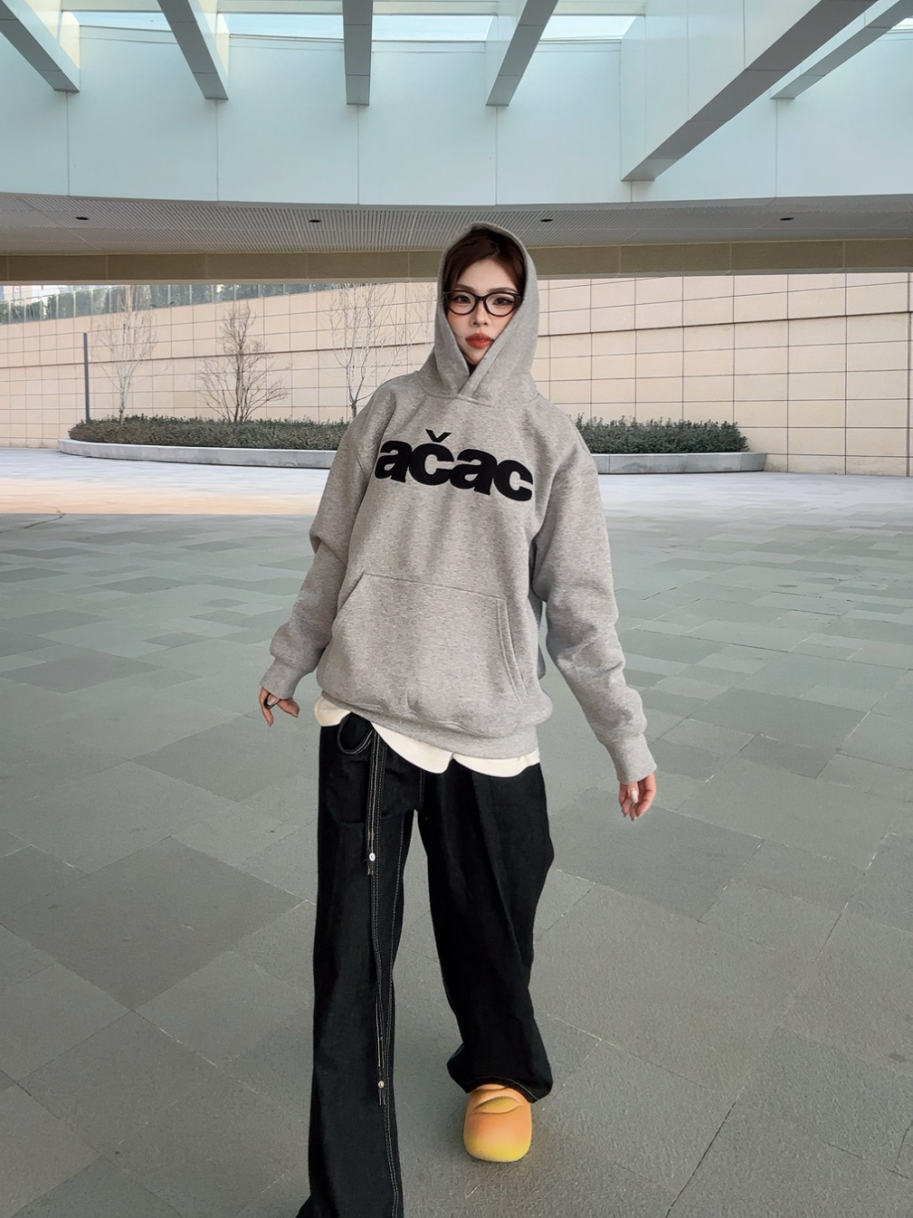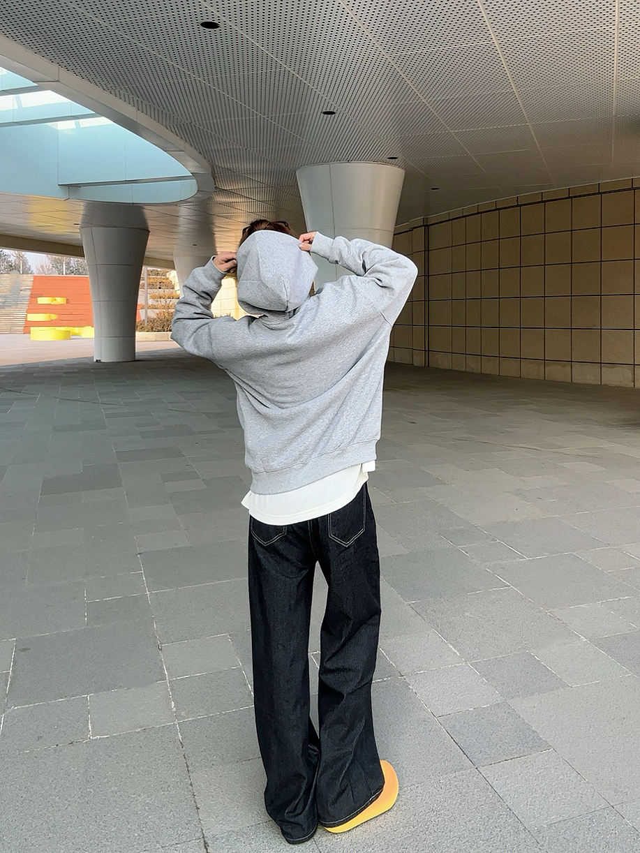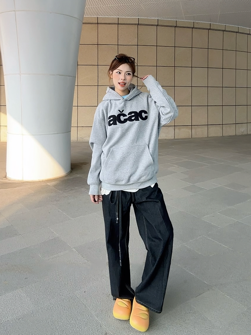 今天穿的这件A chock加绒连帽卫衣,真的是近期挖到的宝藏单品! 灰调底色配黑色贴布刺绣logo,美式复古感直接拉满~ 面料是加绒的,贴身穿软乎乎的特别暖和,南方的初冬单穿也完全够用。 宽松版型对身材包容度很高,里面叠穿打底衫也不会显臃肿。 下装搭了一条黑色阔腿裤,再踩一双面包鞋,整套look慵懒又随性,日常出街、上课都适配度拉满! 这种不费力的松弛感穿搭,真的会让人爱上每天出门的感觉🥰