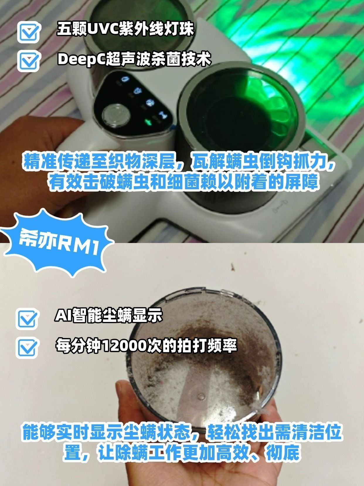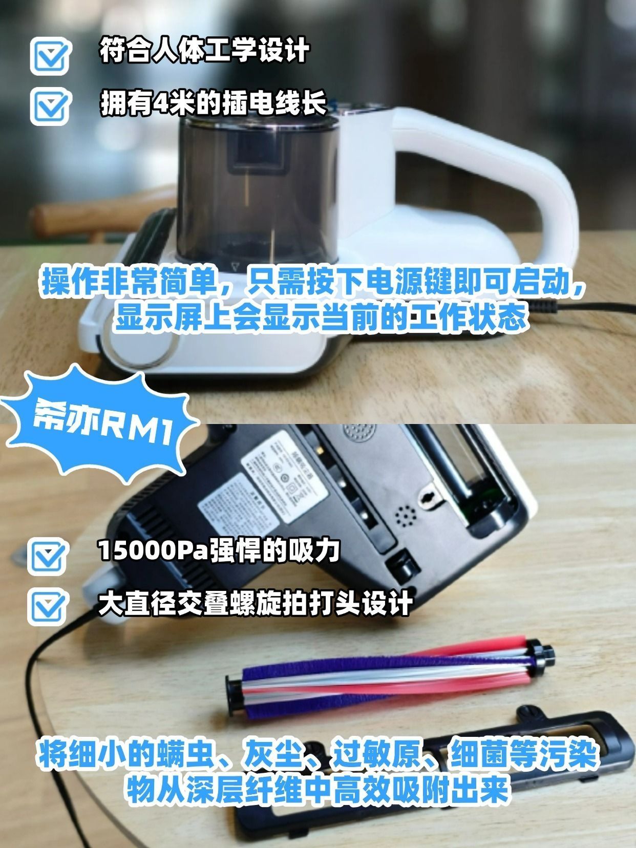 以前我总觉得“除螨”离我挺远,直到有一天晒被子时看见阳光下飞的灰尘…那一刻我突然觉得,卧室也许比我想象的“脏”多了。于是狠心买了台希亦RM1除螨仪。 第一次用在床上,真的是又震惊又恶心,一尘不染的被子里吸出了半杯灰灰的粉末,那一刻我才意识到自己之前真的是睡在尘螨堆里! 不得不说这除螨仪的吸力还特别大,拍打频率也高,关键是重量刚刚好,单手操作完全不累。声音比我想象的轻很多,晚上清洁也不会吵到室友。 ...
