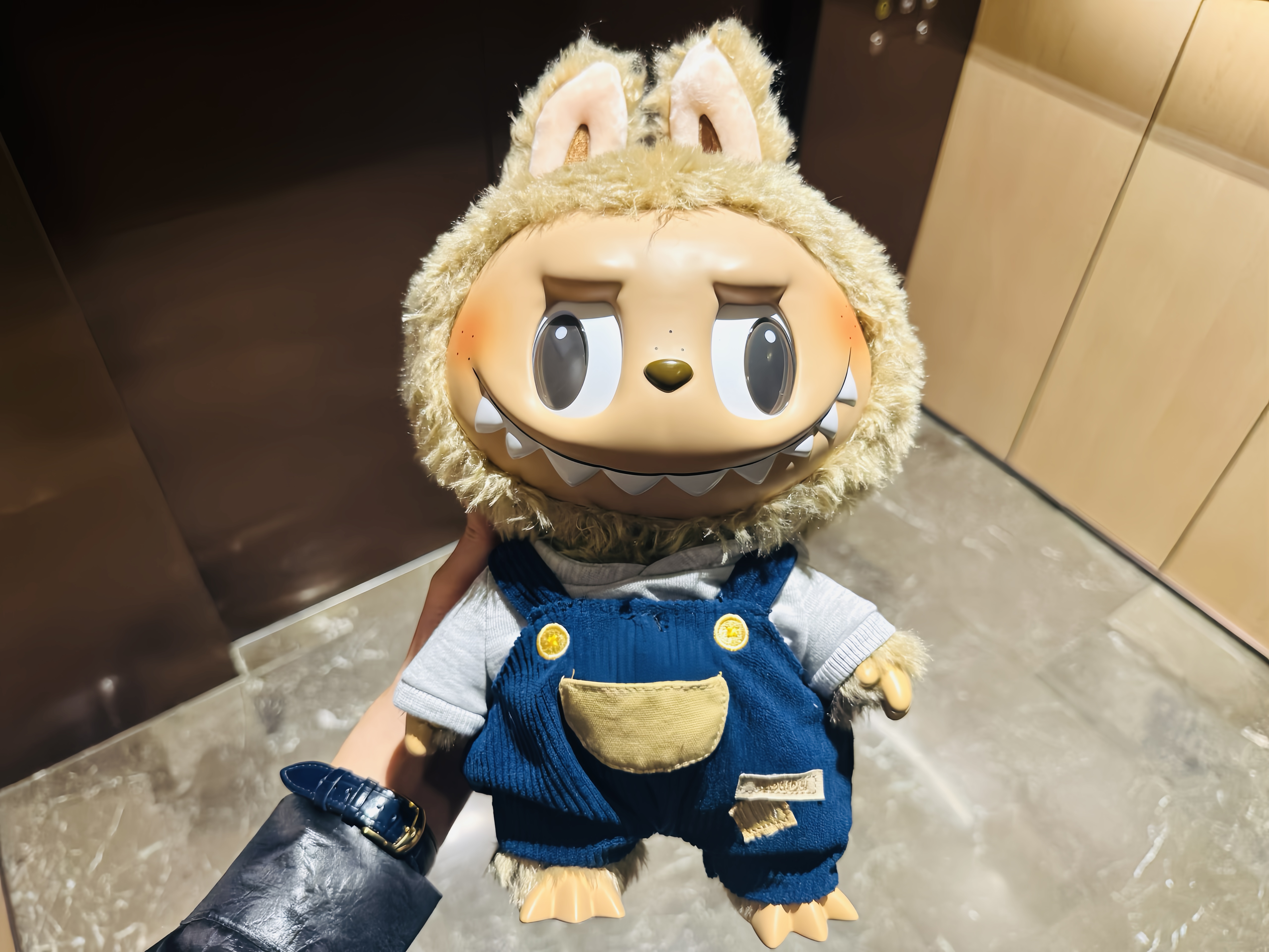 谁懂啊!Labubu小鸭实物真的美到失语💛 软乎乎的浅棕毛绒质感超绝,搭配藏青背带裤瞬间戳中萌点,小爪子和纽扣的细节做得超精致,萌凶的小表情越看越爱~拿在手里沉甸甸的超有分量,摆拍、收藏都超合适,潮玩女孩的快乐这不就来了嘛,入股不亏!
