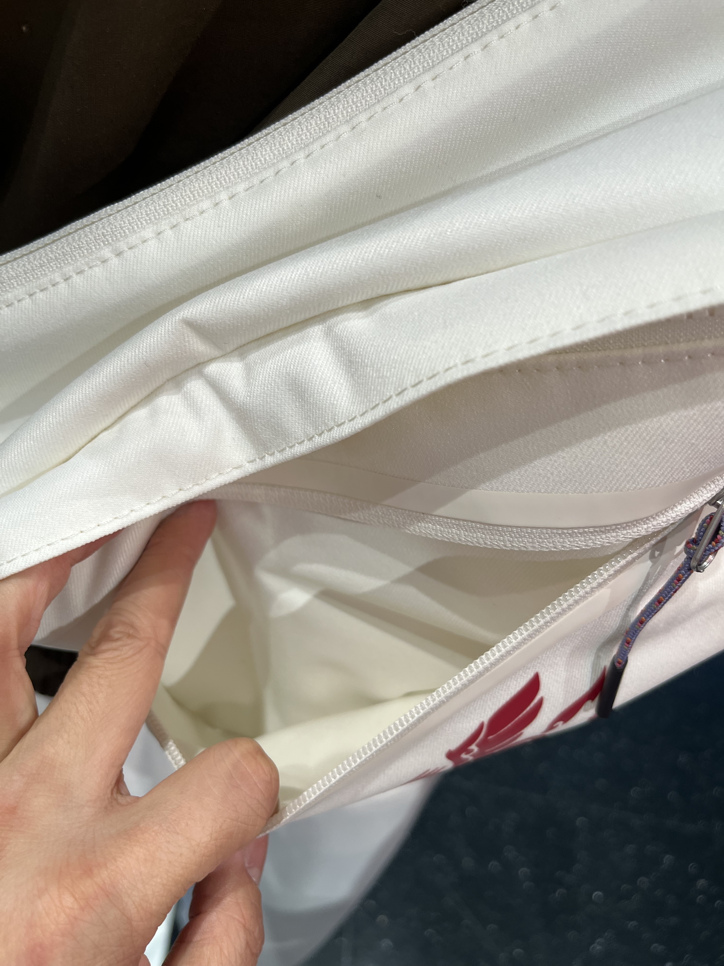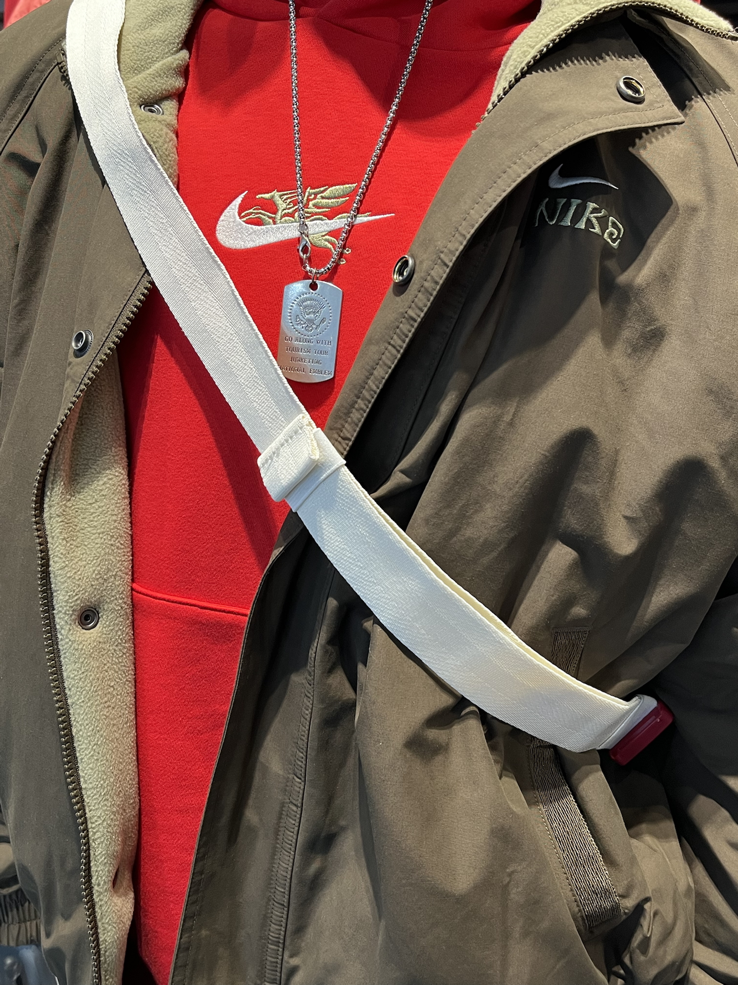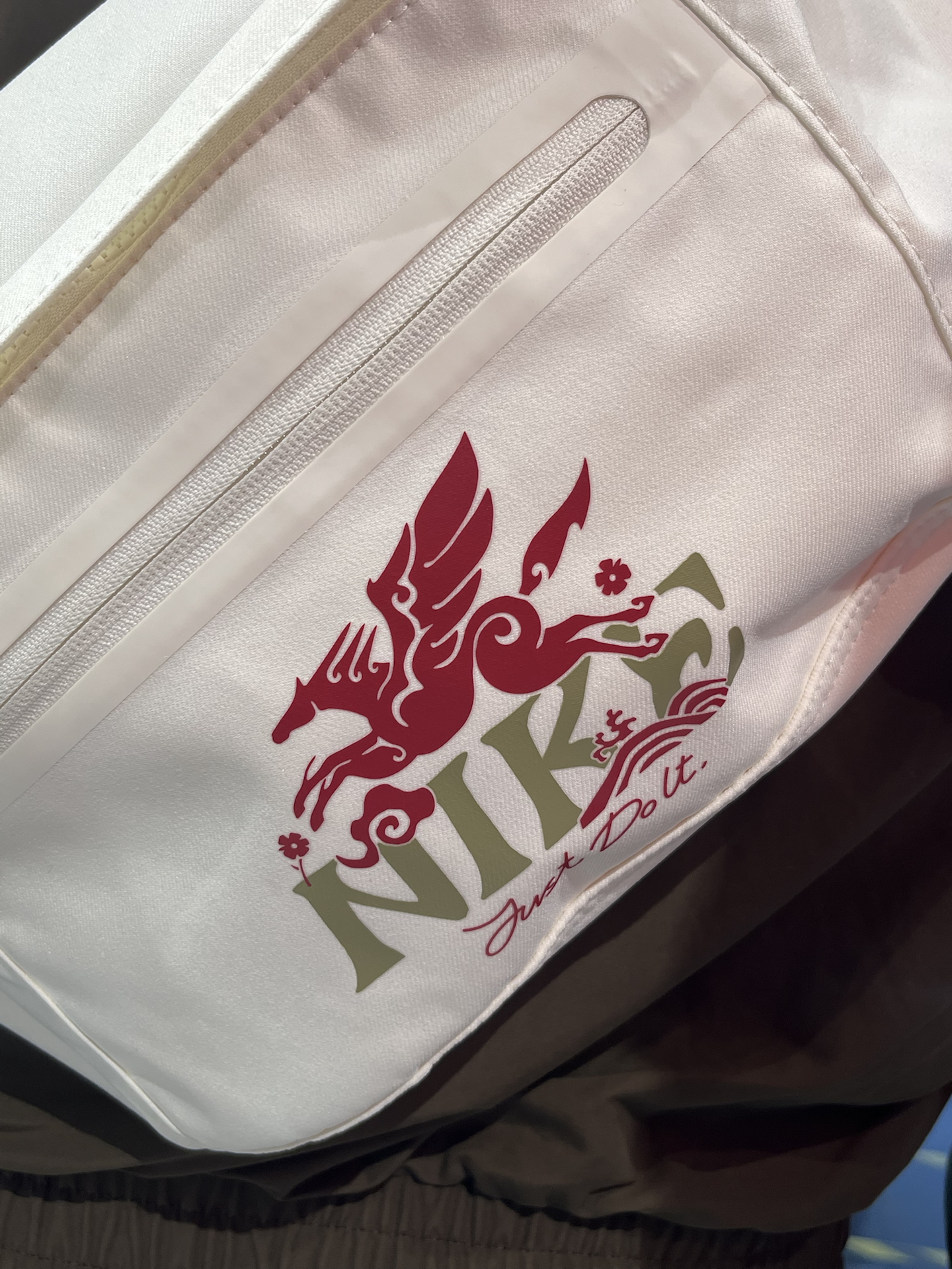 今年耐克的马年限定斜挎包,我觉得比去年蛇年的细节更多,尤其是带翅膀奔腾的飞马图案,节日氛围和辨识度都有了~ 整体是帆白色,男生女生背都不违和,也很适合学生党周末出门背 前后各有一个拉链夹层,中间打开还有两个小口袋,塞两件薄外套、充电宝这些小东西没啥问题 不过浅色确实不太耐脏,平时用要多注意一点,但总的来说,过年除了新鞋新衣服,新的包包也蛮实用的 #马年本命年送礼 #Nike马年限定 #晒个...