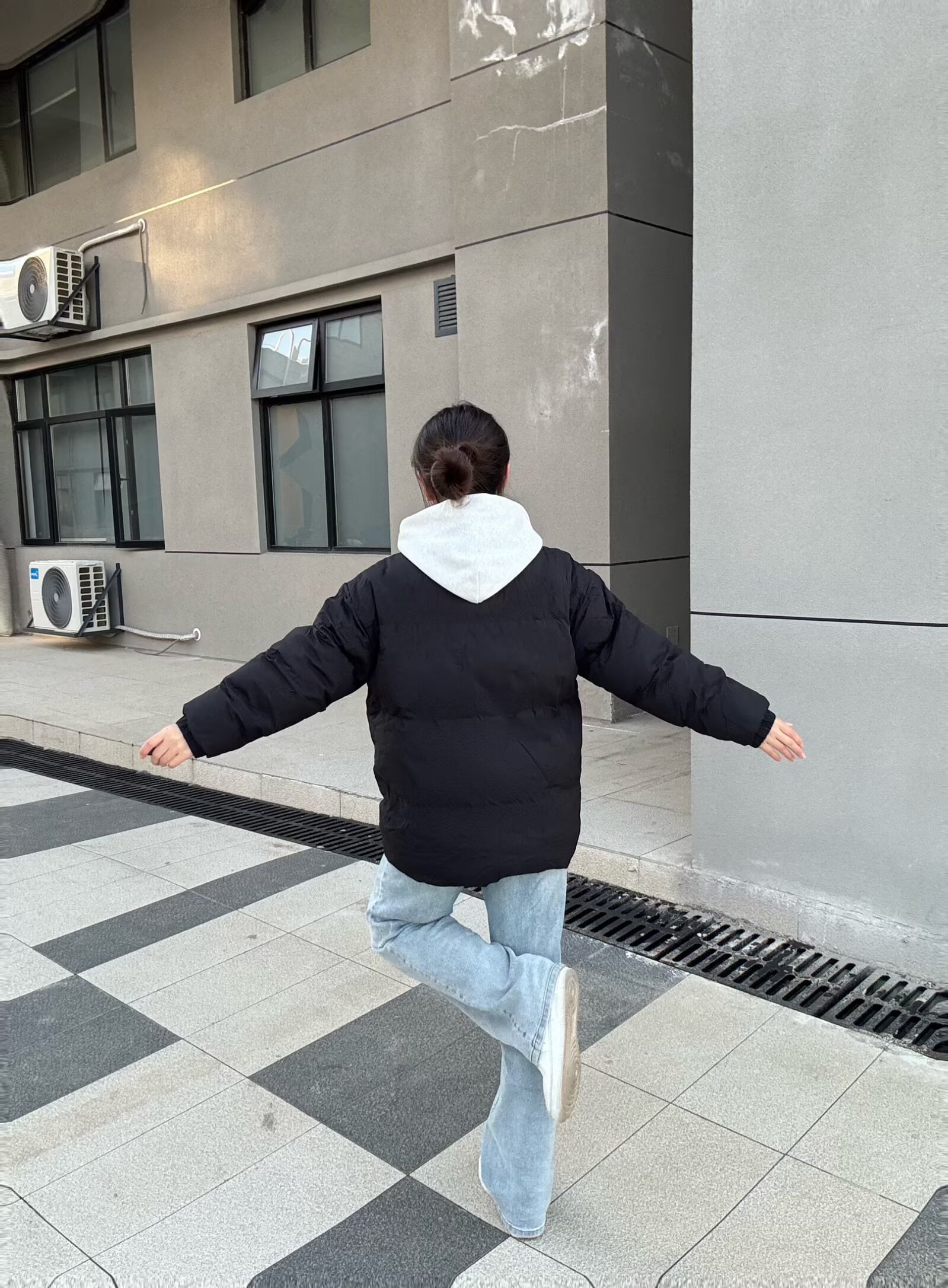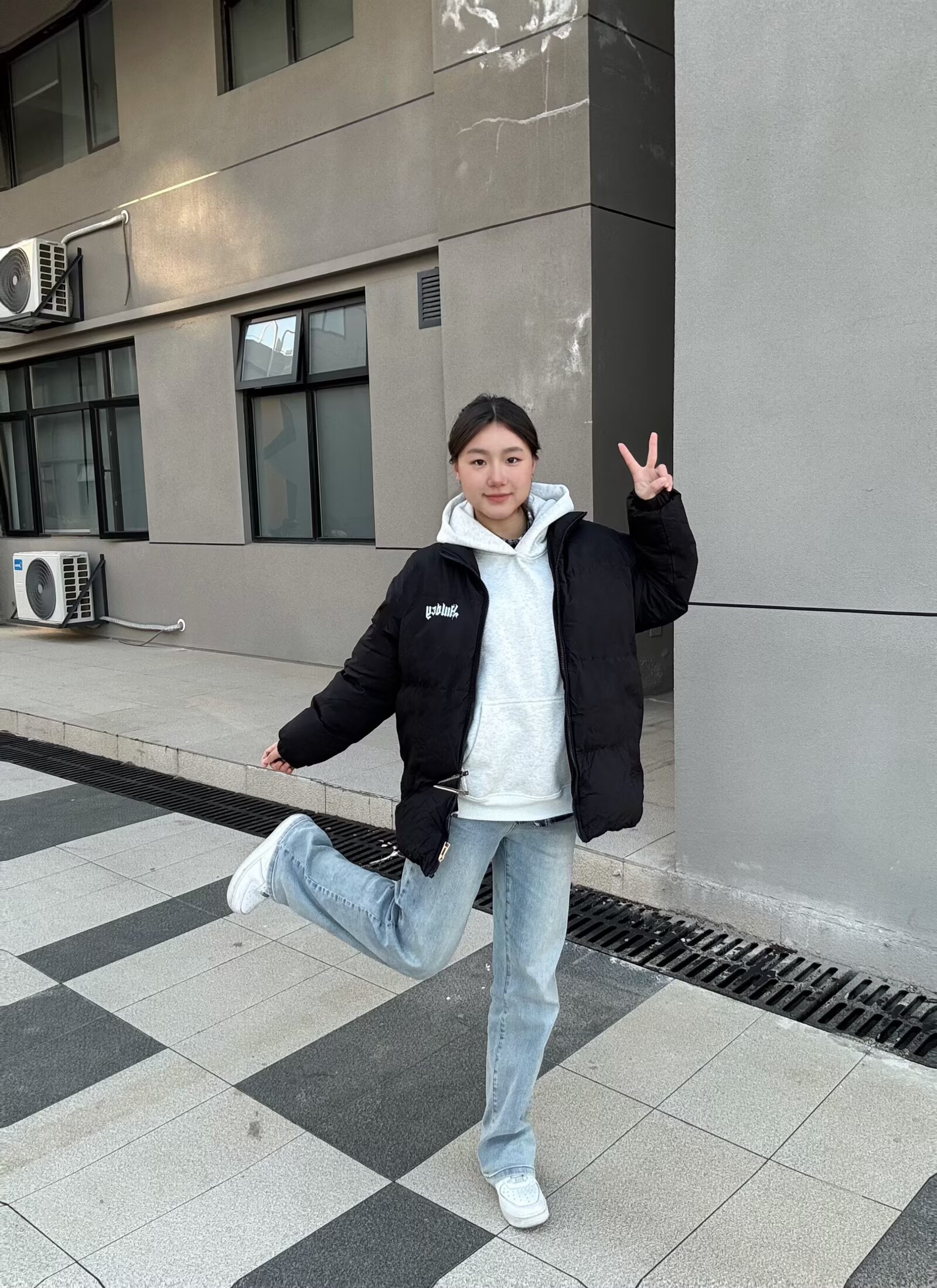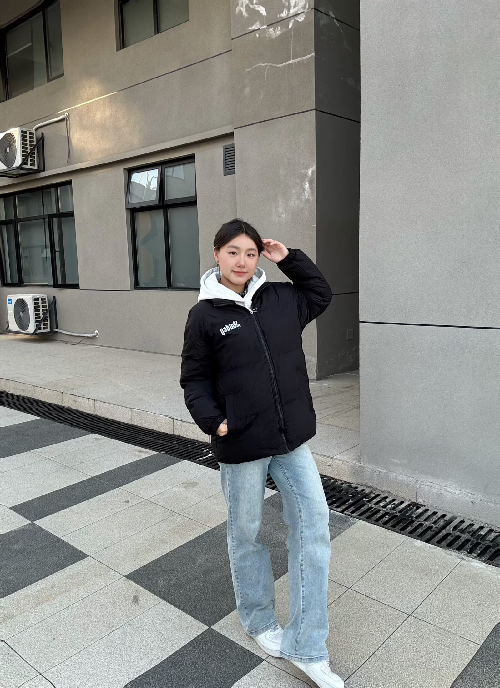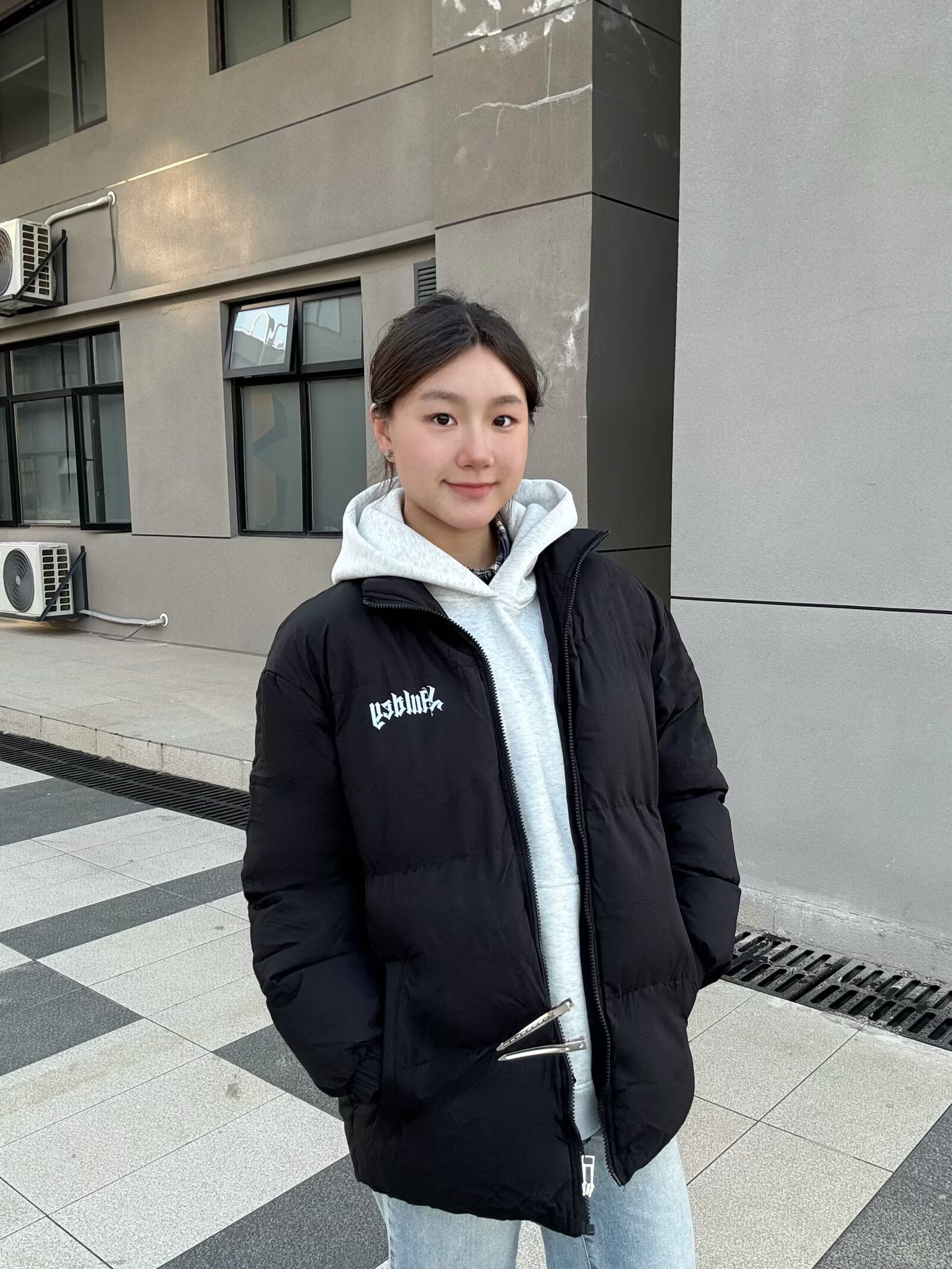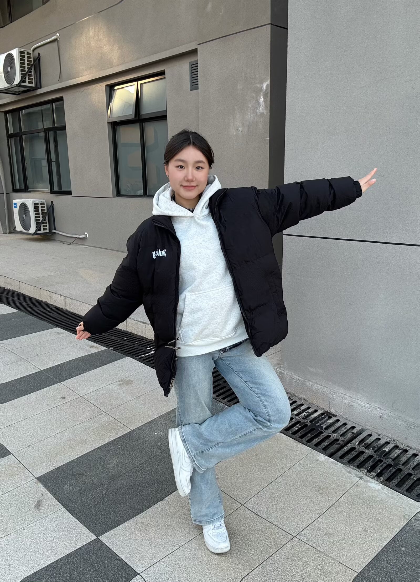 这件外套版型是oversize的宽松款,里面塞厚卫衣也不会臃肿,对各种身材都超友好~🤩面料摸起来软软的,防风又保暖!🥰小logo设计简约又不单调,搭配浅灰色连帽卫衣+直筒牛仔裤,随手一拍都是韩系休闲感,学生党日常出街、上课穿超合适。黑色还特别耐脏,洗起来也方便呀!