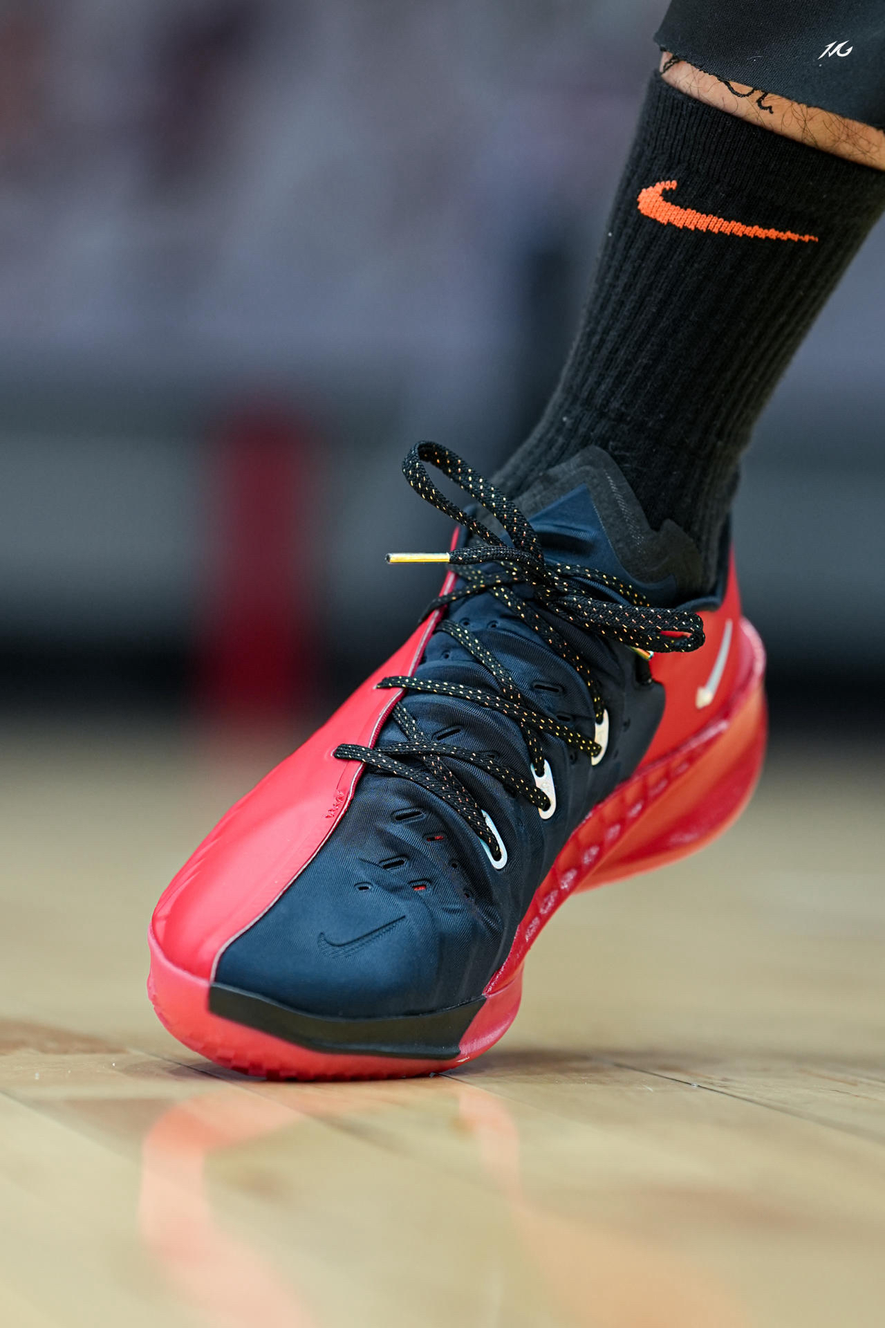 期待很久的GT CUT4终于收到第一时间上脚体验了一番! 我给兄弟们分享几个初上脚最大感受? 外观上我自己觉得实物确实比图片更有特点,看习惯了很有个性,但喜欢不喜欢是两极分化的!你们觉得呢? 上脚最大体验: 2代的突进感回来了,上脚的滚动感非常强烈,突破的爽感不错; 第二来说缓震的极限非常高,上层的ZOOM X脚感更软,下层全掌气垫弹力保证,大体重完全可以驾驭! 抓地在木地板没问题但没啥声音...